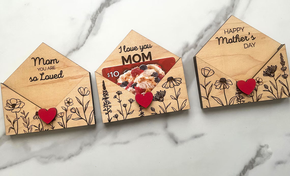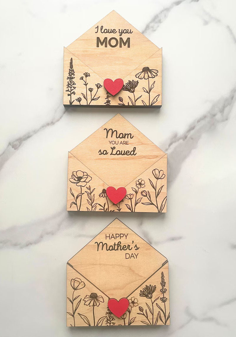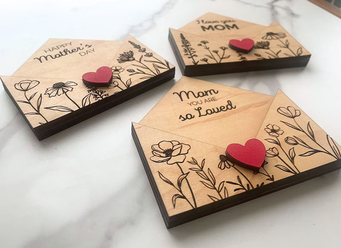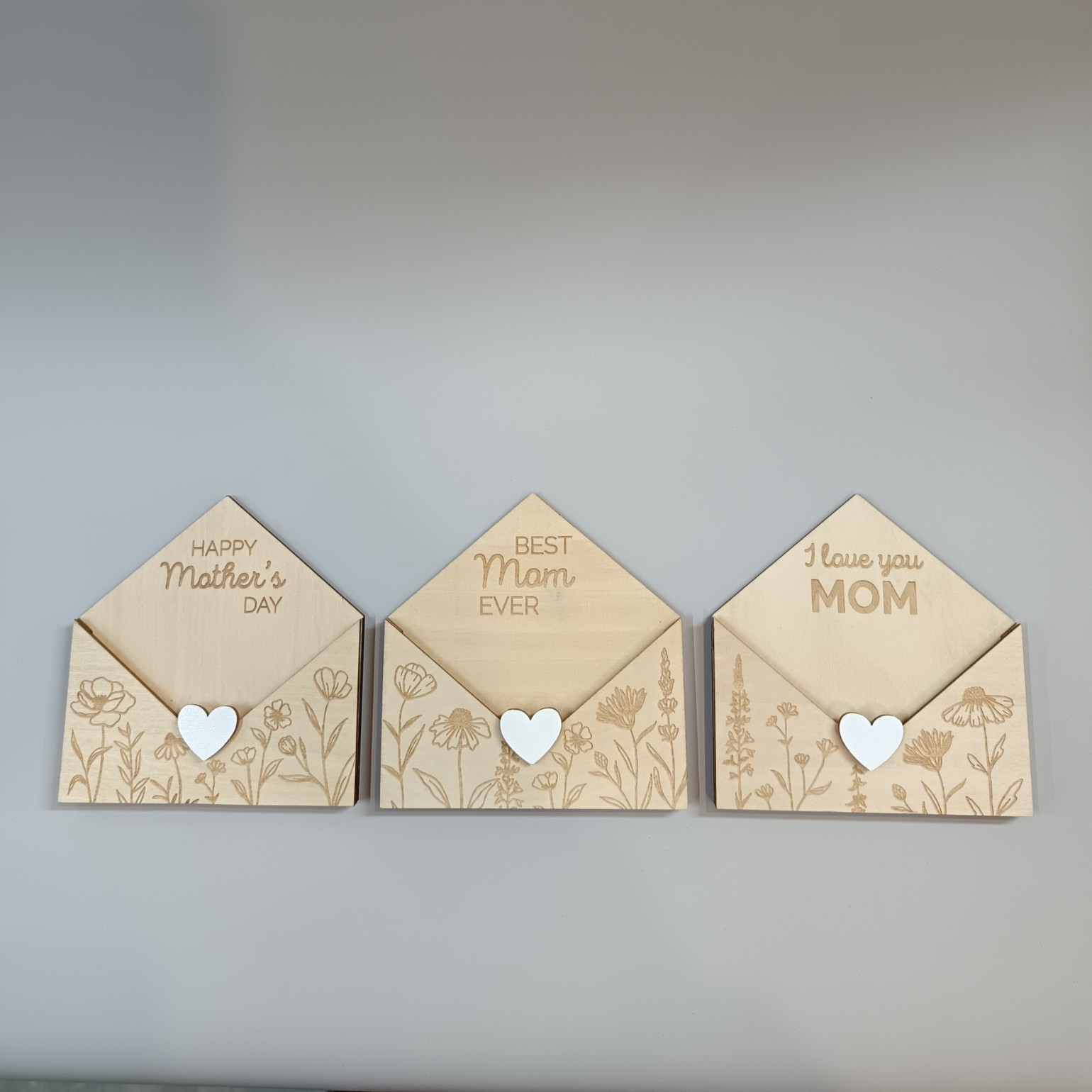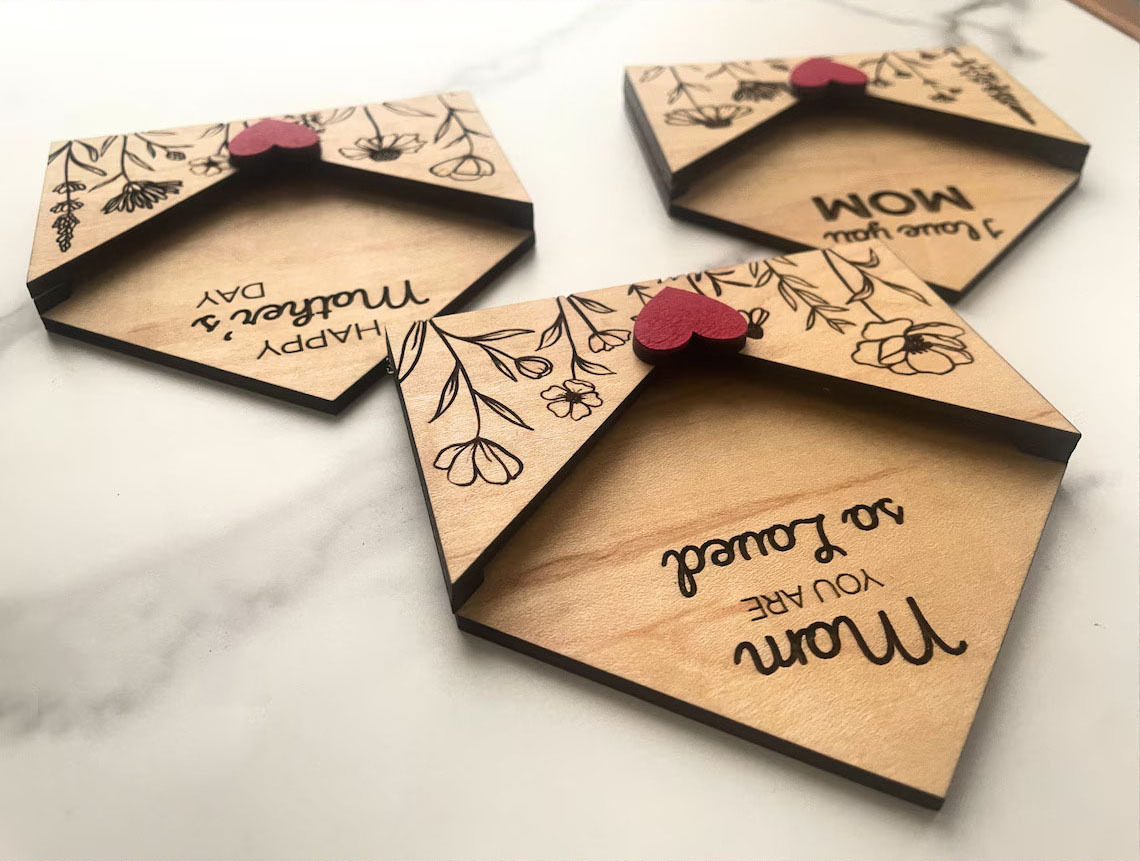亚马逊母亲节父亲节信封木制礼品卡夹信封装饰情人节礼物木质工艺