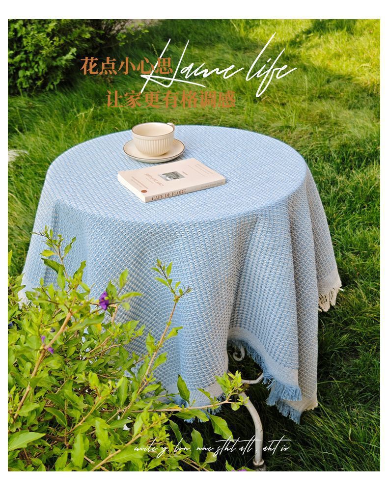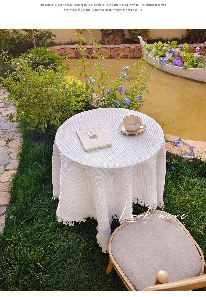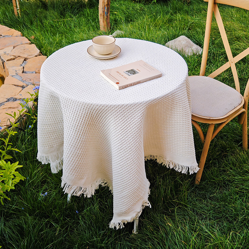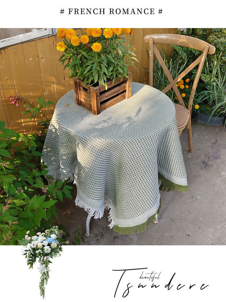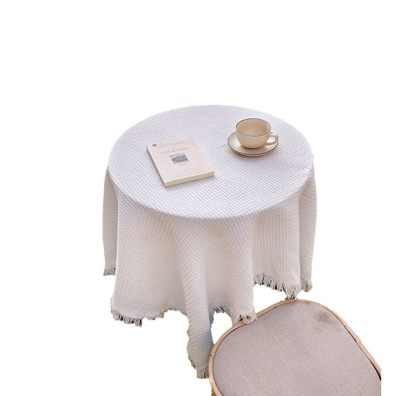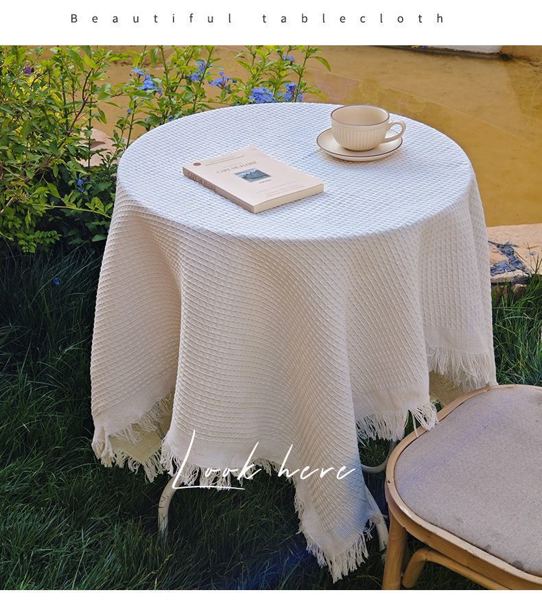 法式ins风复古桌布米色流苏书桌台布圆方桌布茶几餐桌盖布