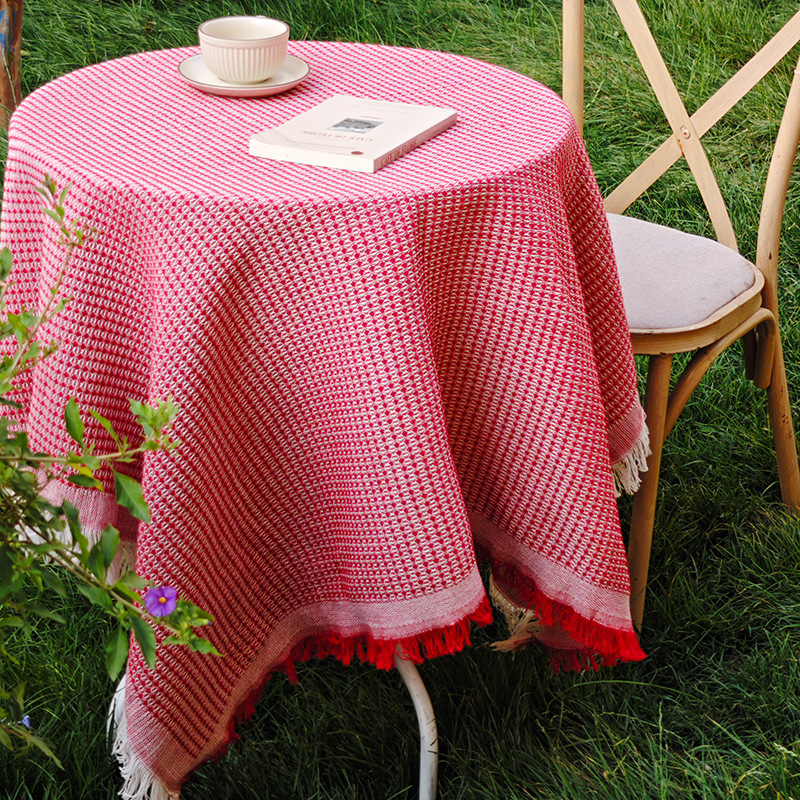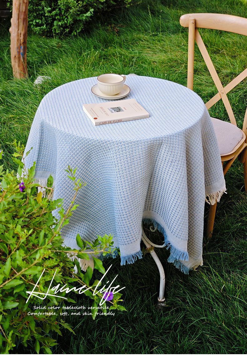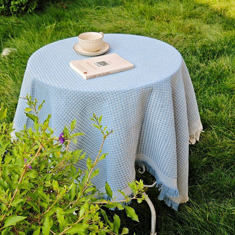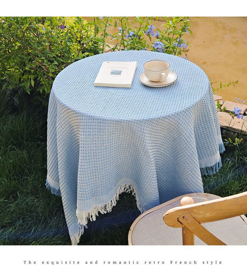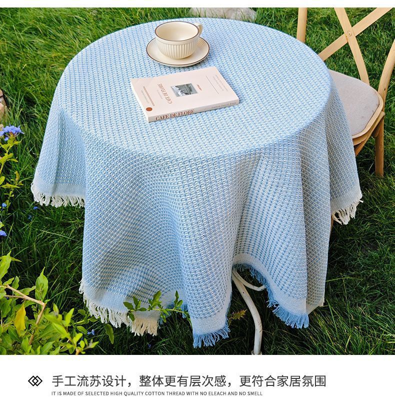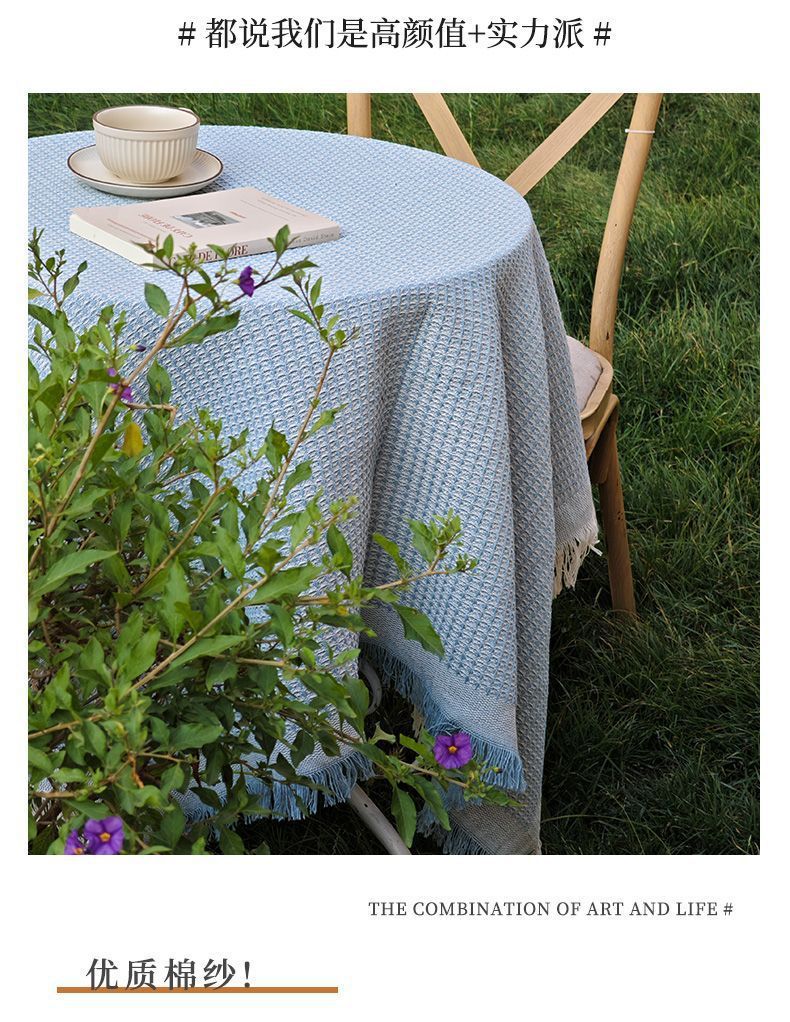 法式ins风复古桌布米色流苏书桌台布圆方桌布茶几餐桌盖布