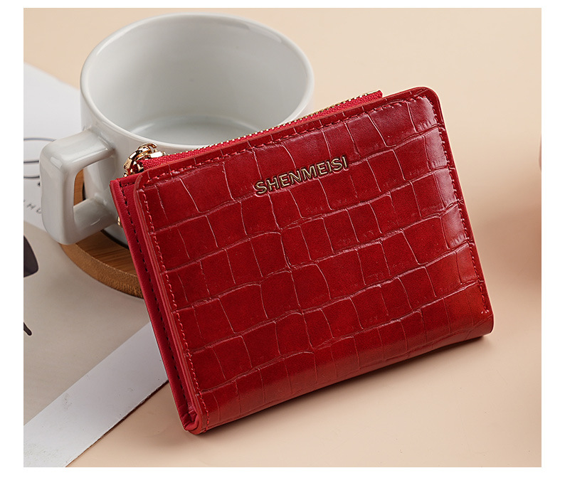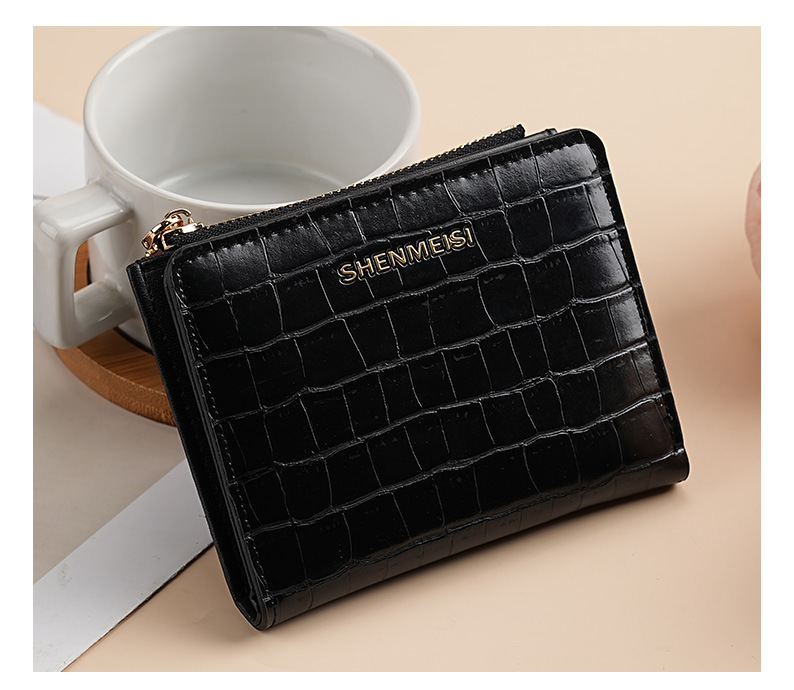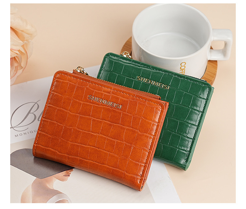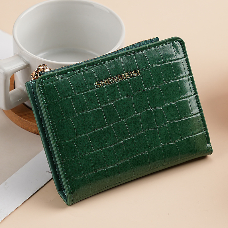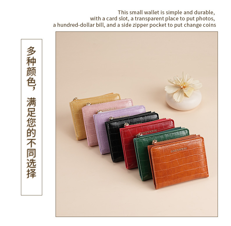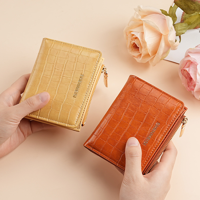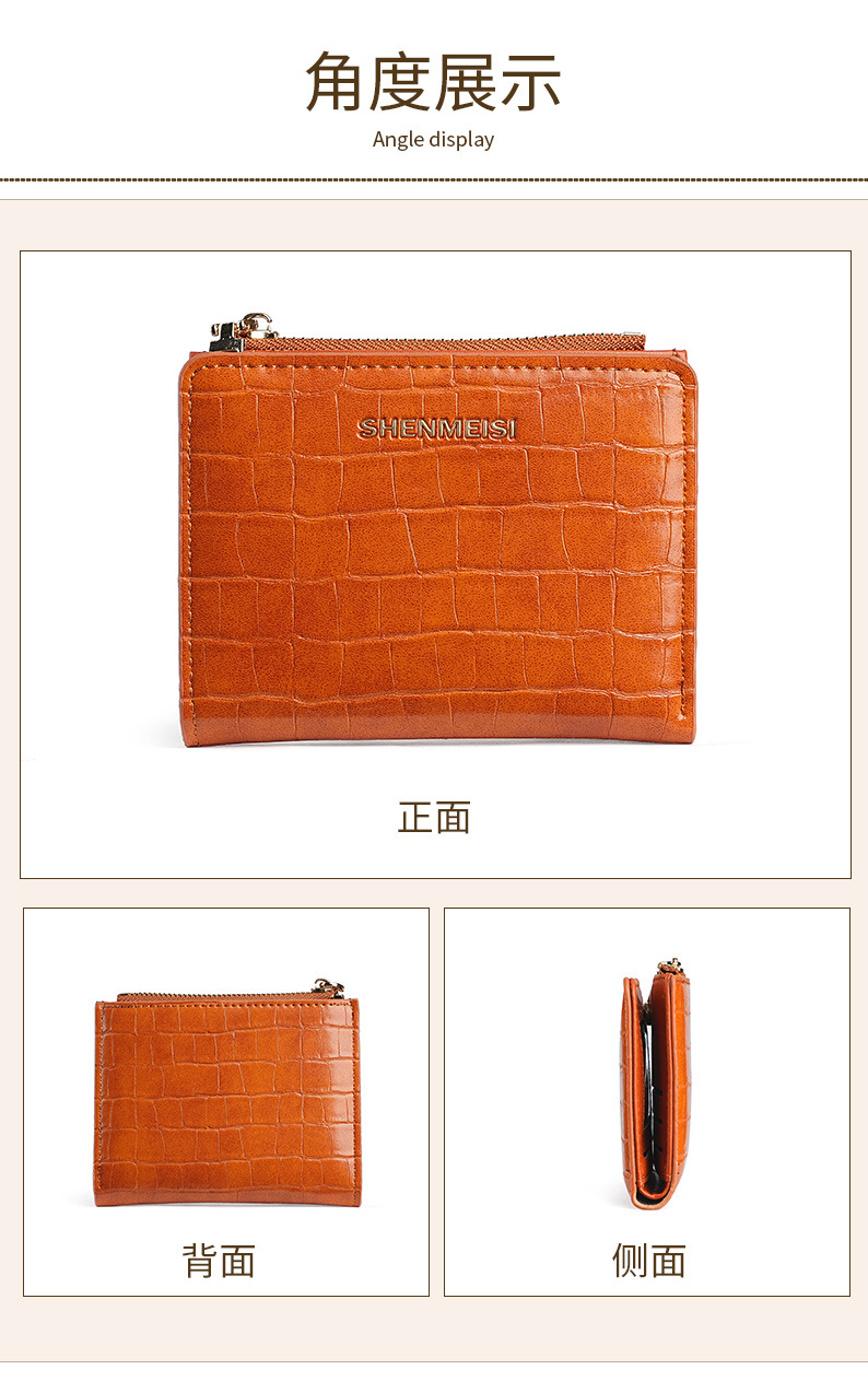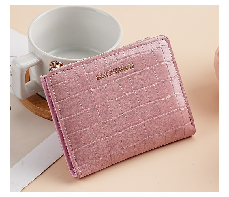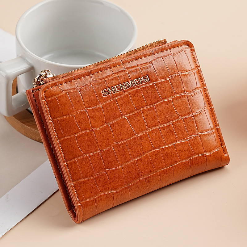 新款女士短款钱包跨境石头纹两折拉链零钱包时尚卡包钱夹票夹卡夹