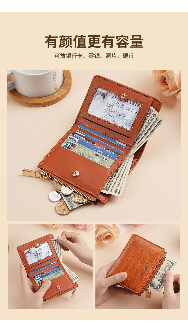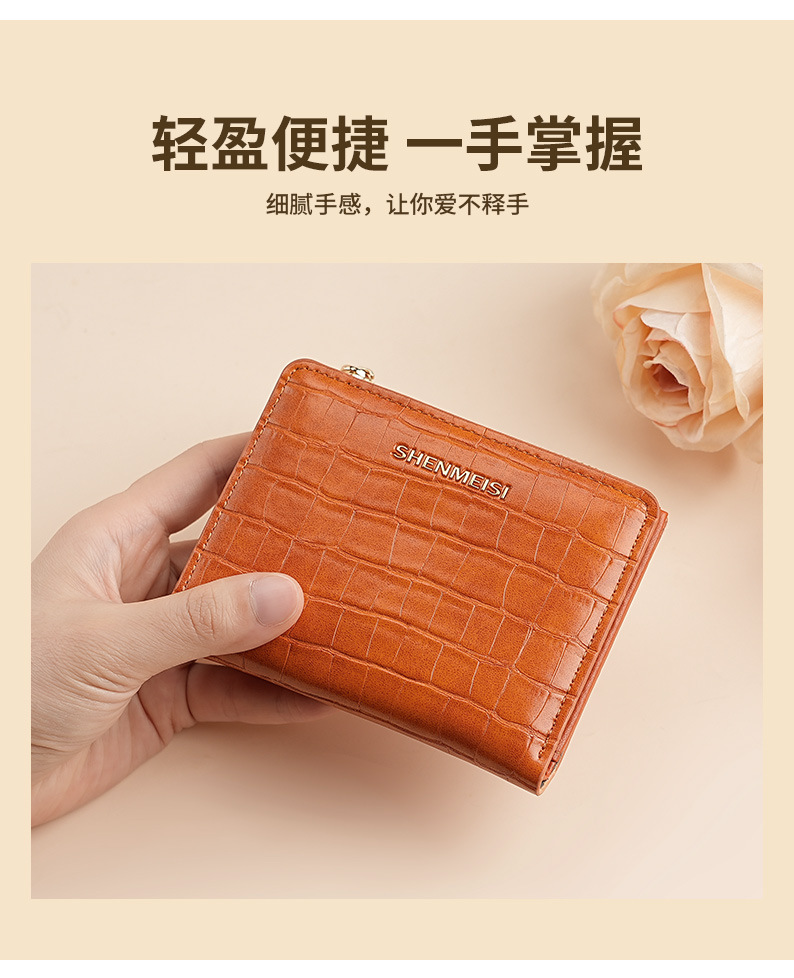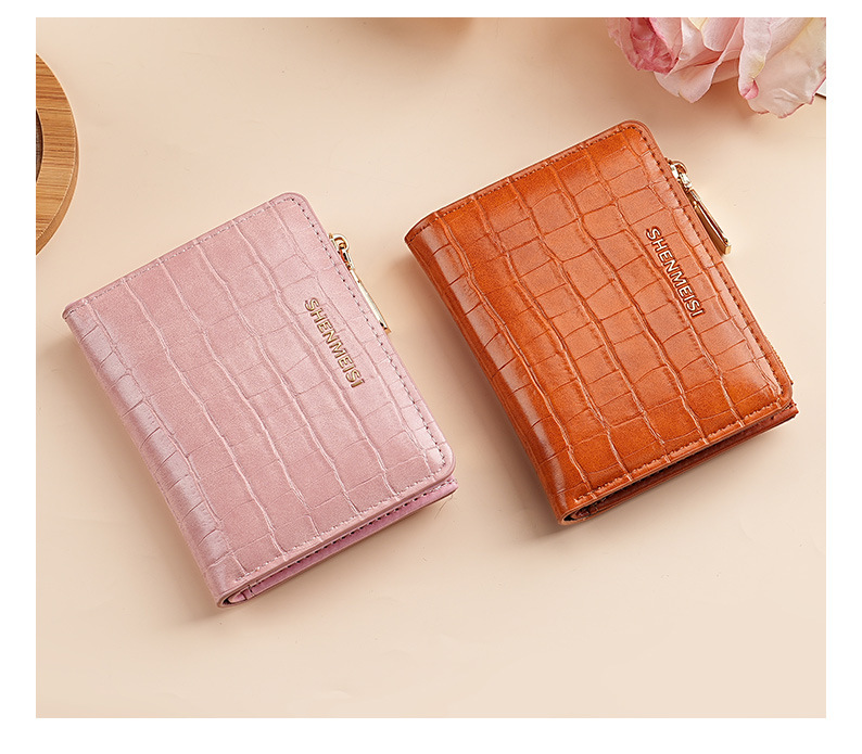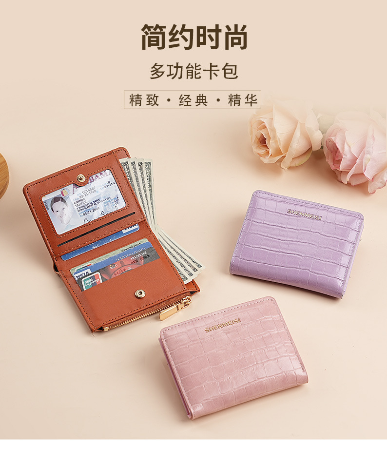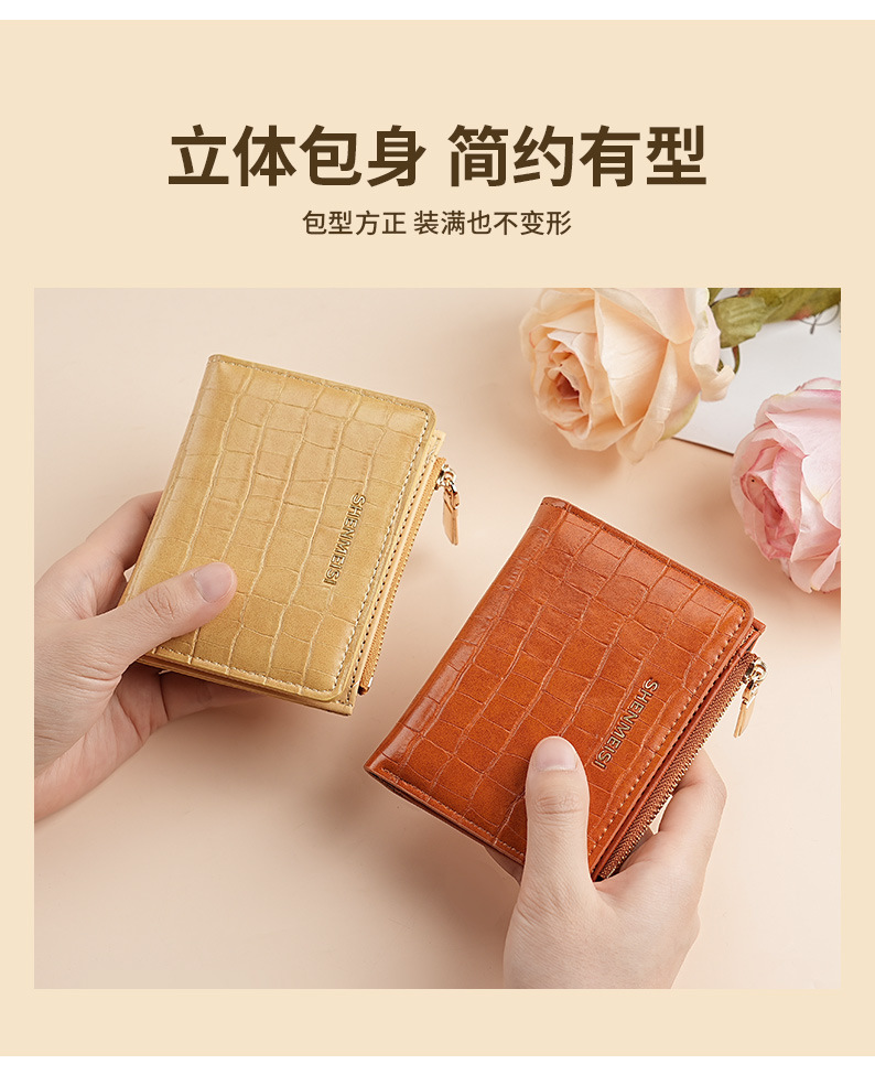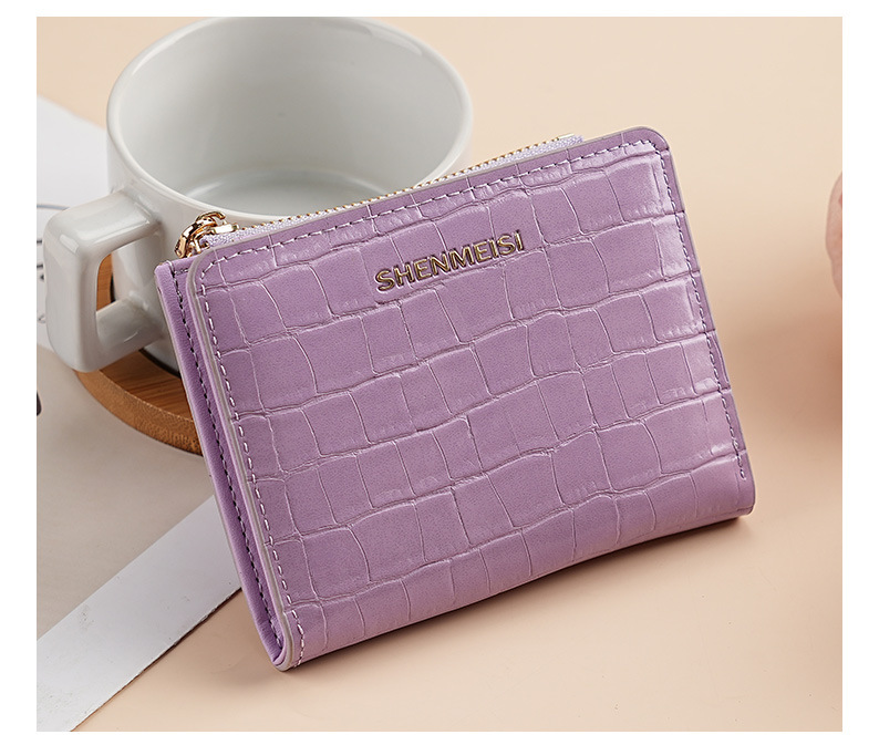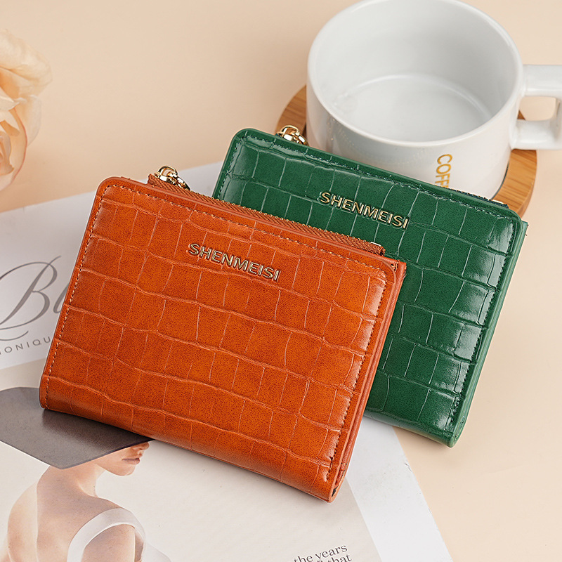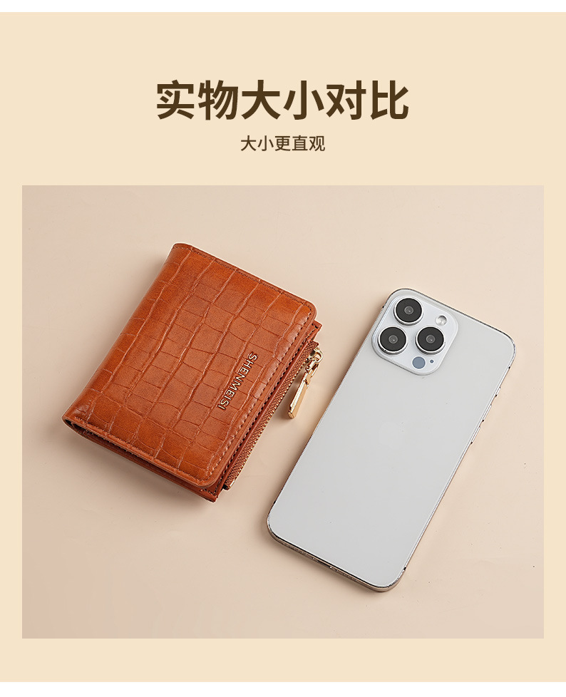 新款女士短款钱包跨境石头纹两折拉链零钱包时尚卡包钱夹票夹卡夹
