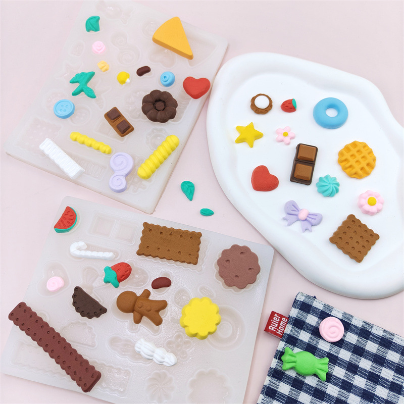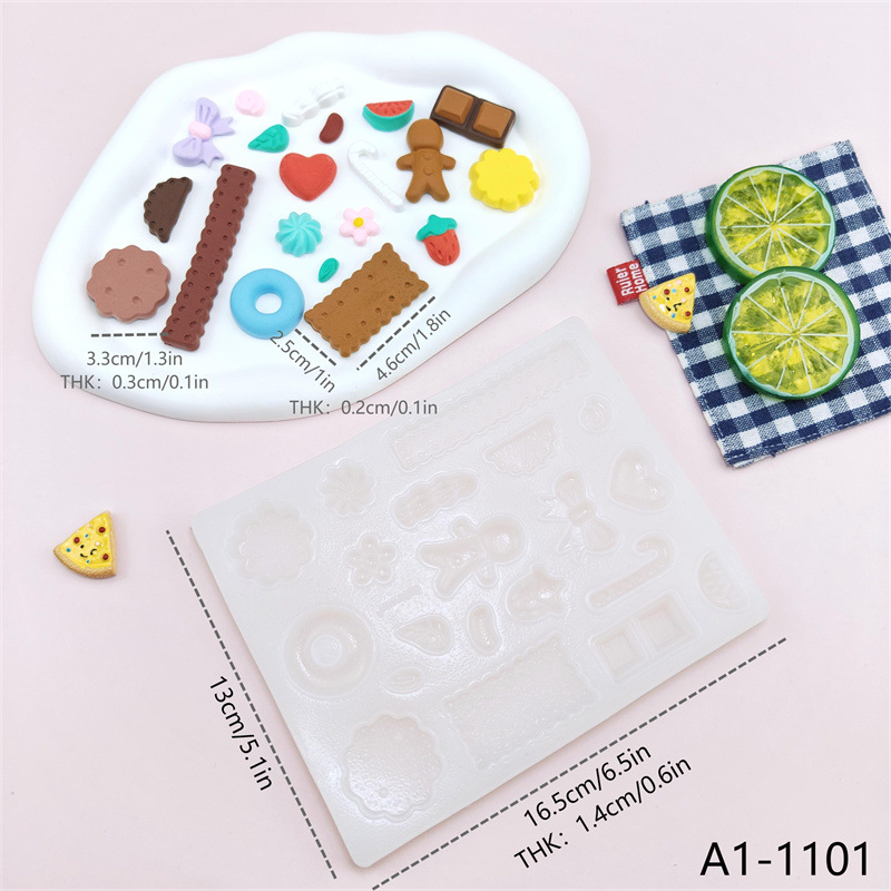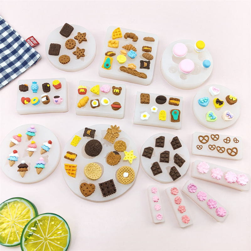 饼干面包迷你食玩硅胶模具DIY滴胶树脂火漆蜡粒粘土装饰模 蛋糕模