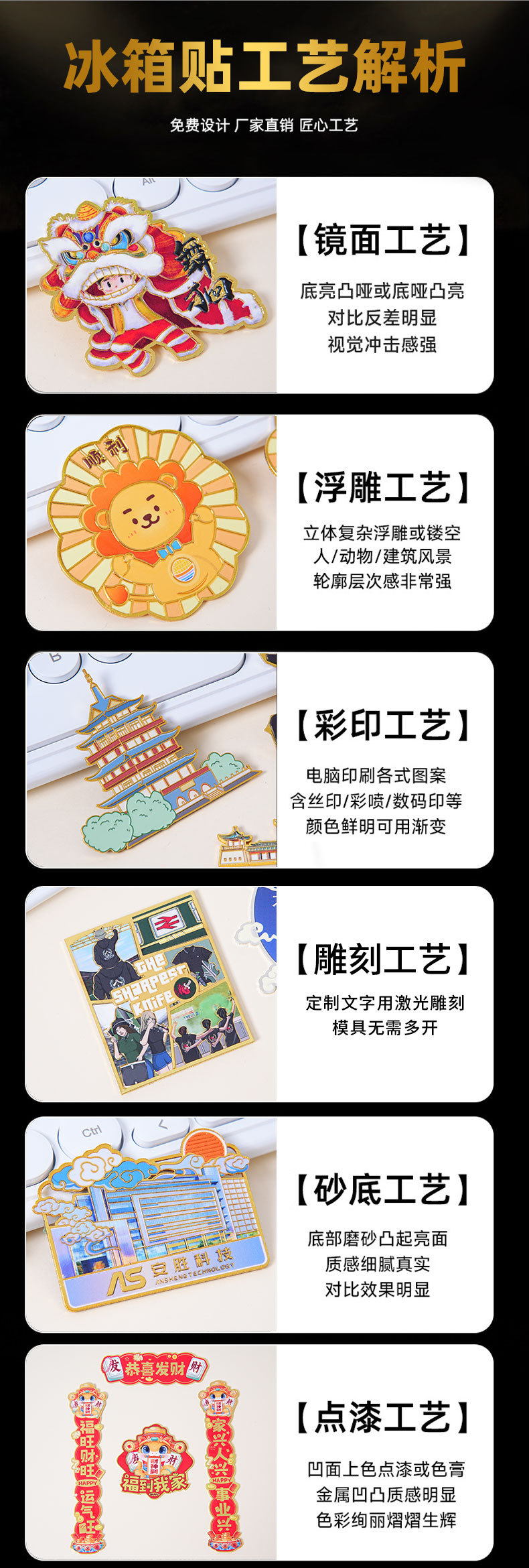 金属冰箱贴定制磁吸贴定做学校企业城市景点纪念贴博物馆logo定制