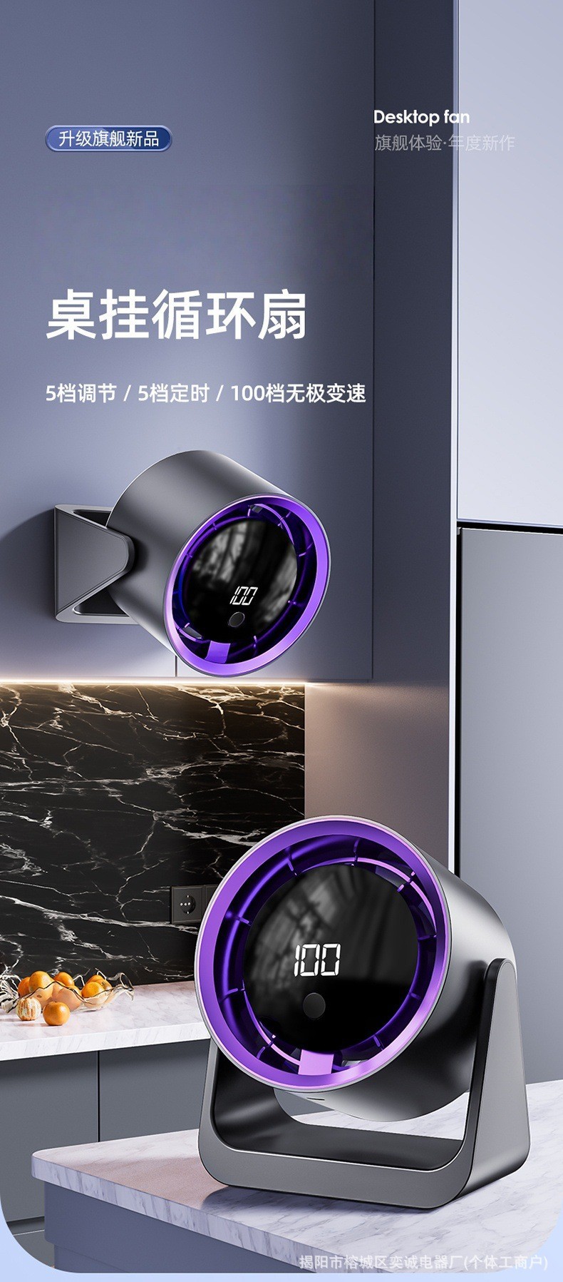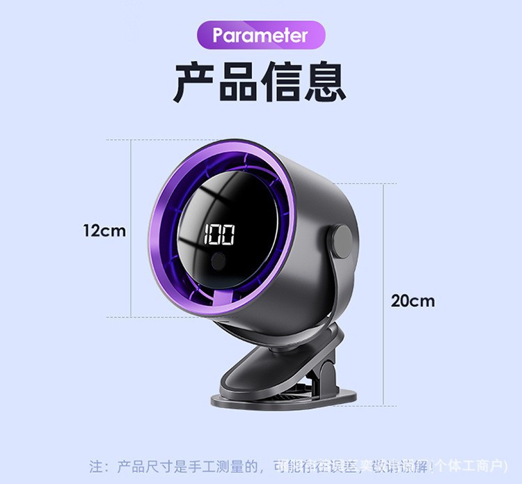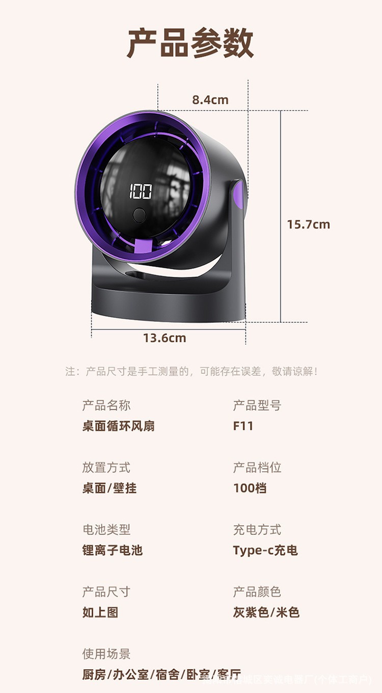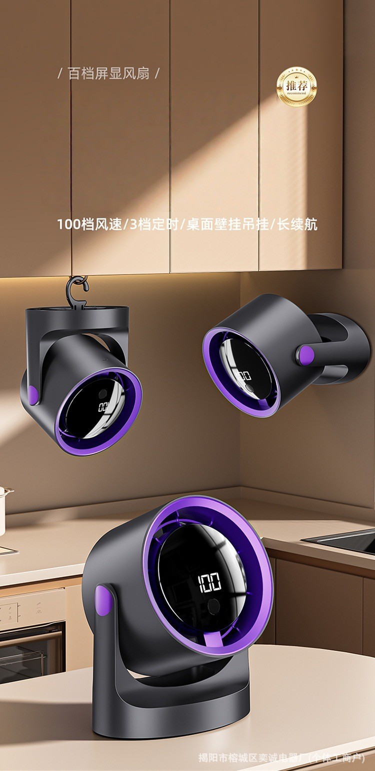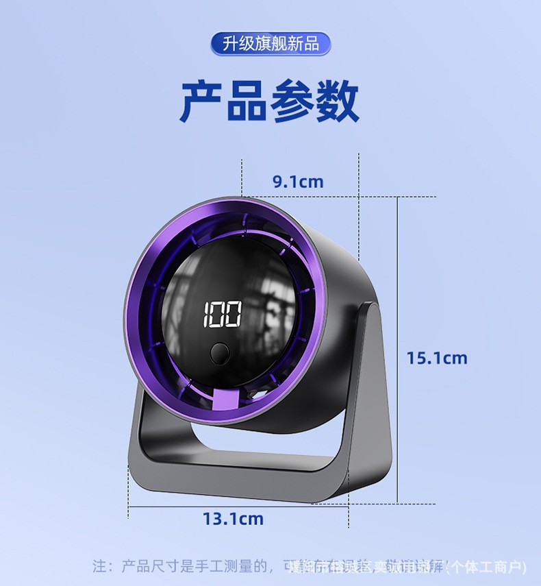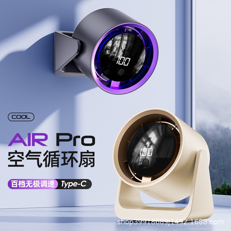 外贸热销桌面循环扇家用户外露营数显USB充电式无叶涡轮壁挂风扇