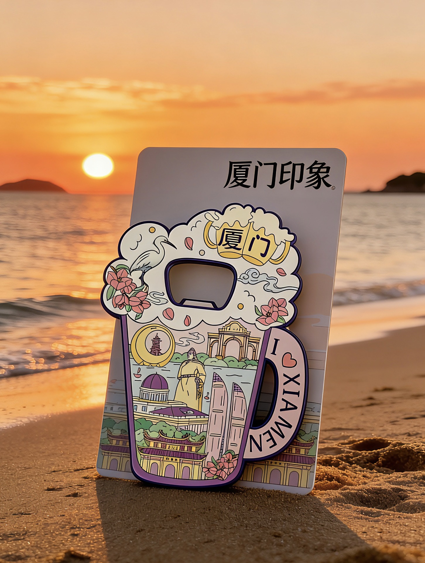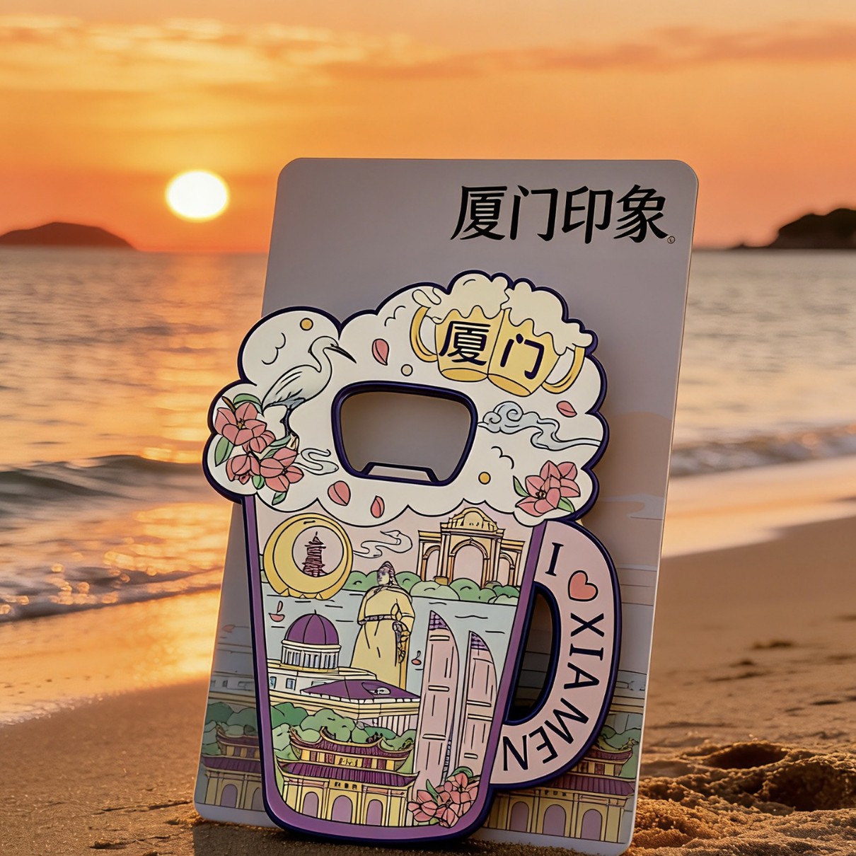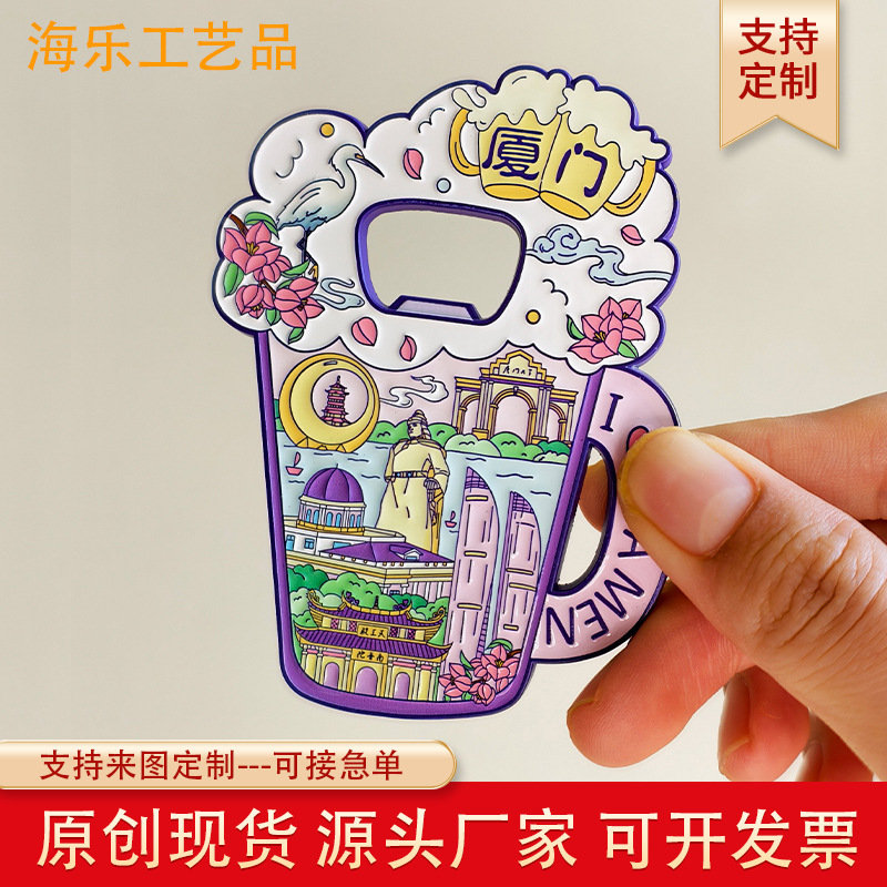 现货厦门金属开瓶器冰箱贴城市旅游文创纪念礼品烤漆冰箱贴定制