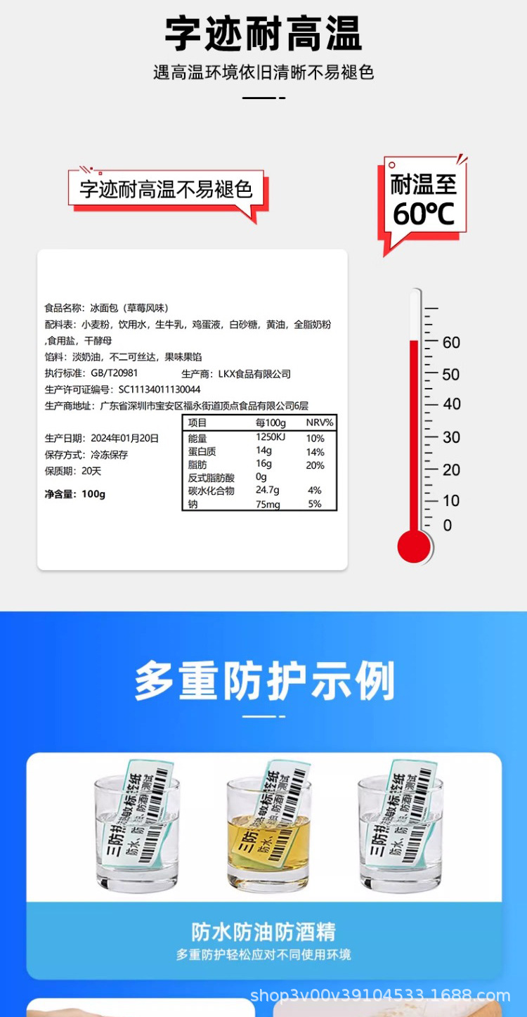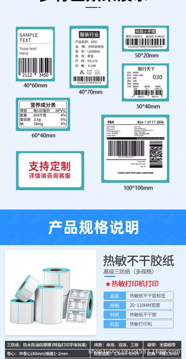 三防热敏标签纸60*40 20 50 70 80 90 100x100不干胶奶茶超市贴纸