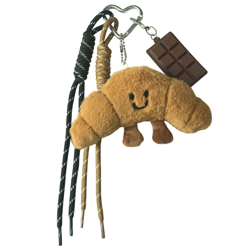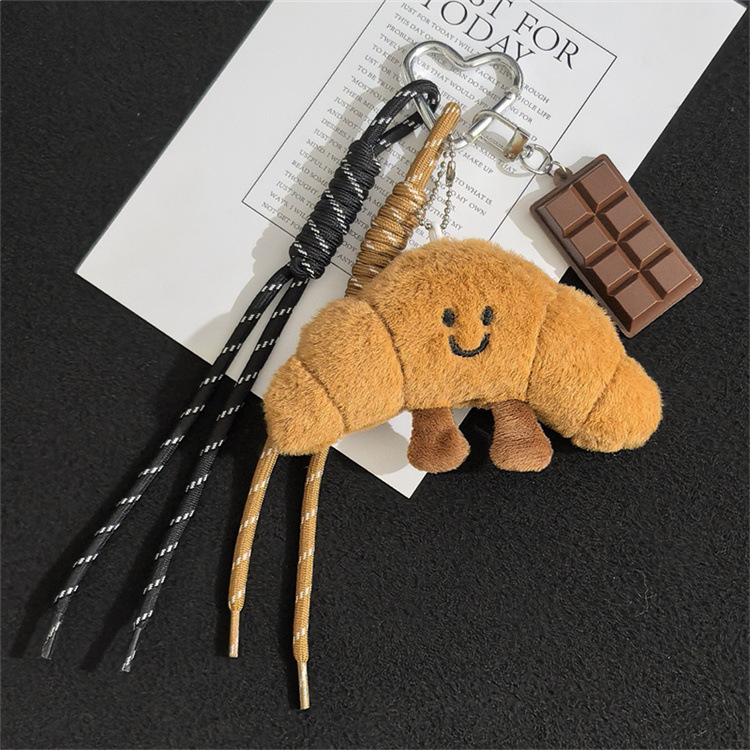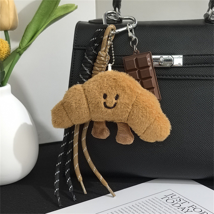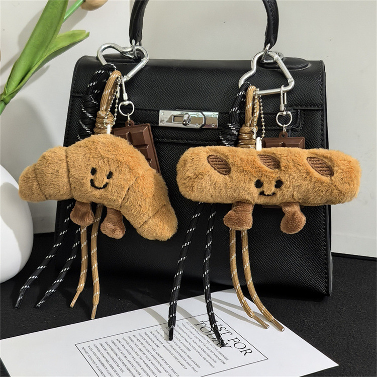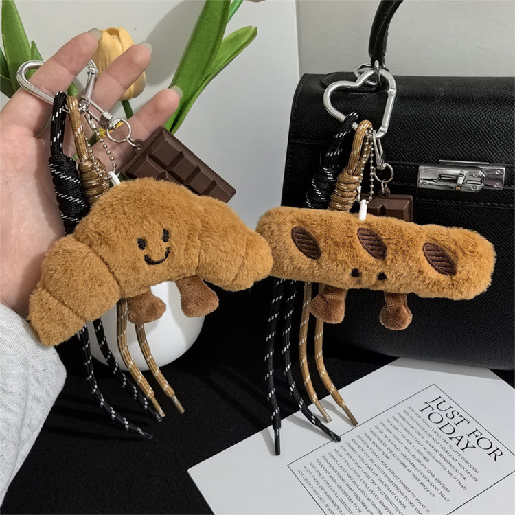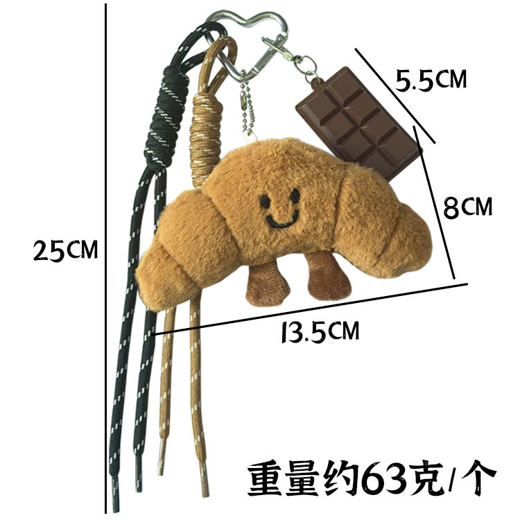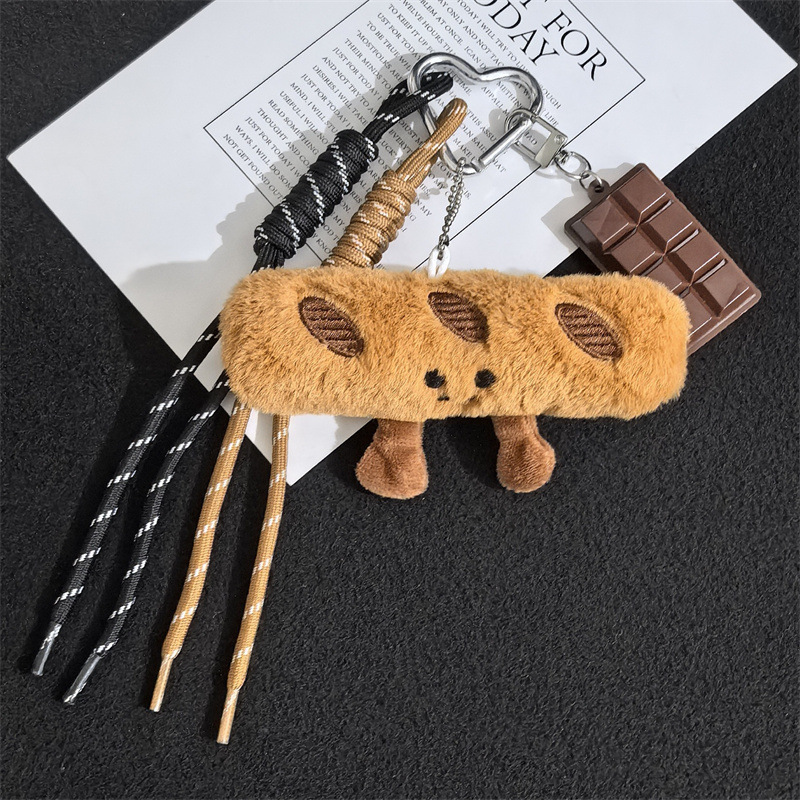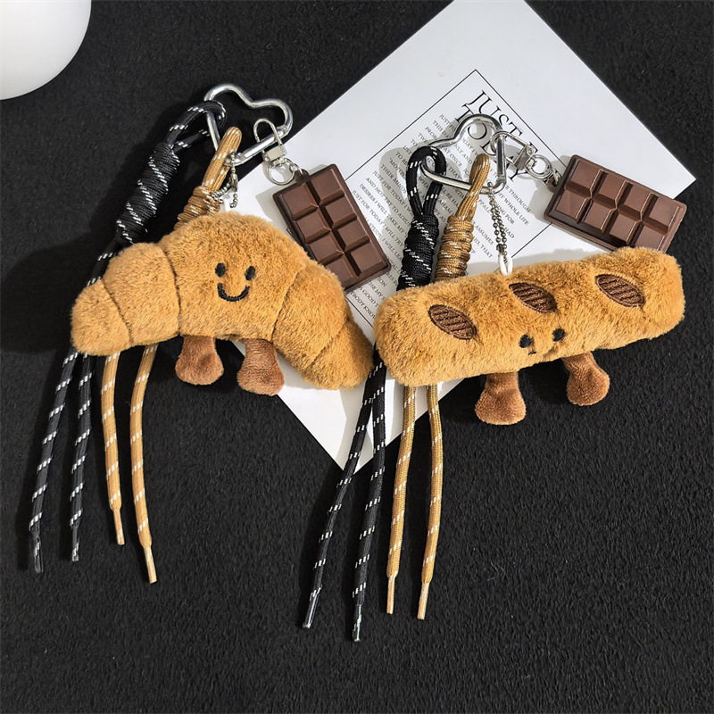 咖色三角包法棍面包挂件卡通吱吱叫情侣钥匙扣公仔包包挂饰配件