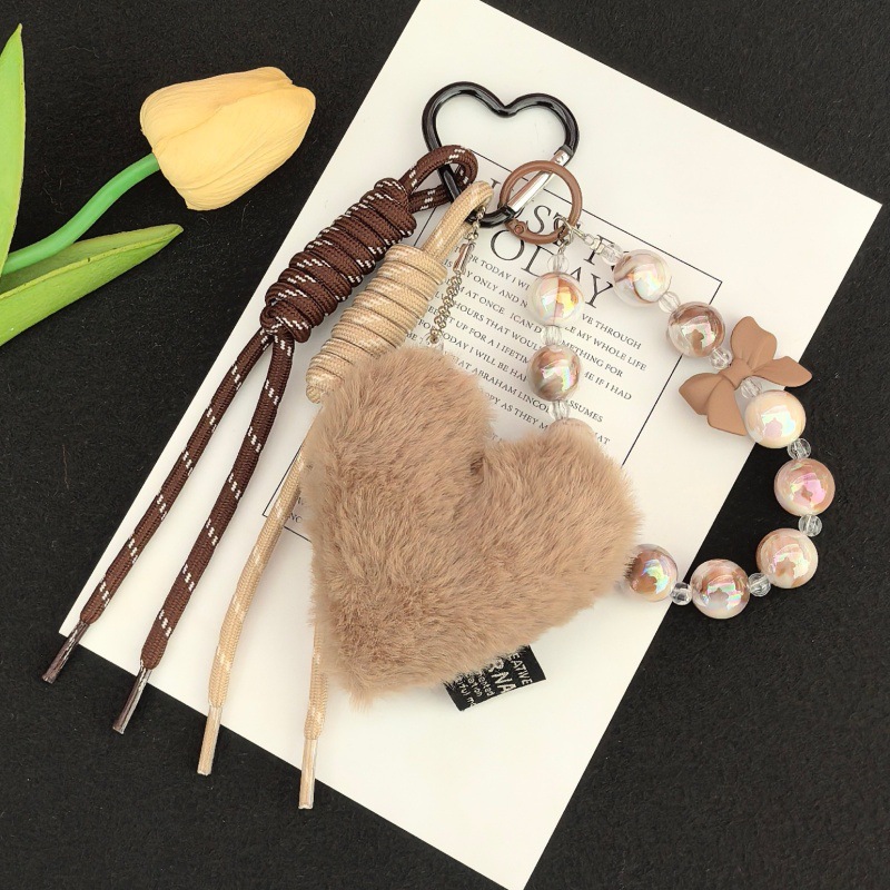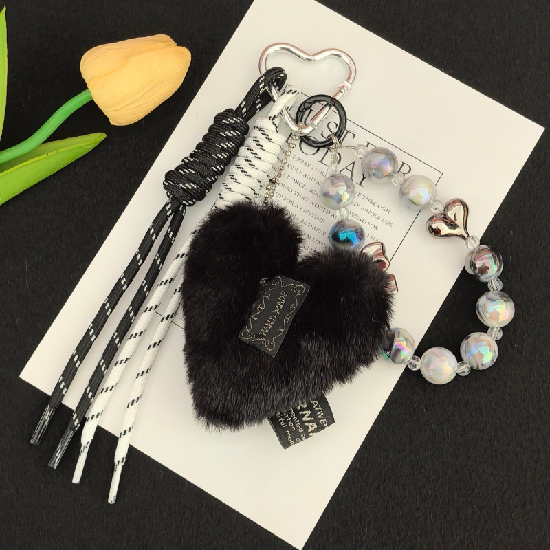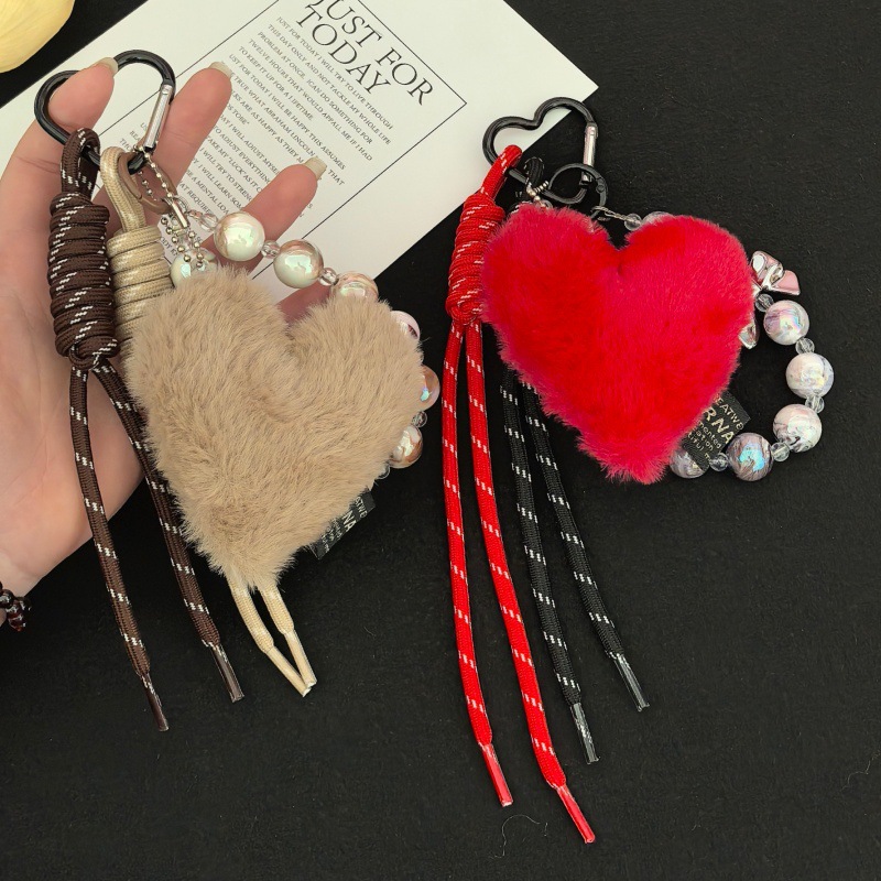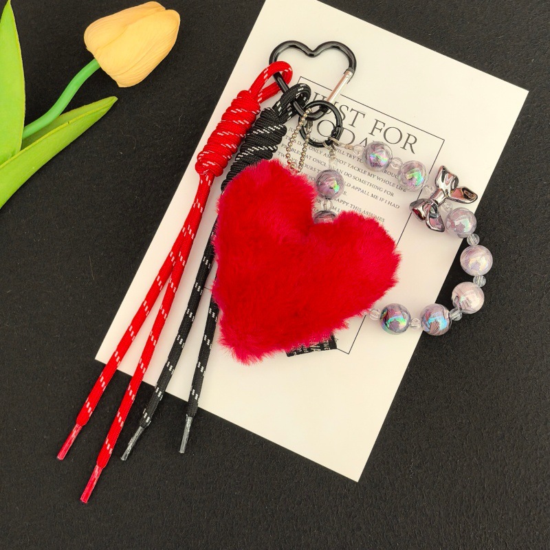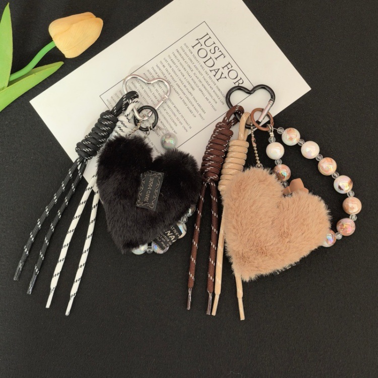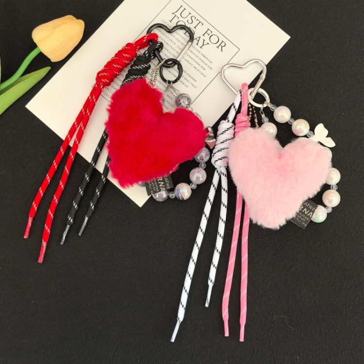 跨境小众新品毛绒爱心挂饰卡通可爱钥匙扣包包玩偶礼品