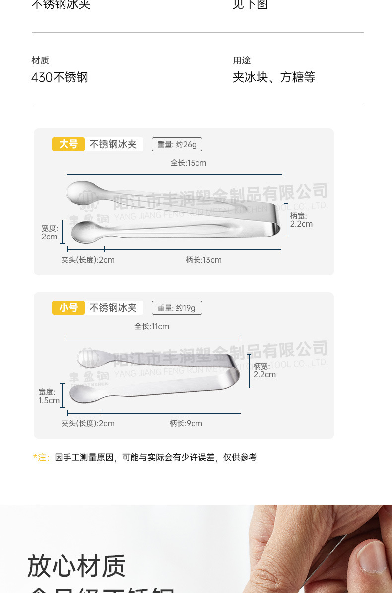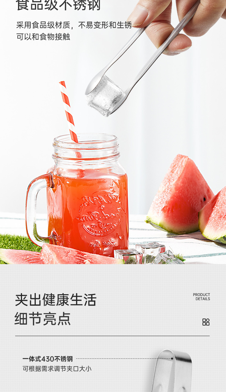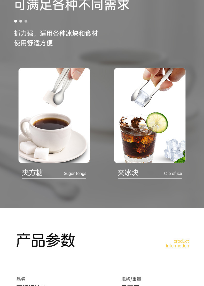 迷你不锈钢冰夹子餐厅酒吧冰块夹小号咖啡方糖夹加厚食品夹食物夹