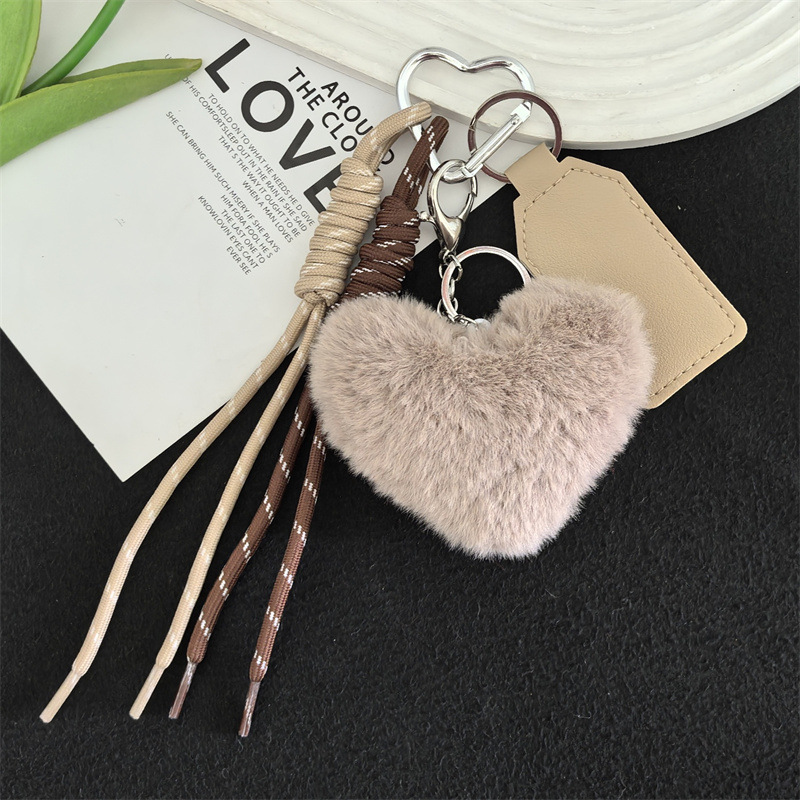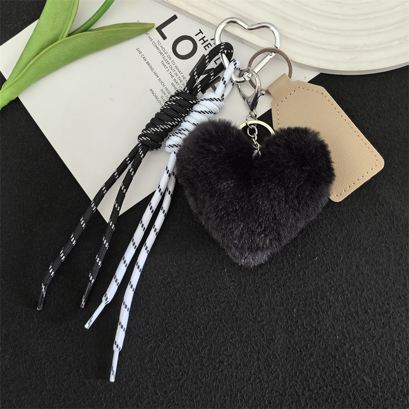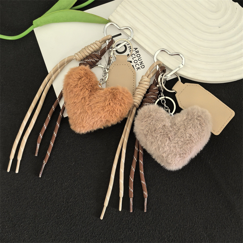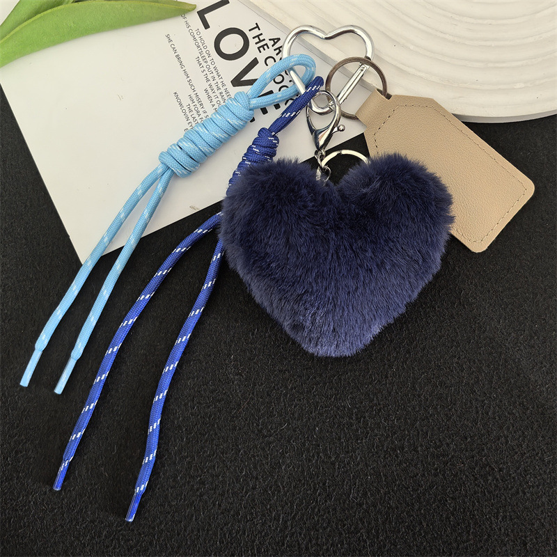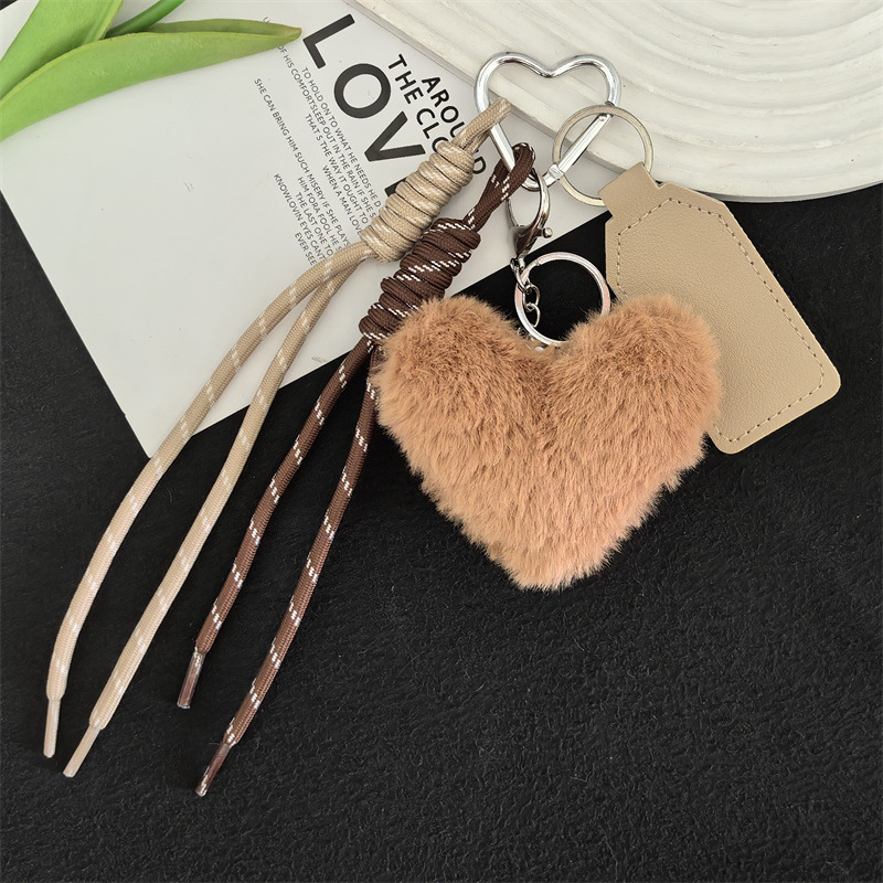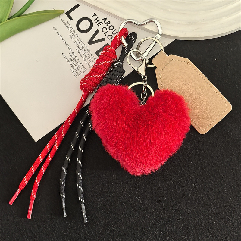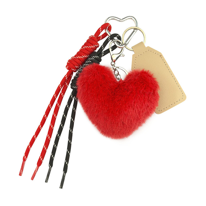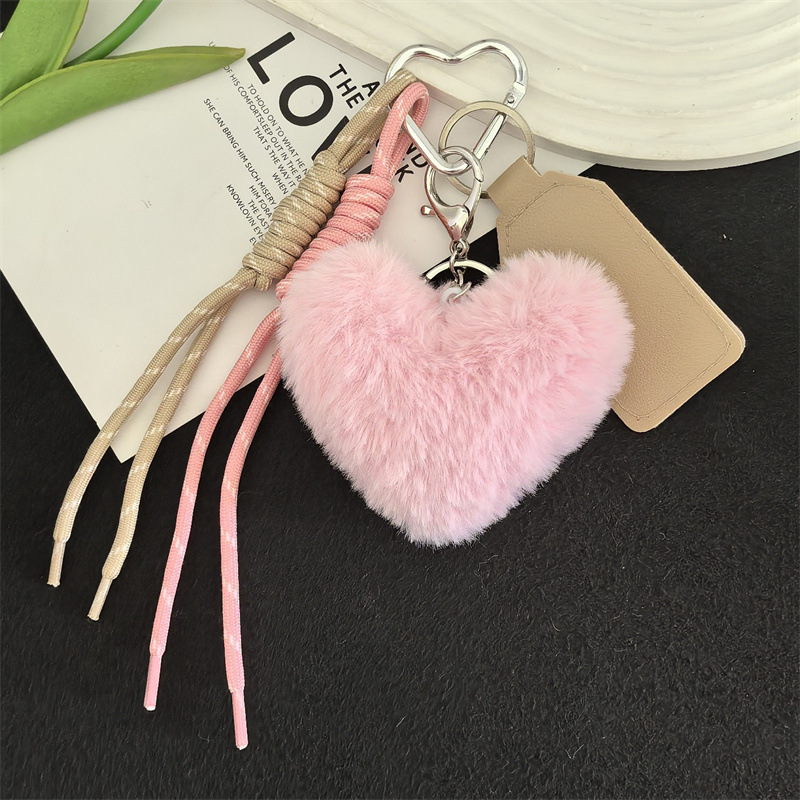 可爱獭兔毛绒爱心车钥匙扣编织绳挂饰个性创意包包挂件礼物女