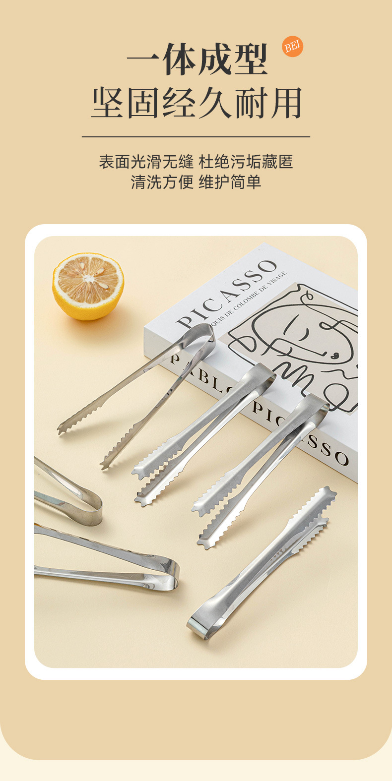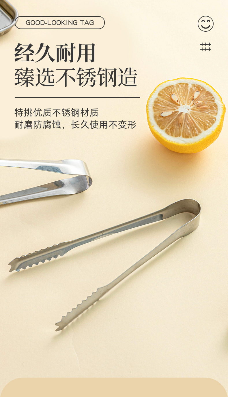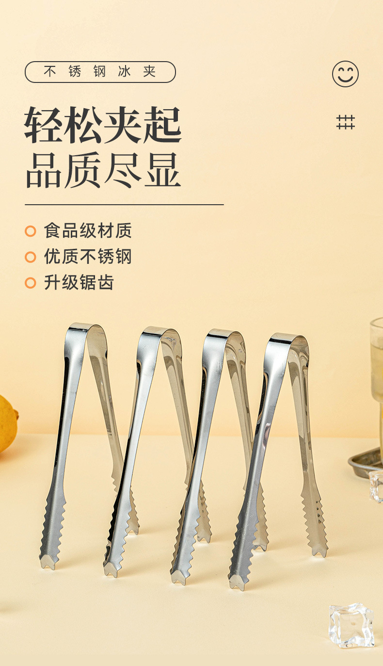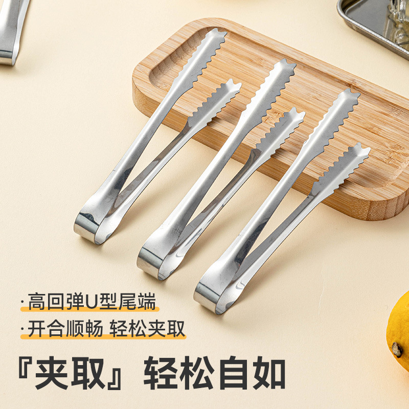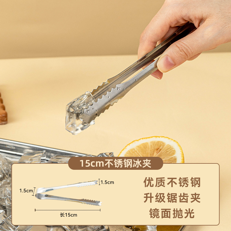 夹子食品夹不锈钢冰块厨房加厚特大号专用食物调酒工具套装防滑小