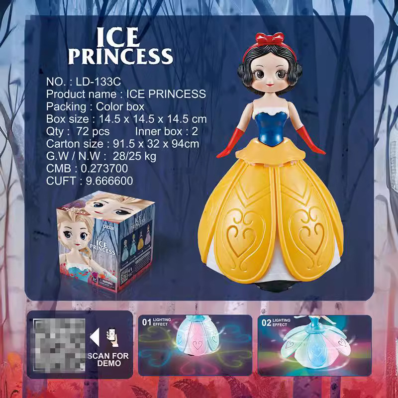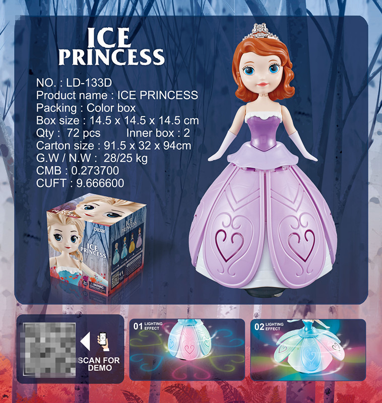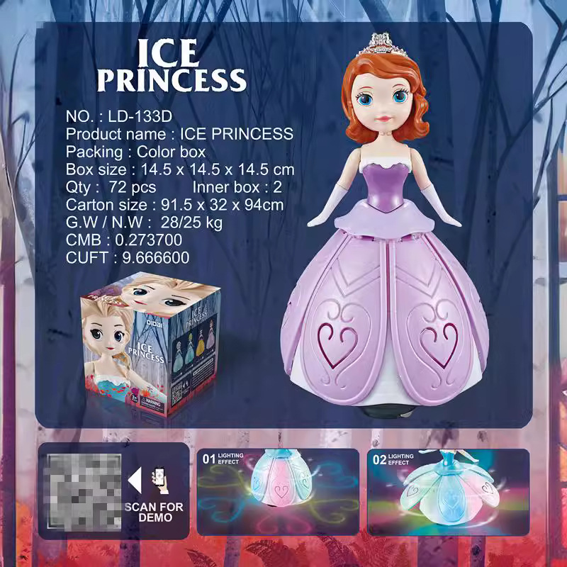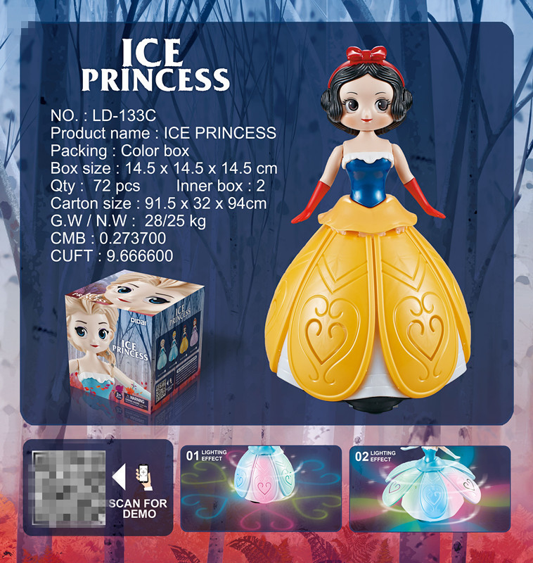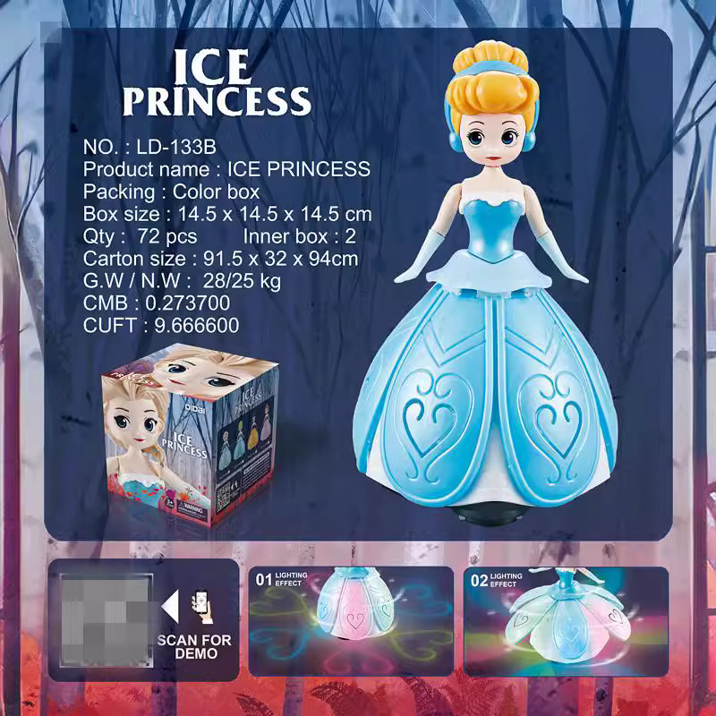 跨境热卖万向跳舞旋转公主系列音乐灯光女孩儿童玩具抖音夜市地摊