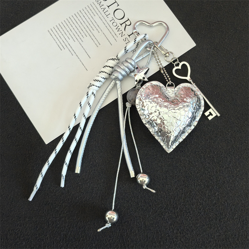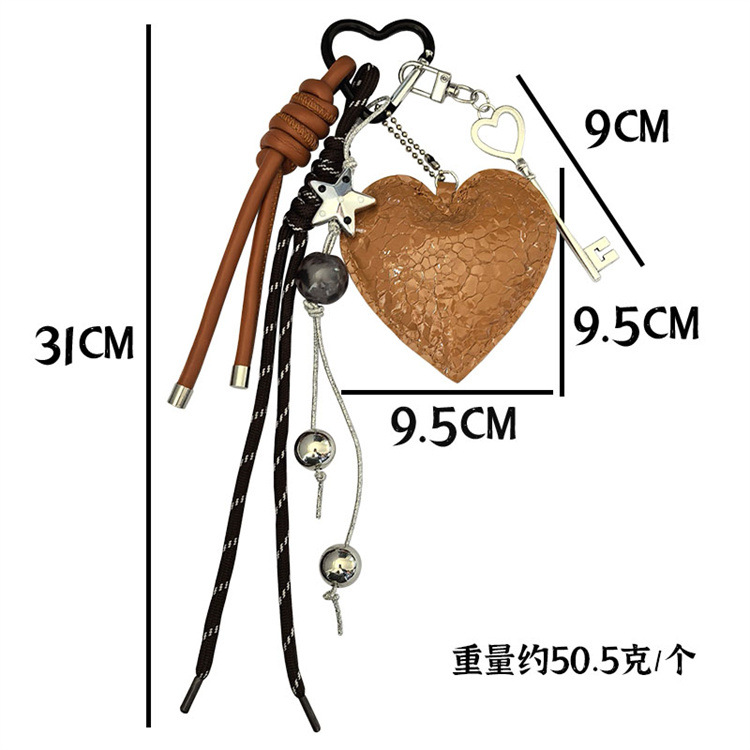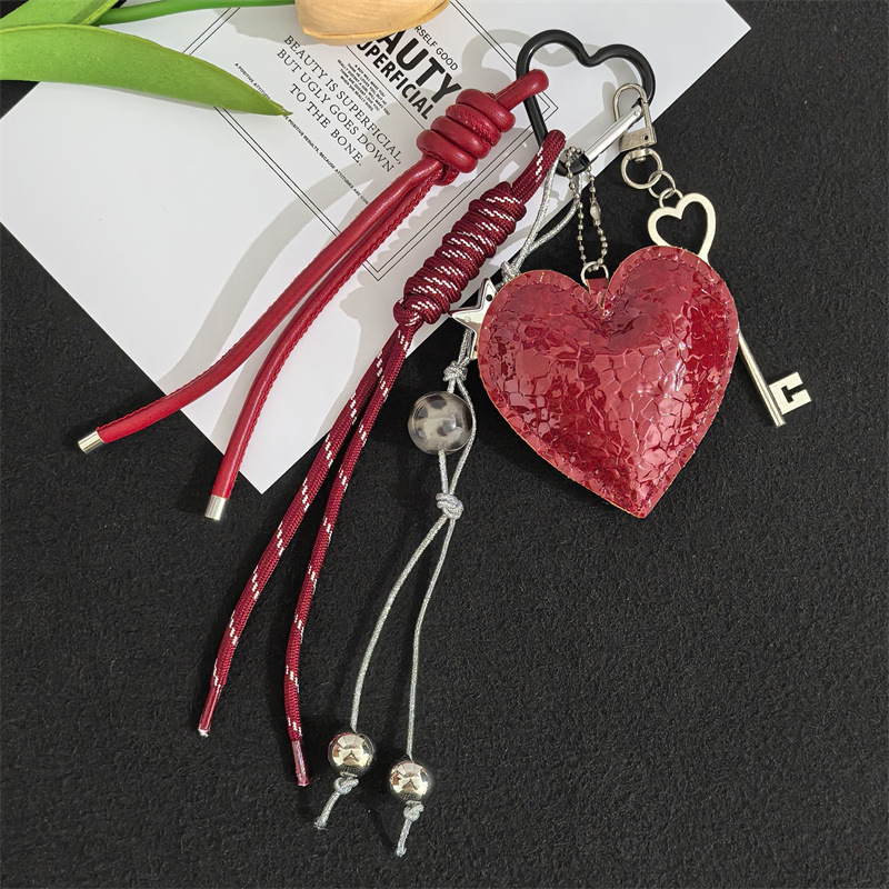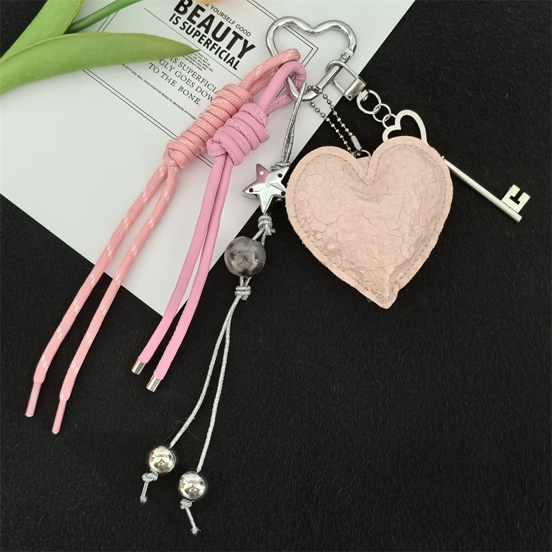 创意精致miu系手工编织挂绳个性百搭皮革爱心包包配饰钥匙扣挂件