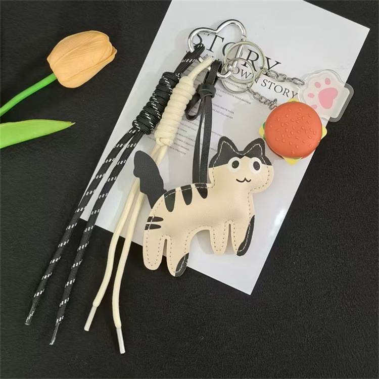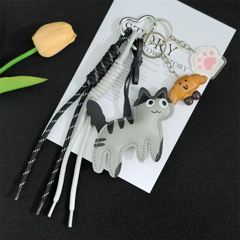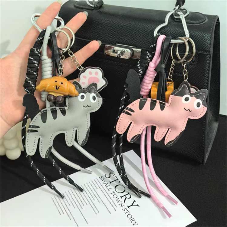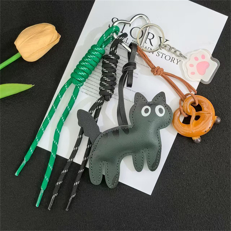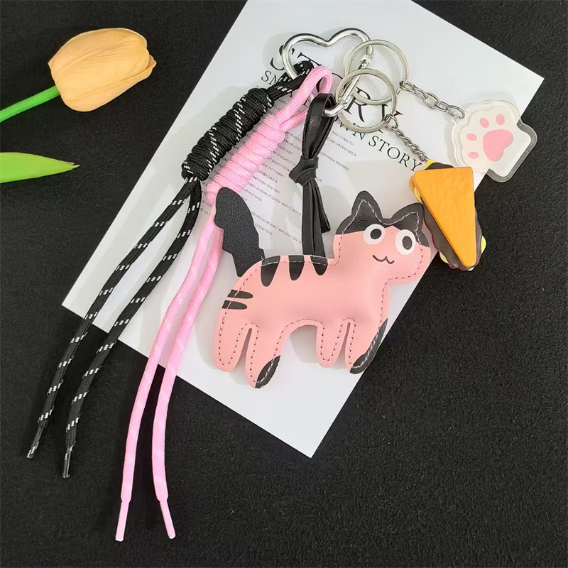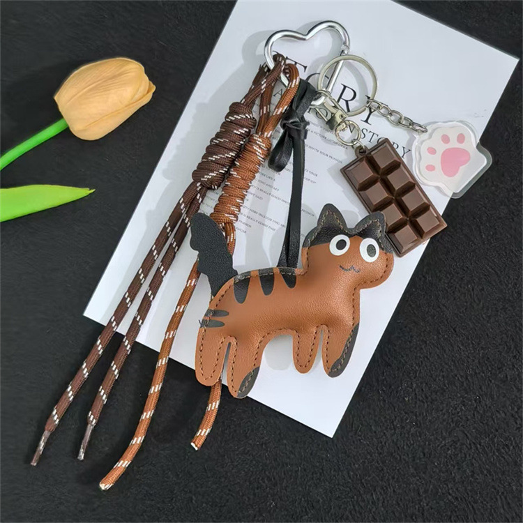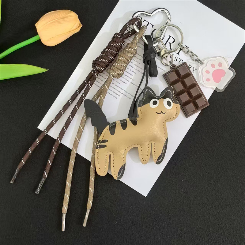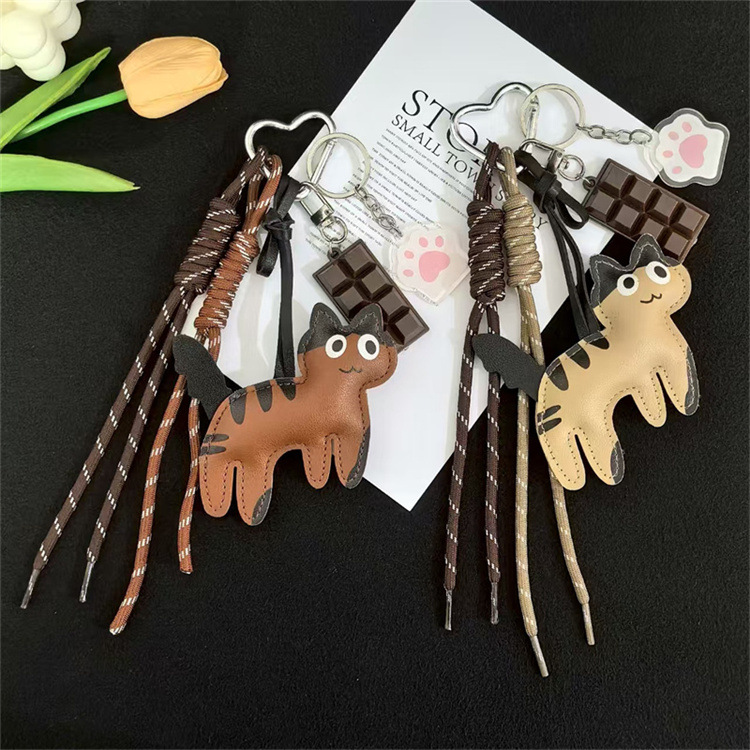 卡通小红书同款巧克力猫咪编织绳高品质钥匙扣可爱质感包挂批发