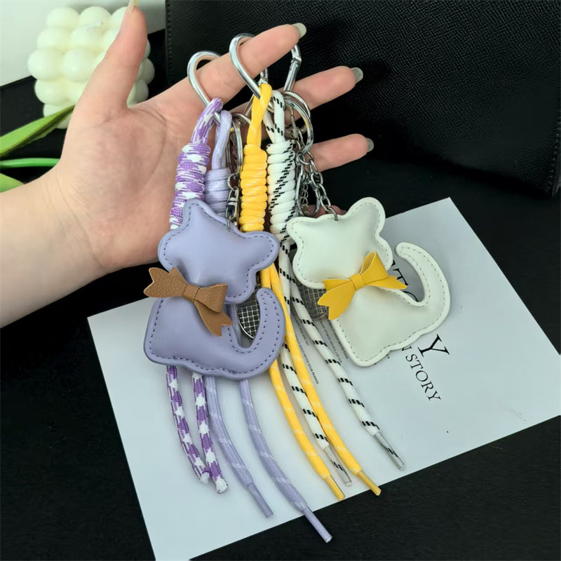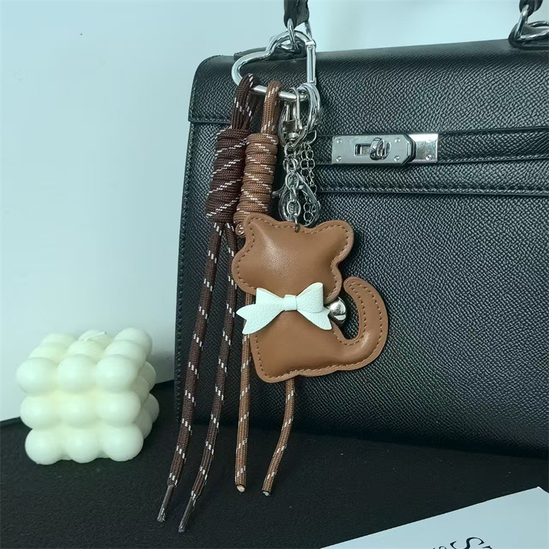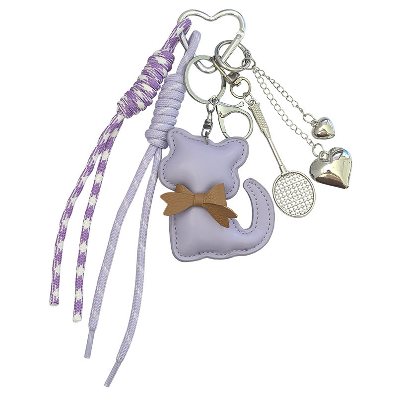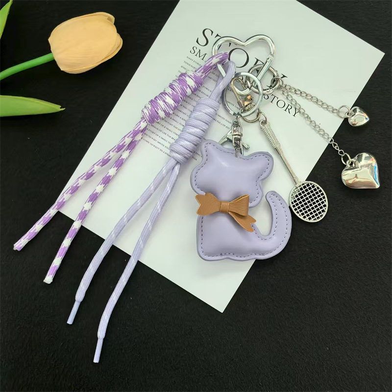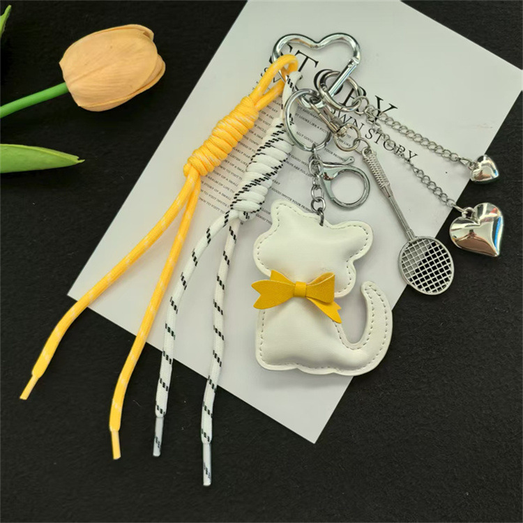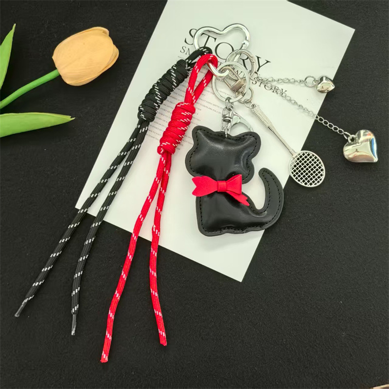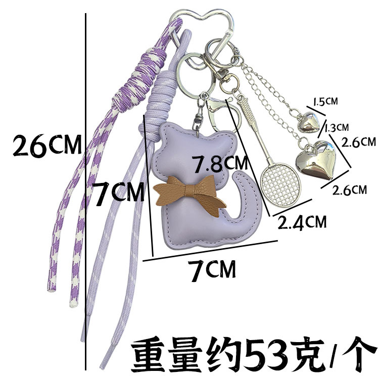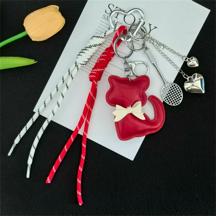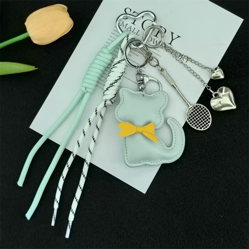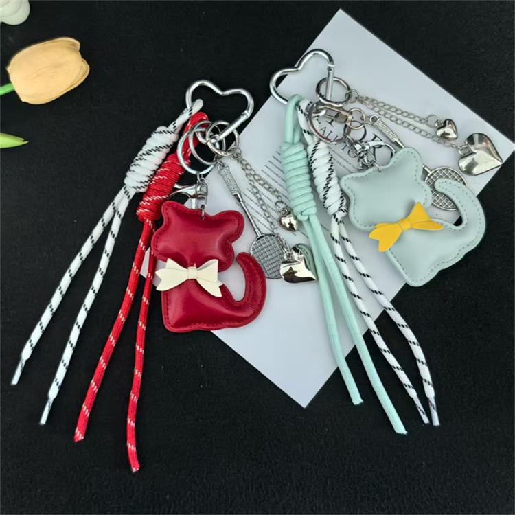 创意皮革猫咪编织绳羽毛球网拍miu系钥匙扣包包挂件钥匙配饰批发