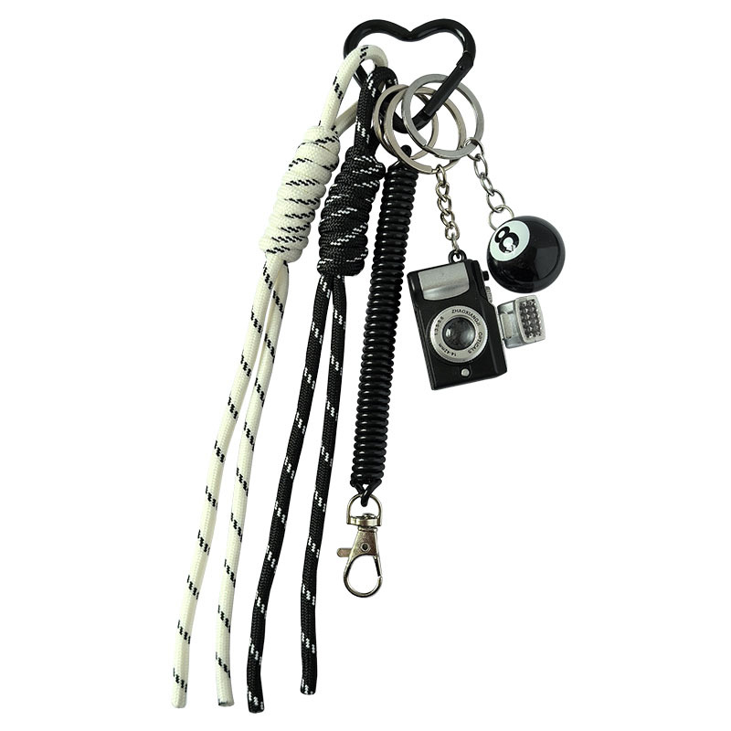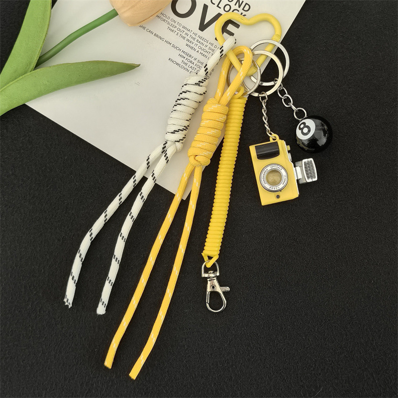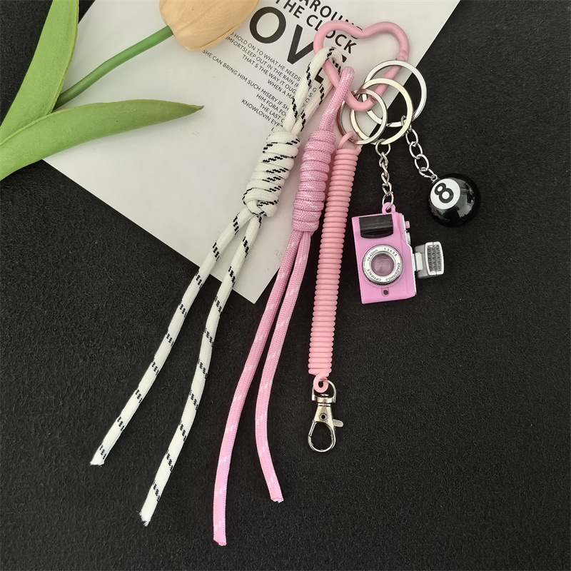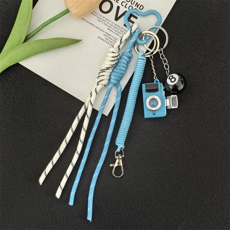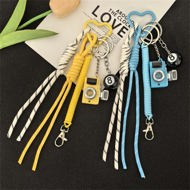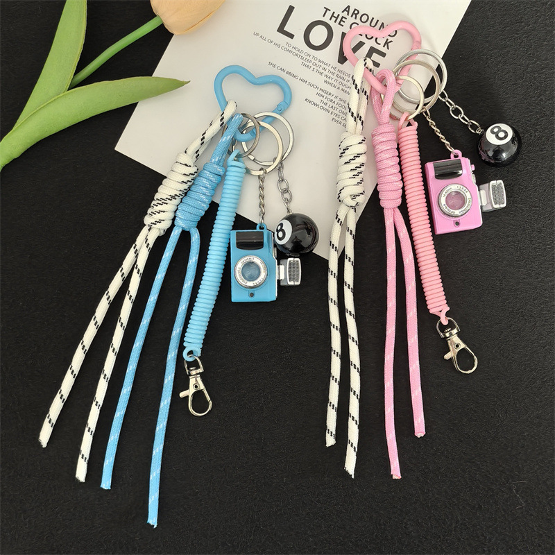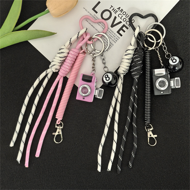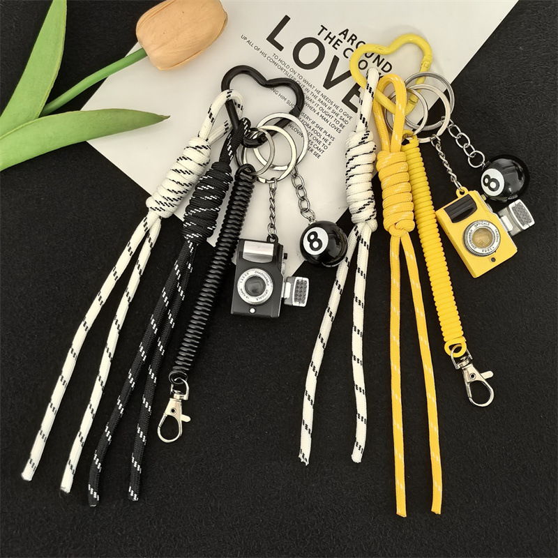 ins博主同款小相机配饰包包编织绳挂件 MIU系黑8台球钥匙扣挂饰