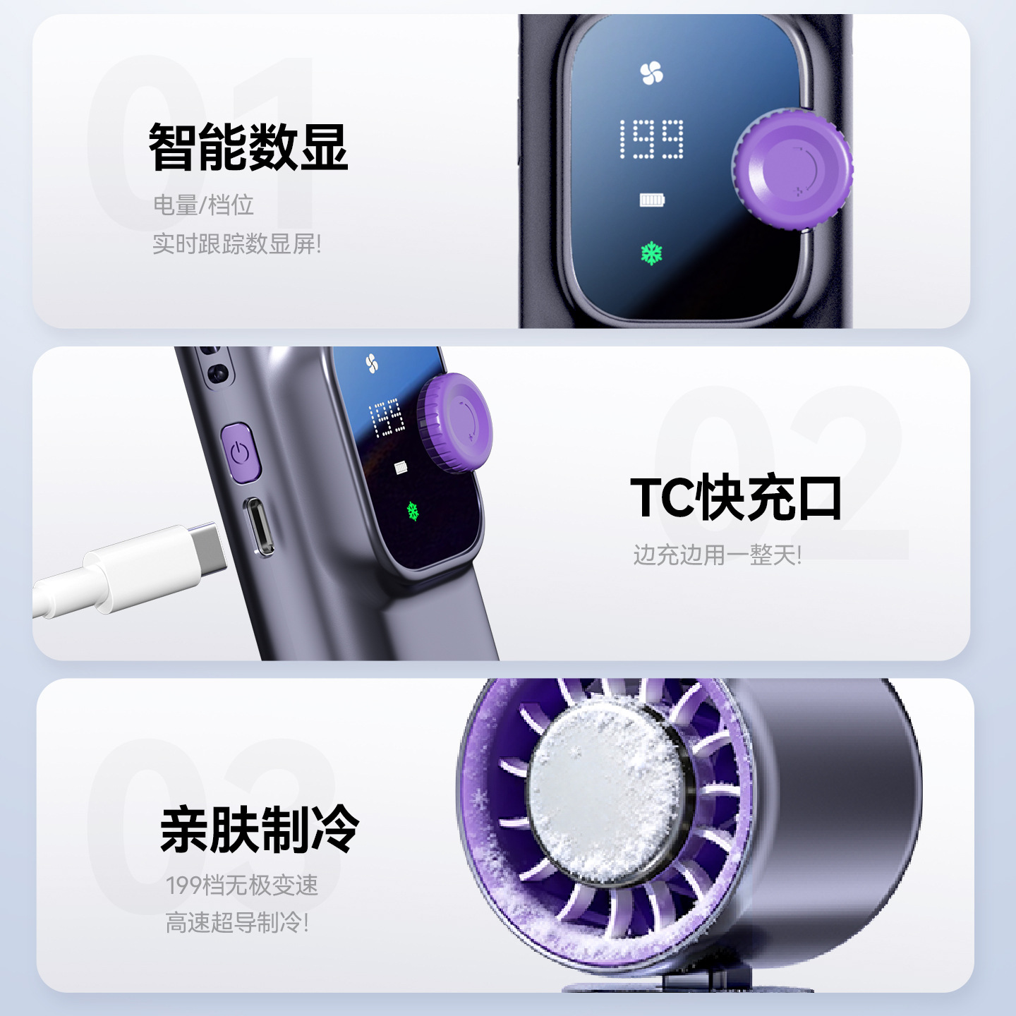 2026新款现货高速手持小风扇户外便携式涡轮暴力风扇 USB冰敷风扇