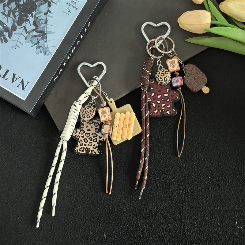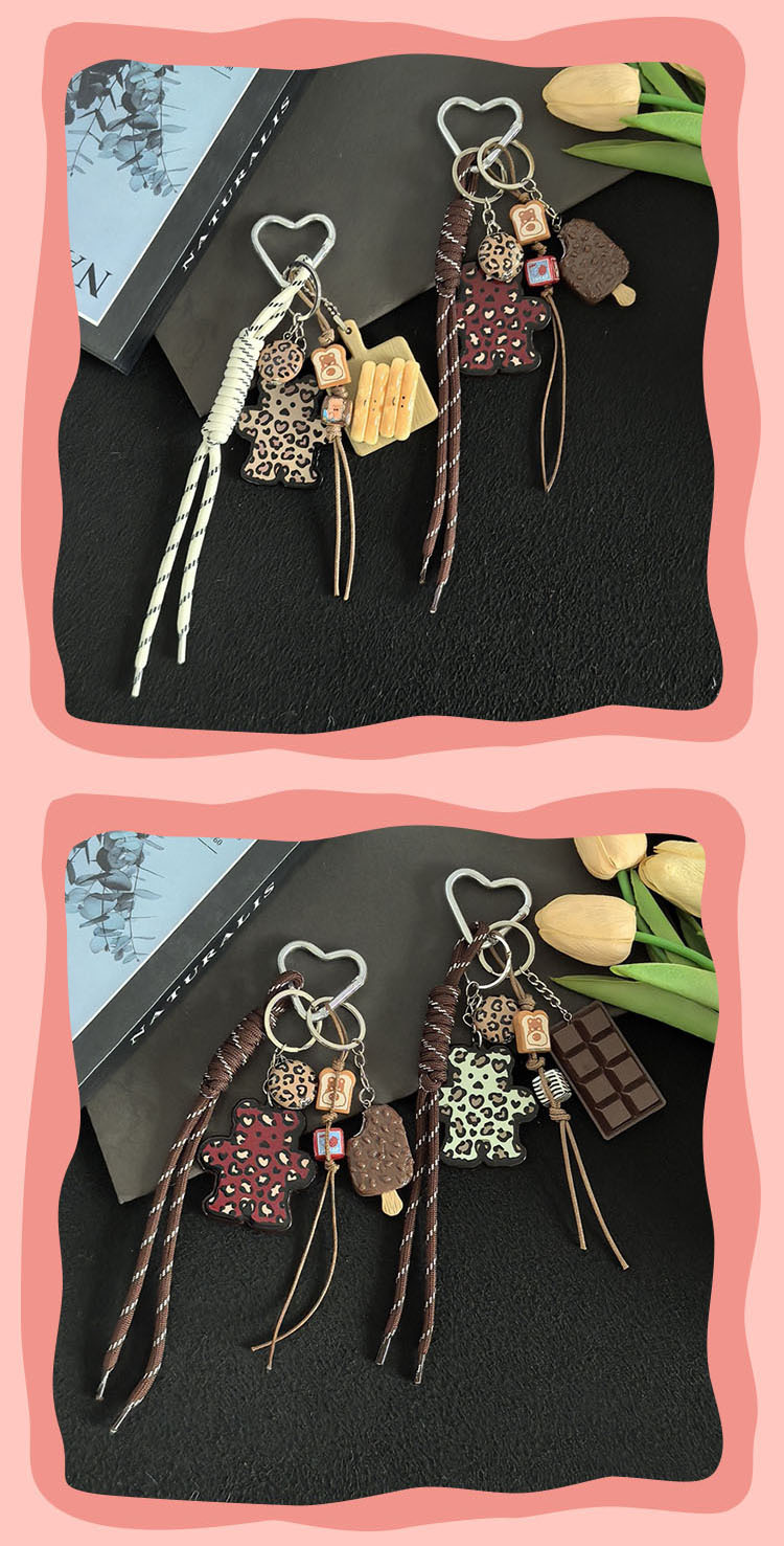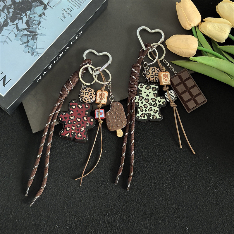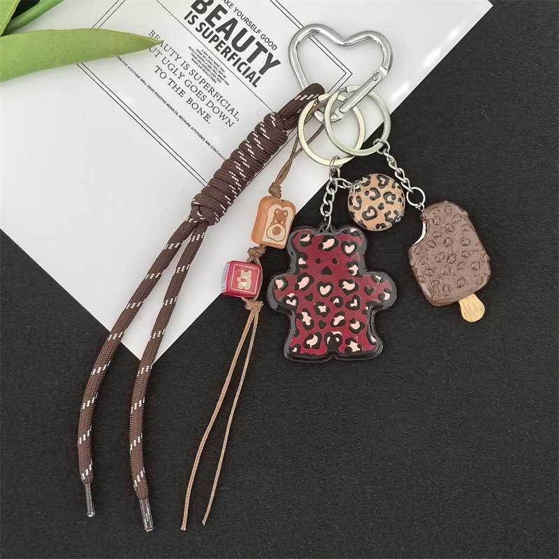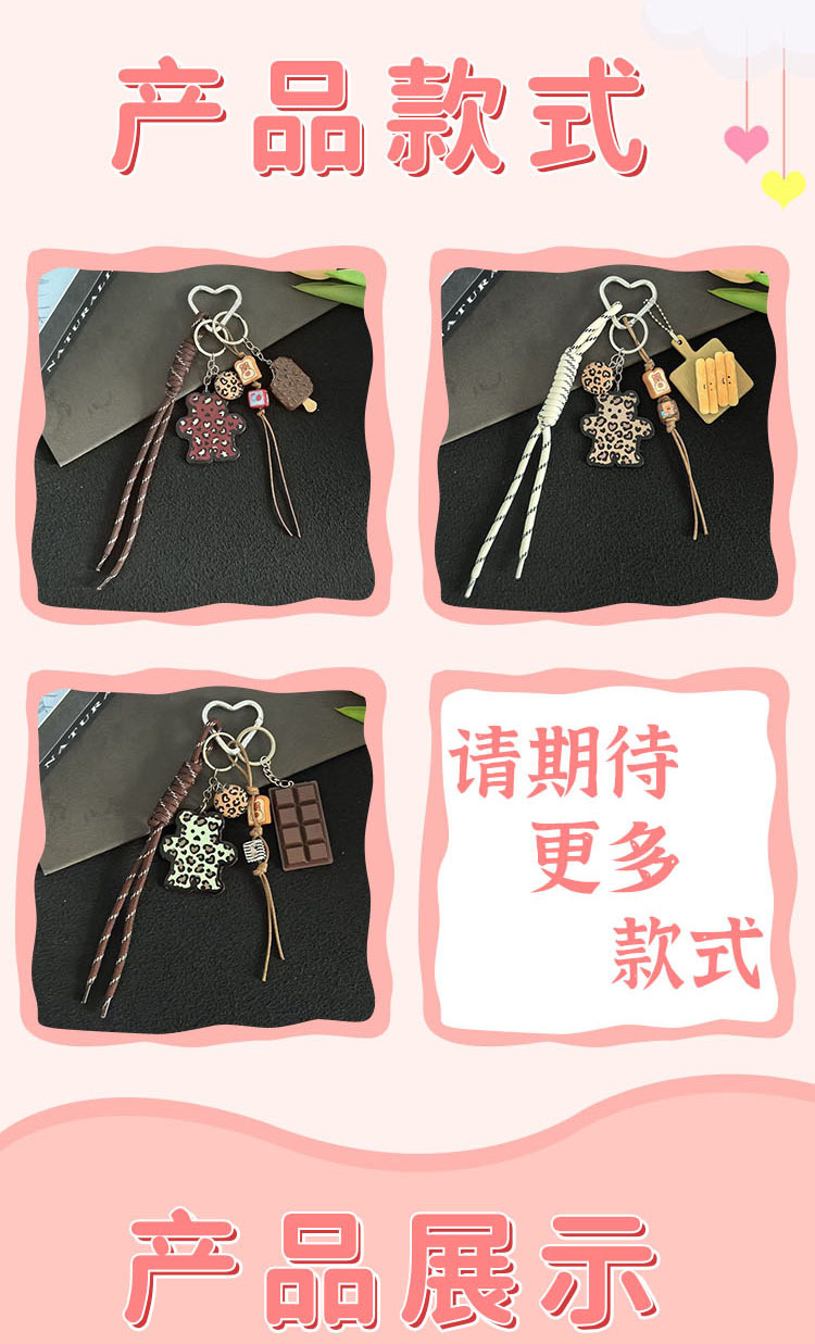小众热销跨境新品百搭豹纹卡牌小熊挂饰包包挂件钥匙扣