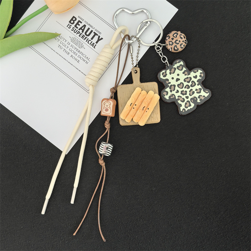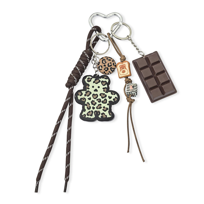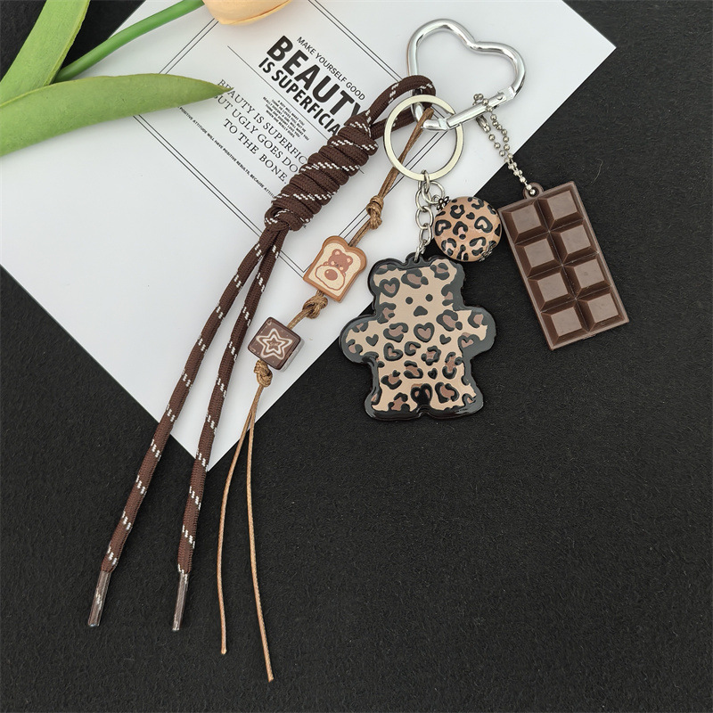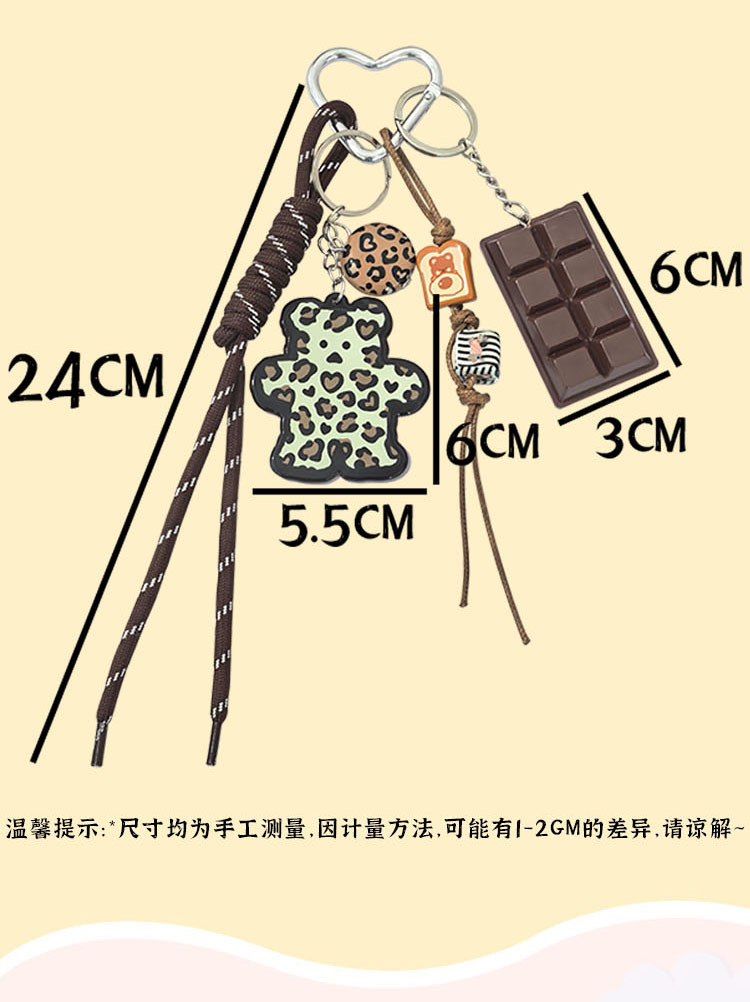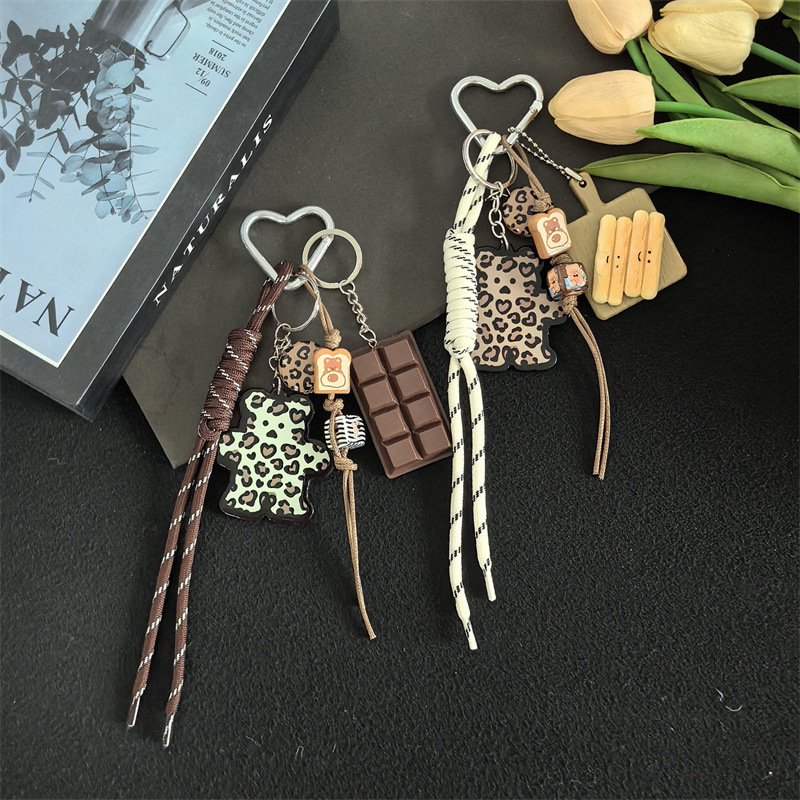 小众热销跨境新品百搭豹纹卡牌小熊挂饰包包挂件钥匙扣