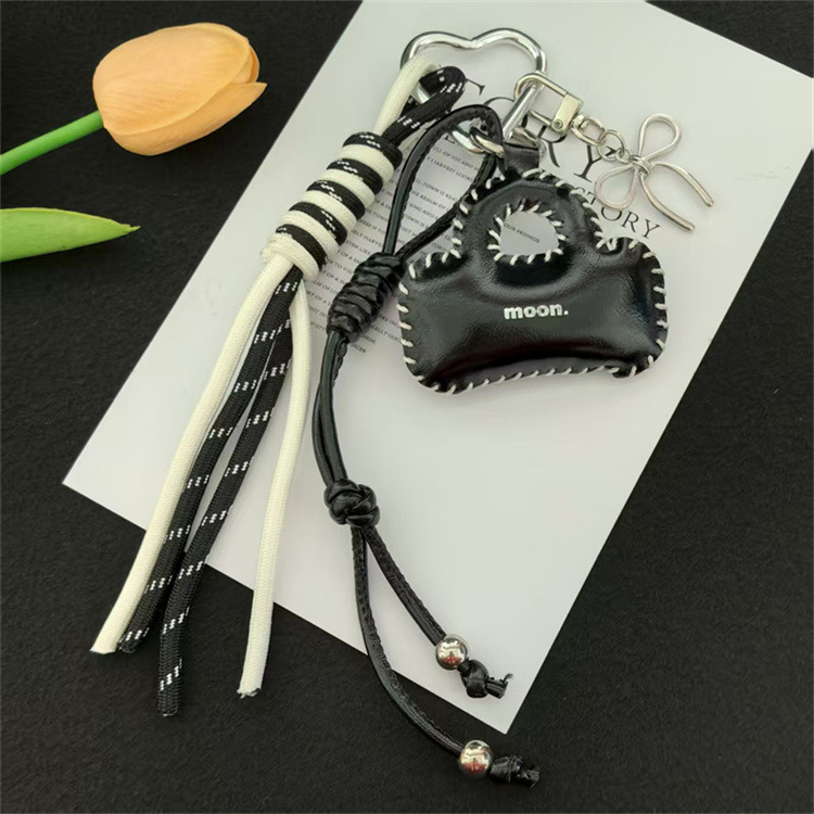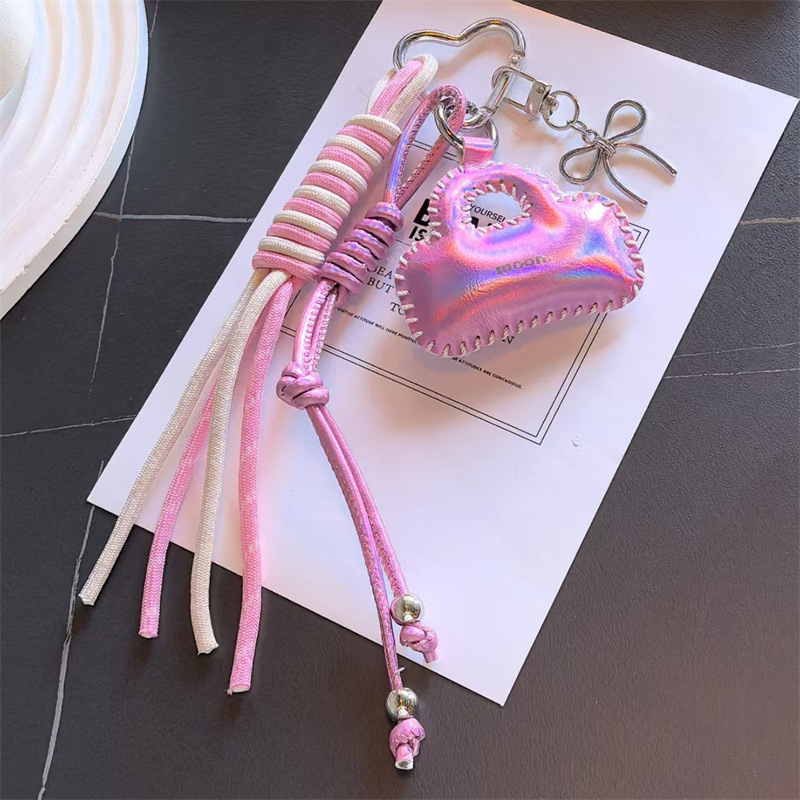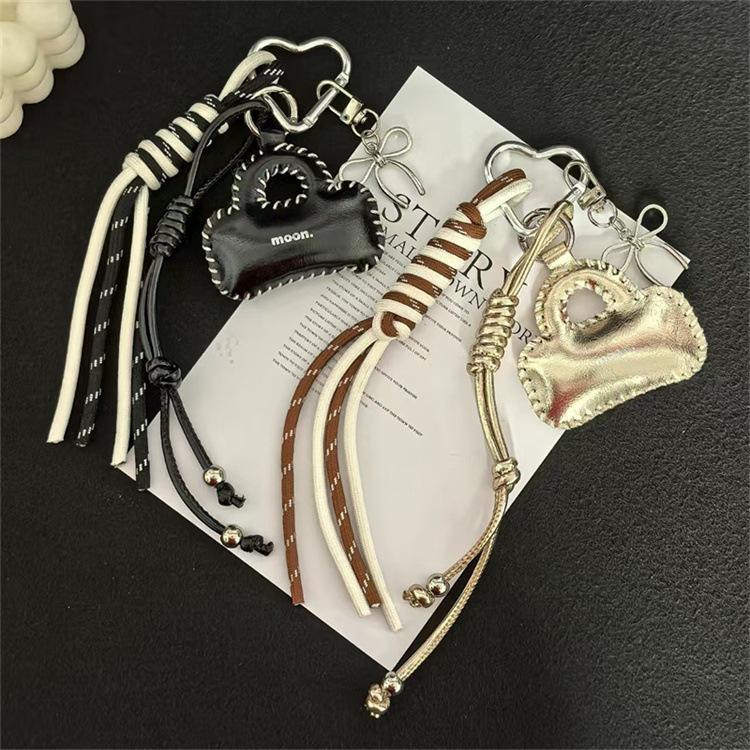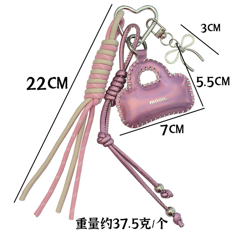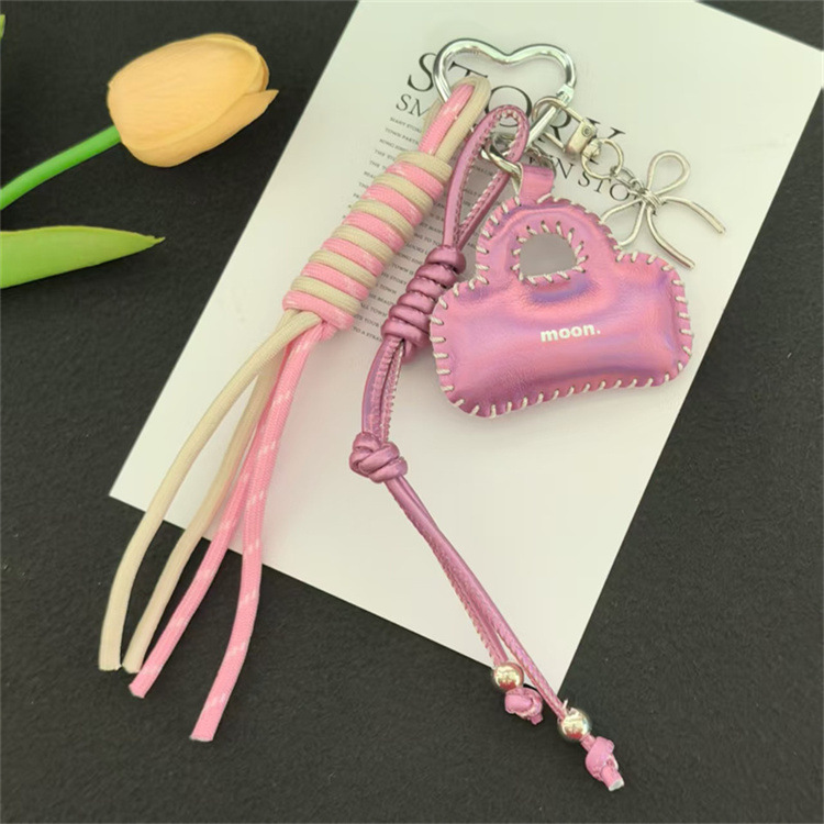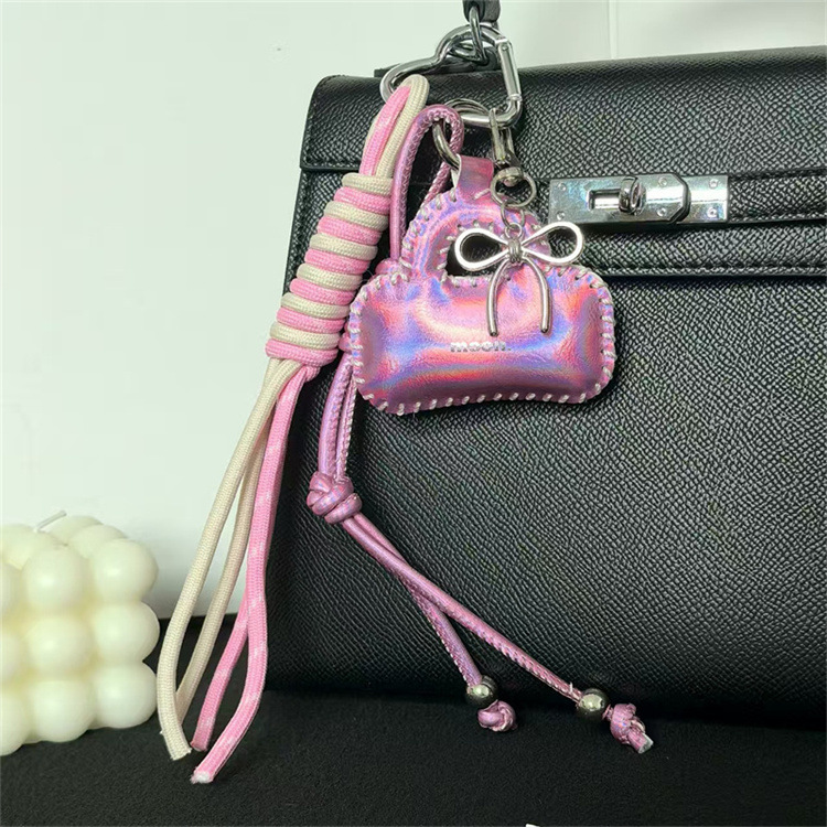亮面皮质小包车钥匙扣挂饰蝴蝶结配饰编织绳包包挂件