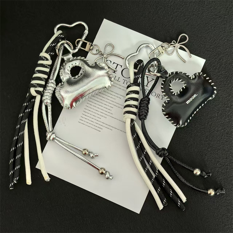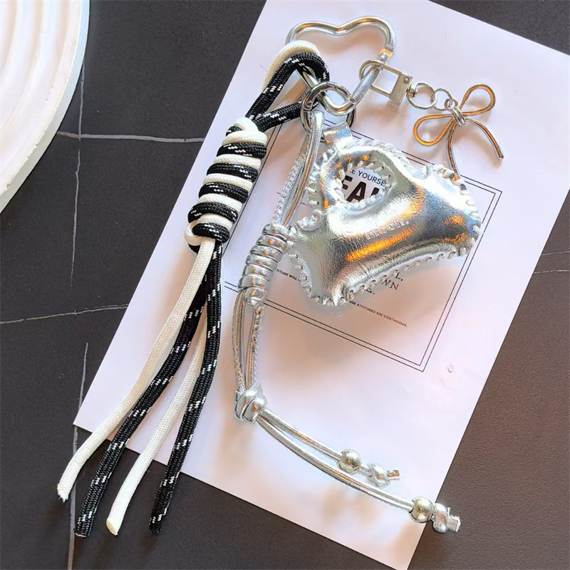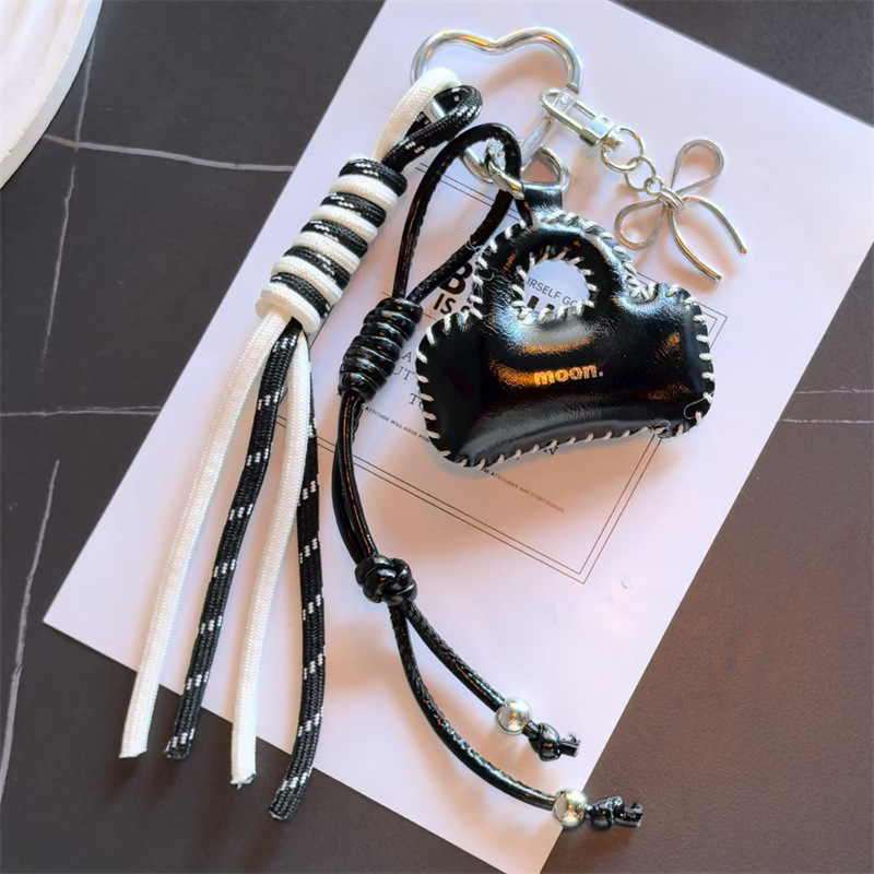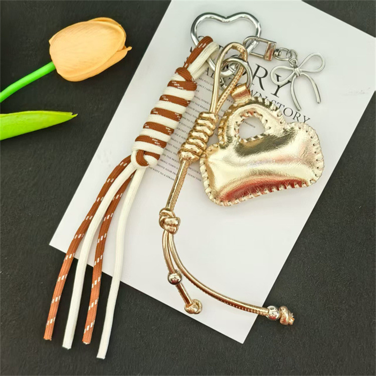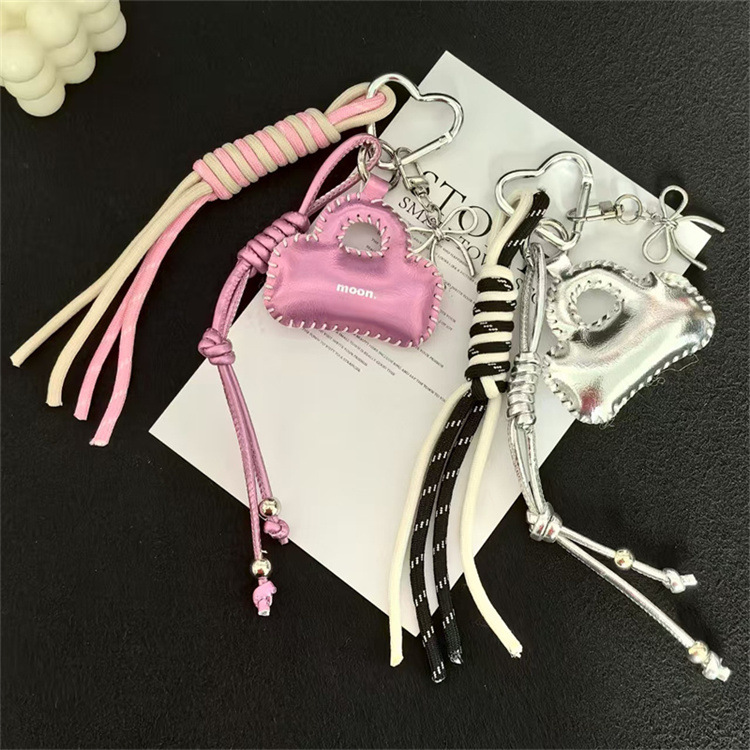 亮面皮质小包车钥匙扣挂饰蝴蝶结配饰编织绳包包挂件