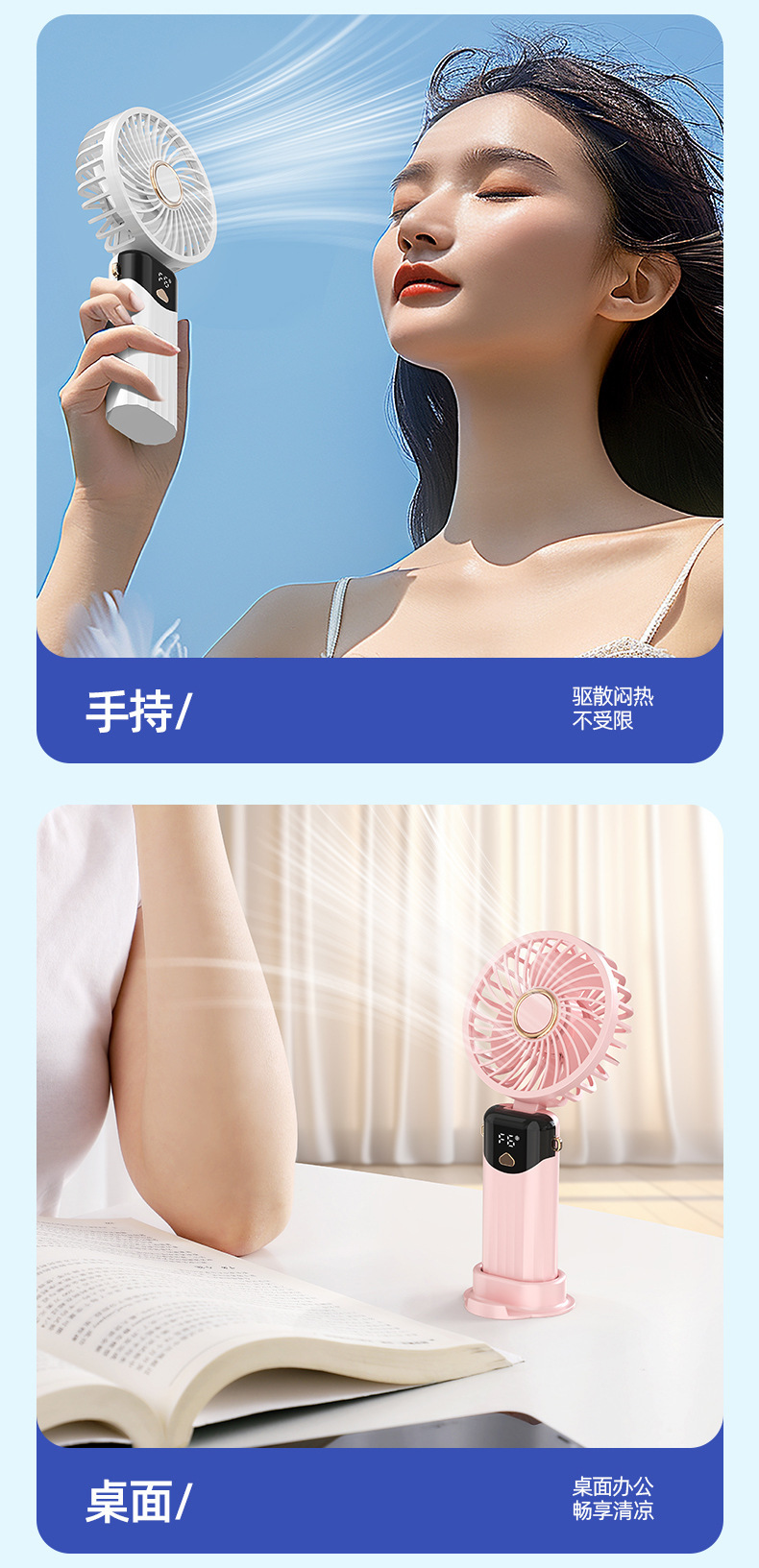 严选手持小风扇超长续航静音usb便携式充电风扇小型迷你学生户外