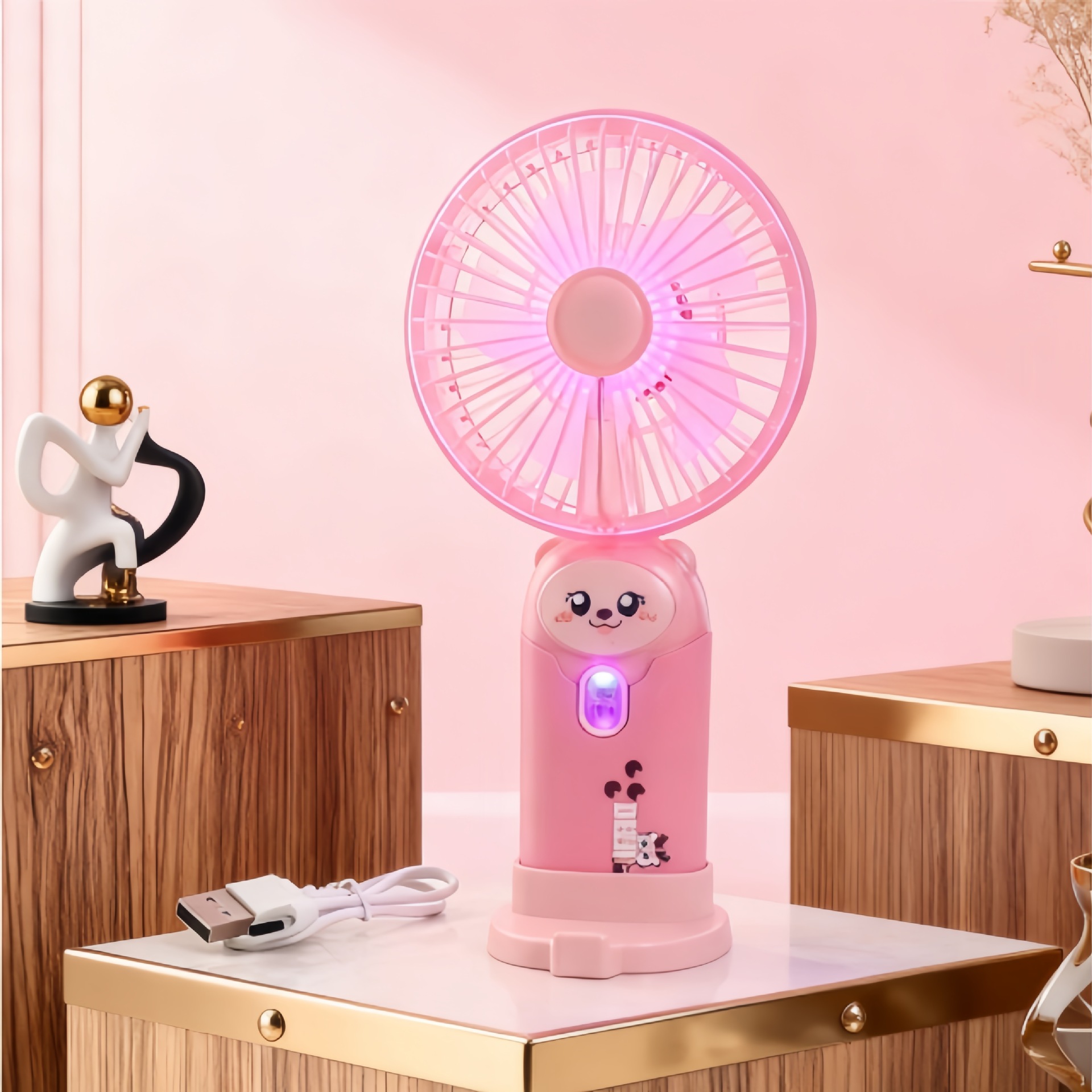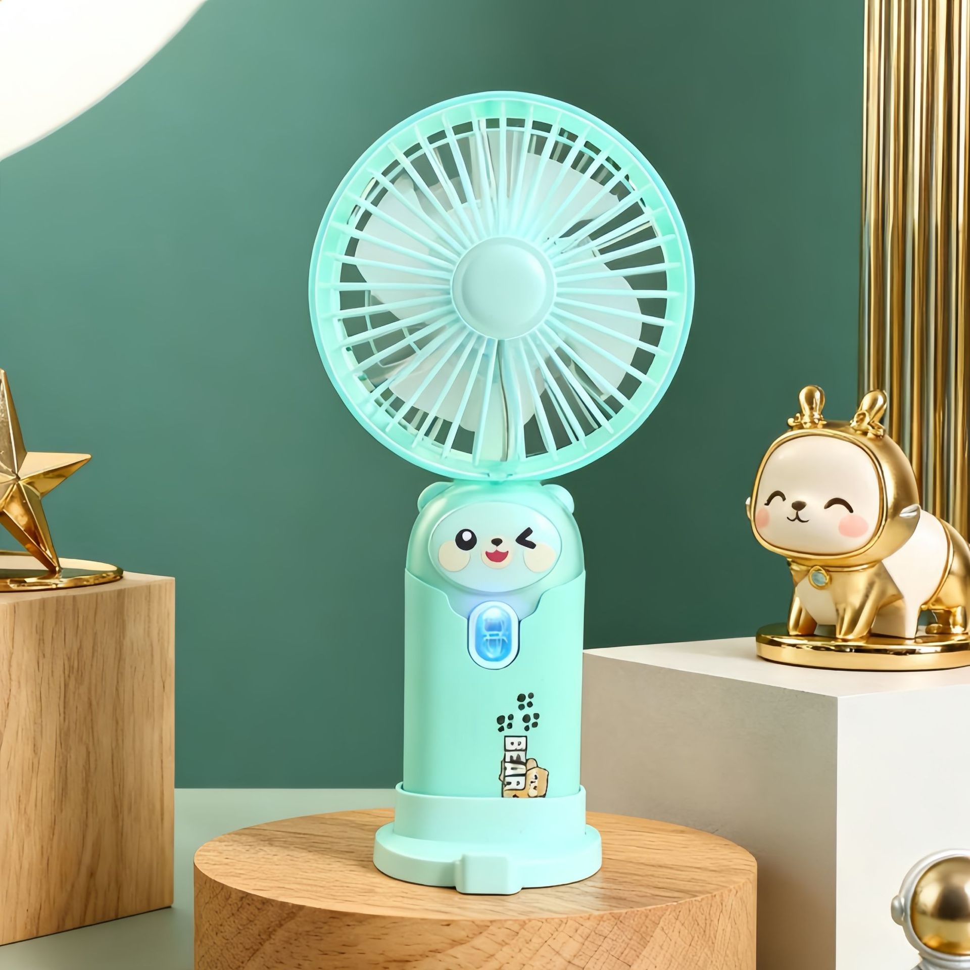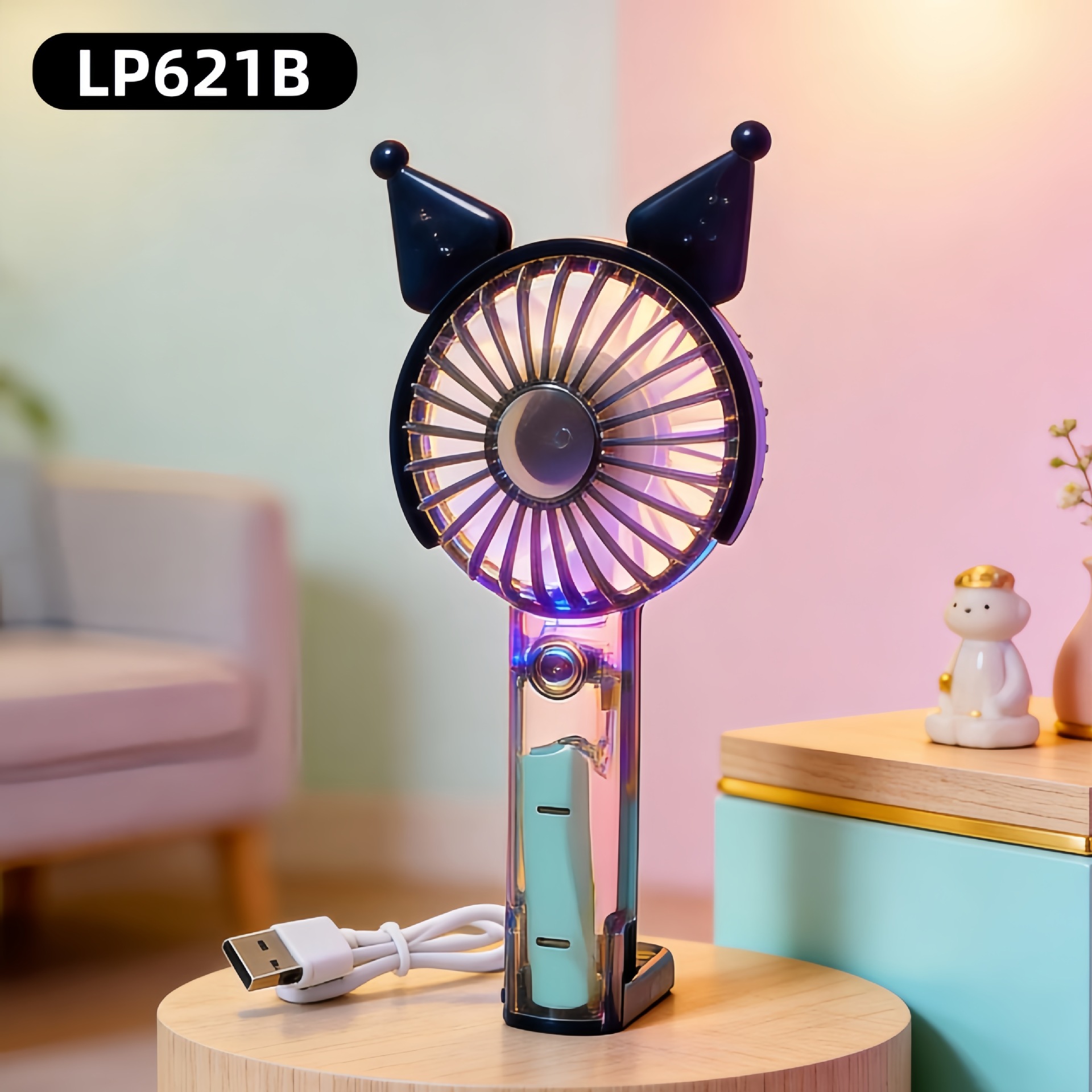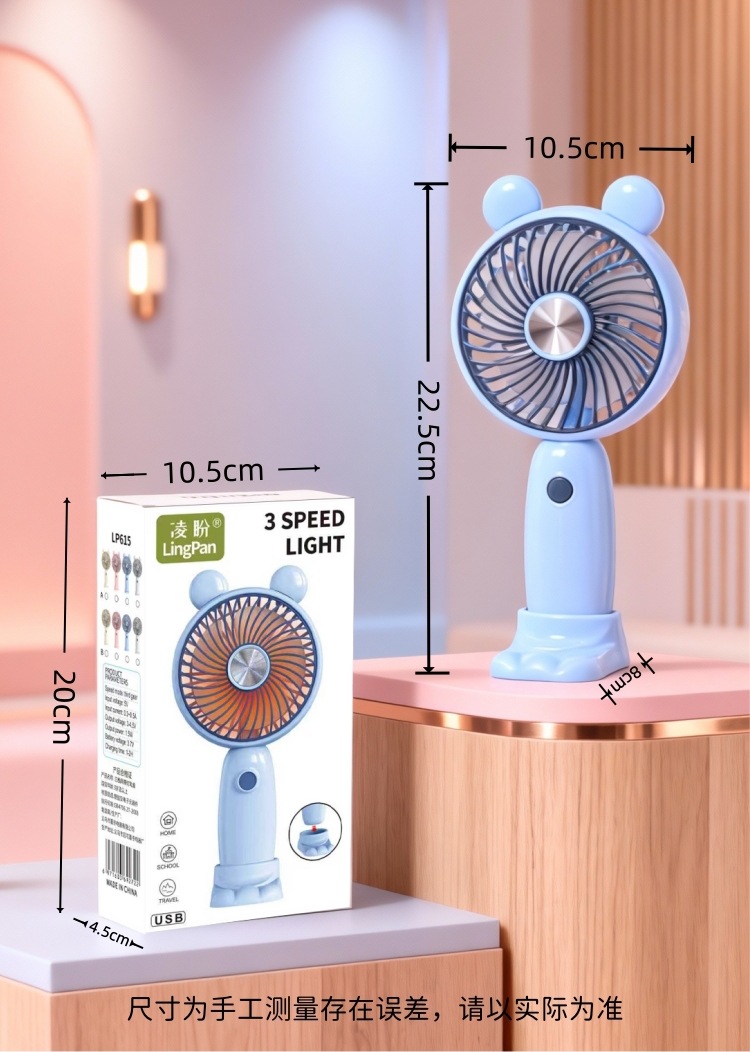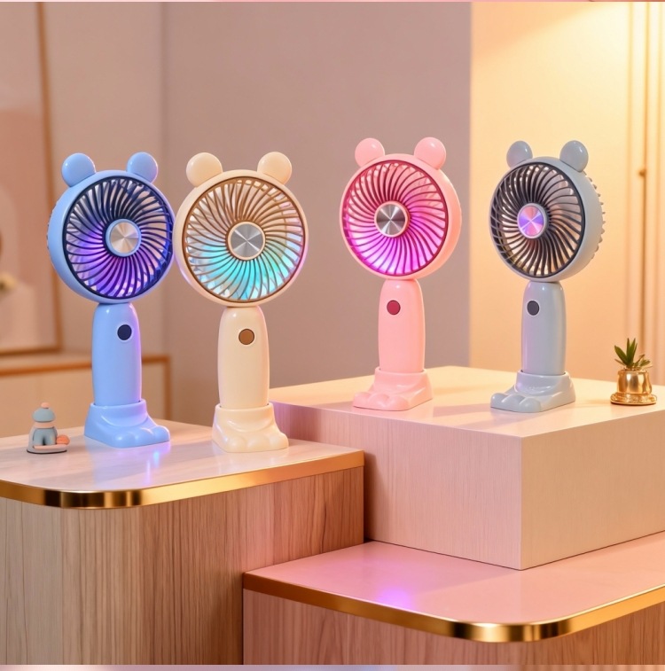学生手持卡通随身口袋便携小风扇 印花手柄卡通耳朵礼品充电风扇