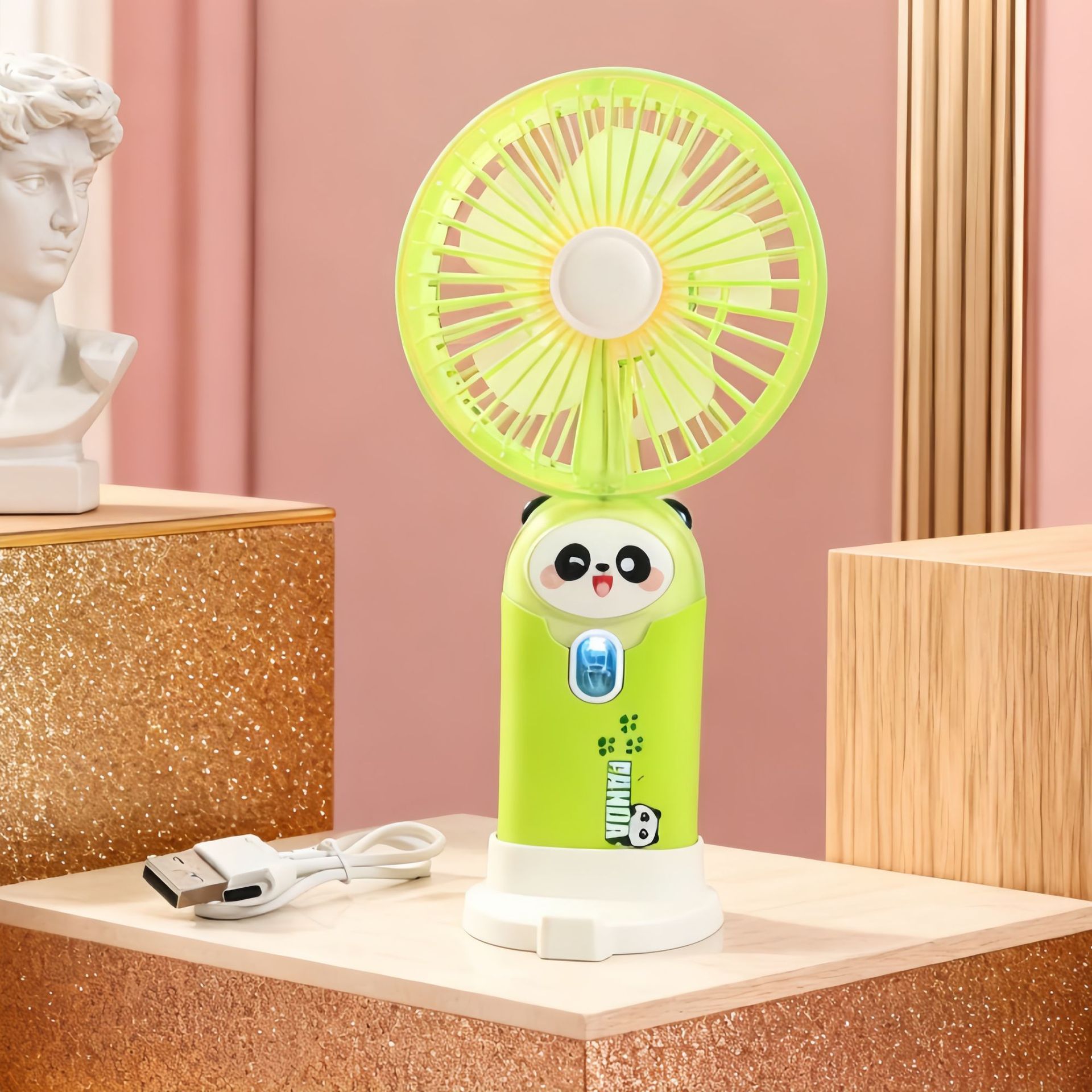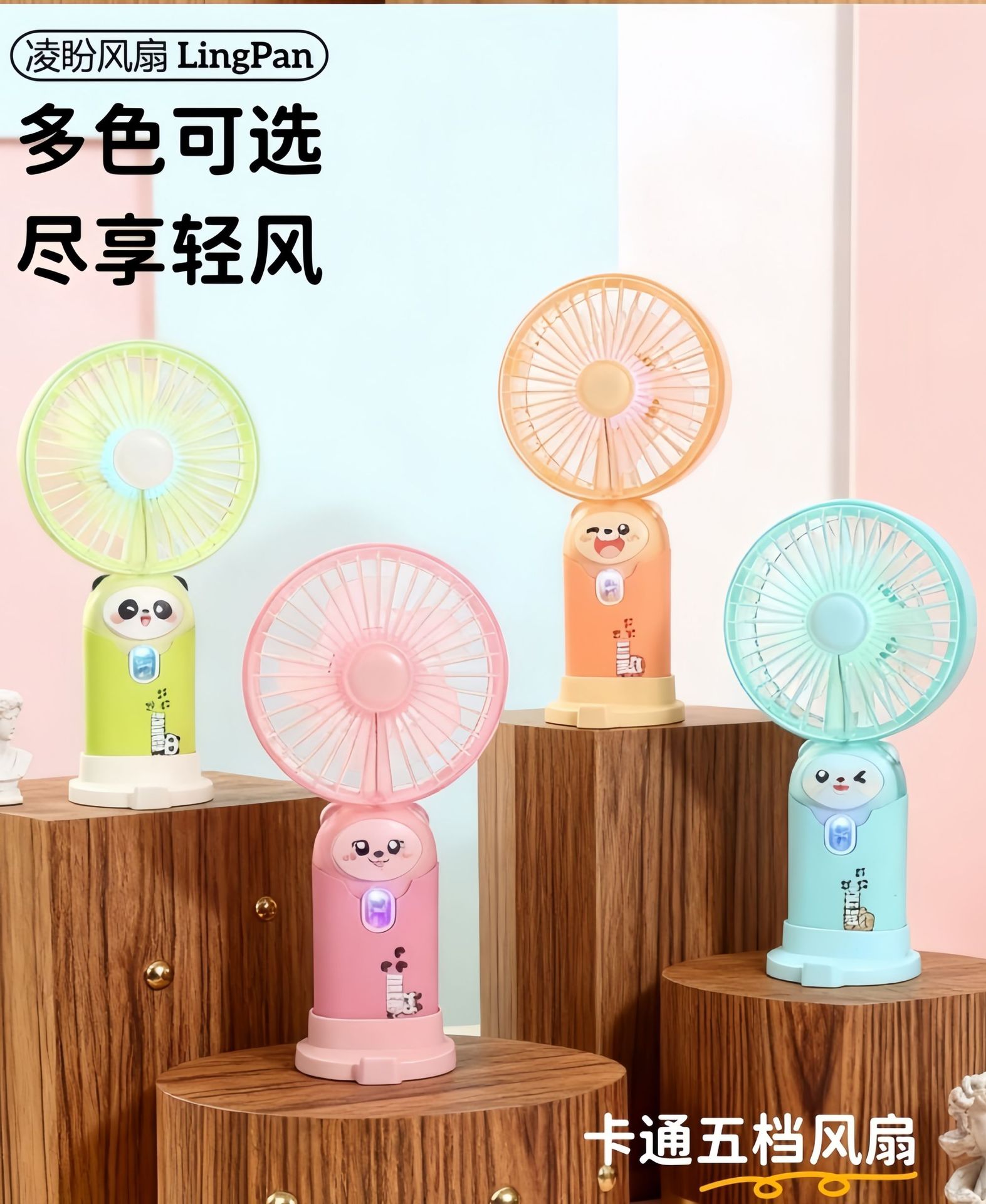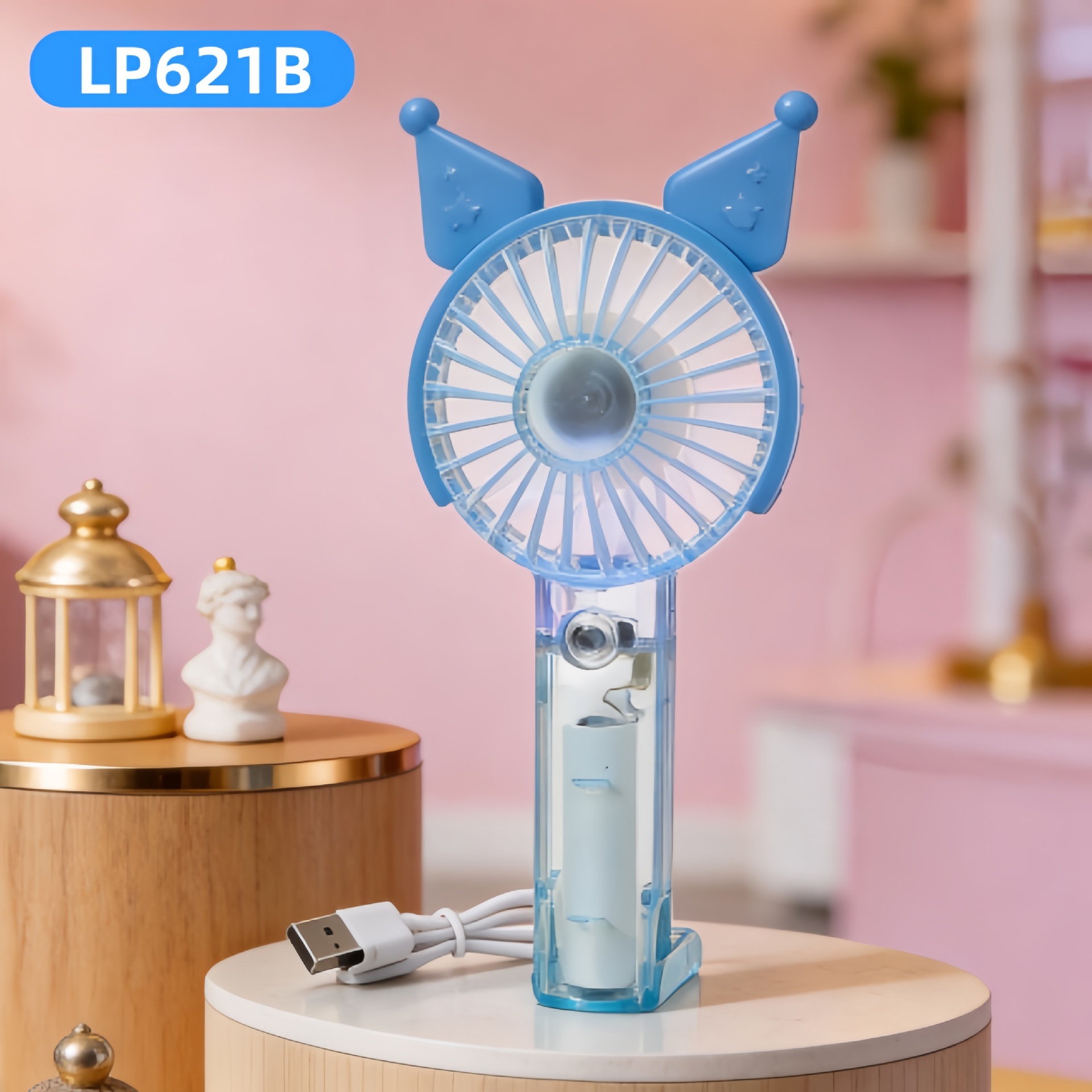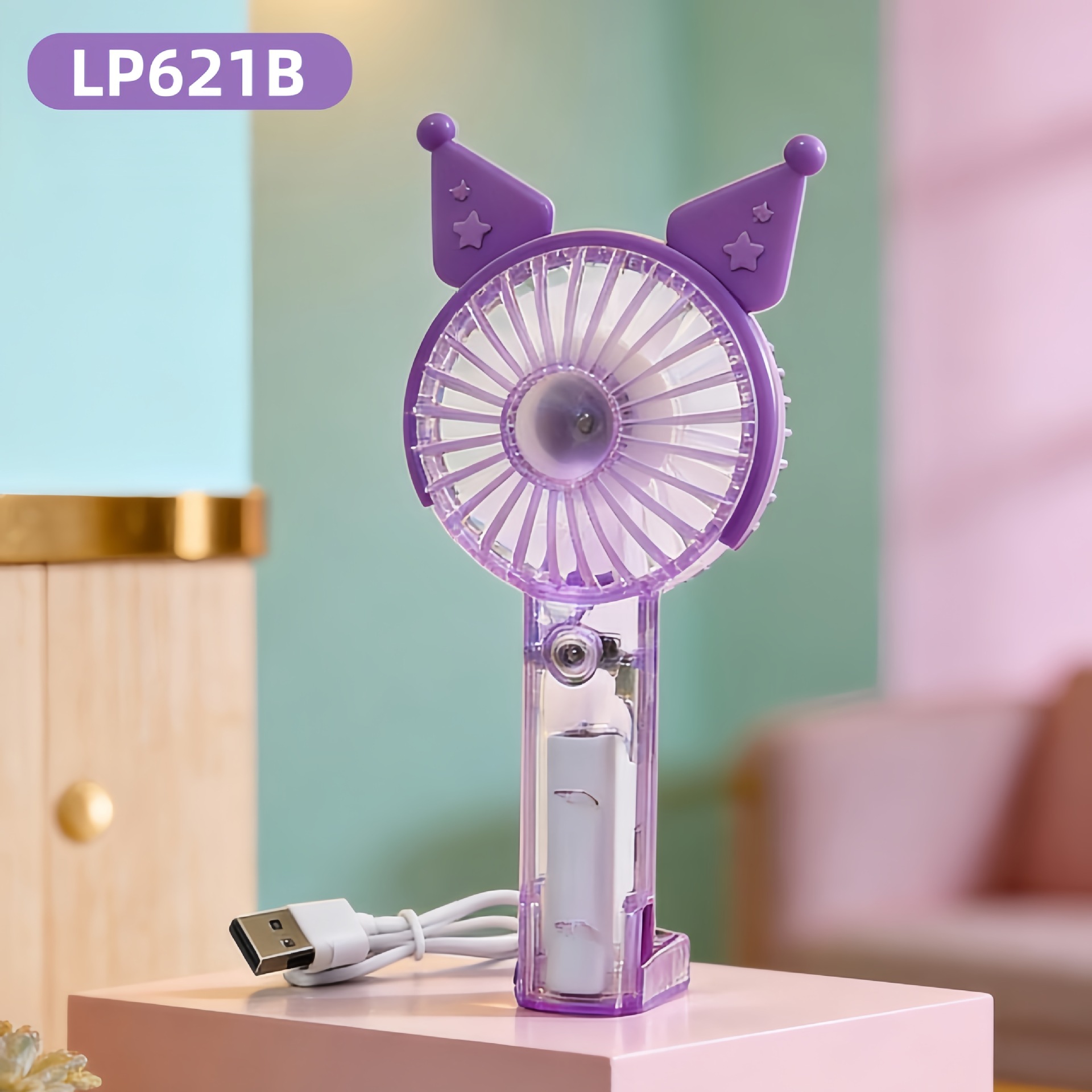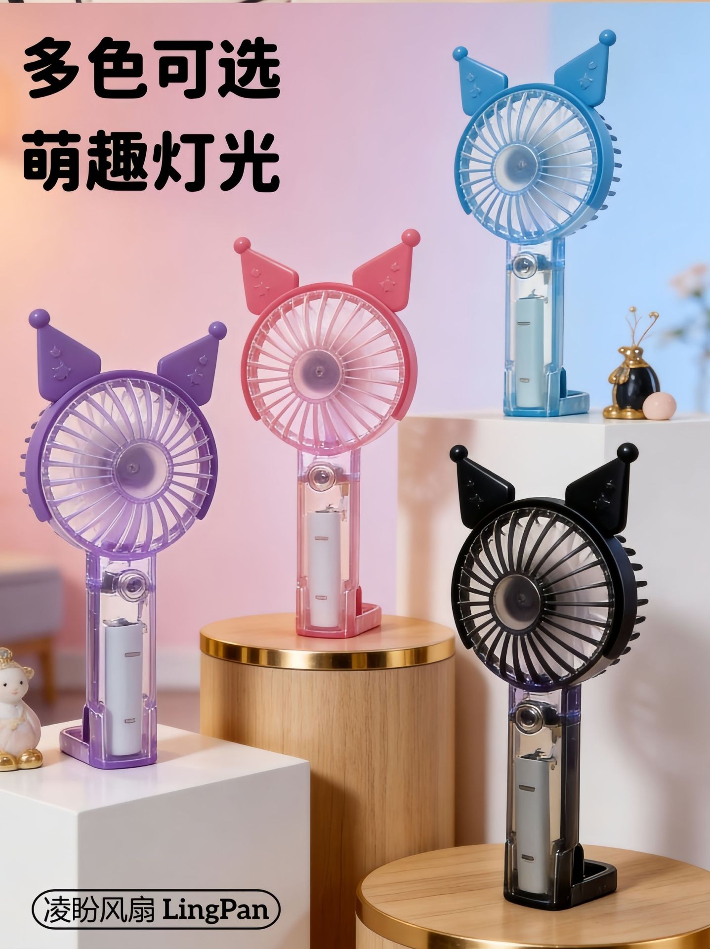 学生手持卡通随身口袋便携小风扇 印花手柄卡通耳朵礼品充电风扇