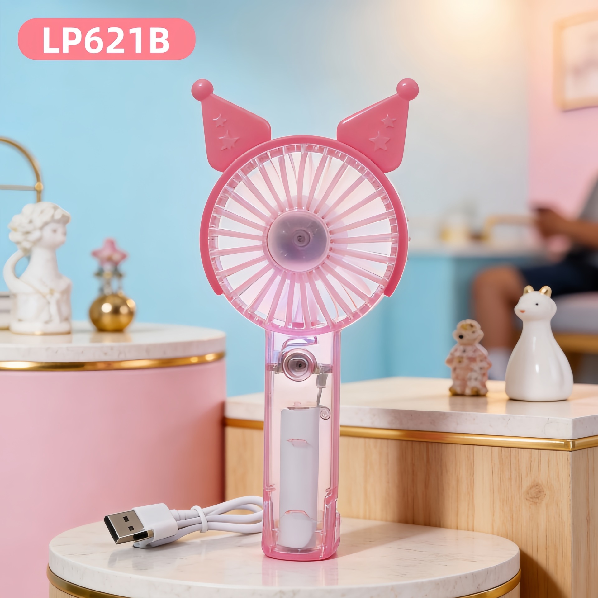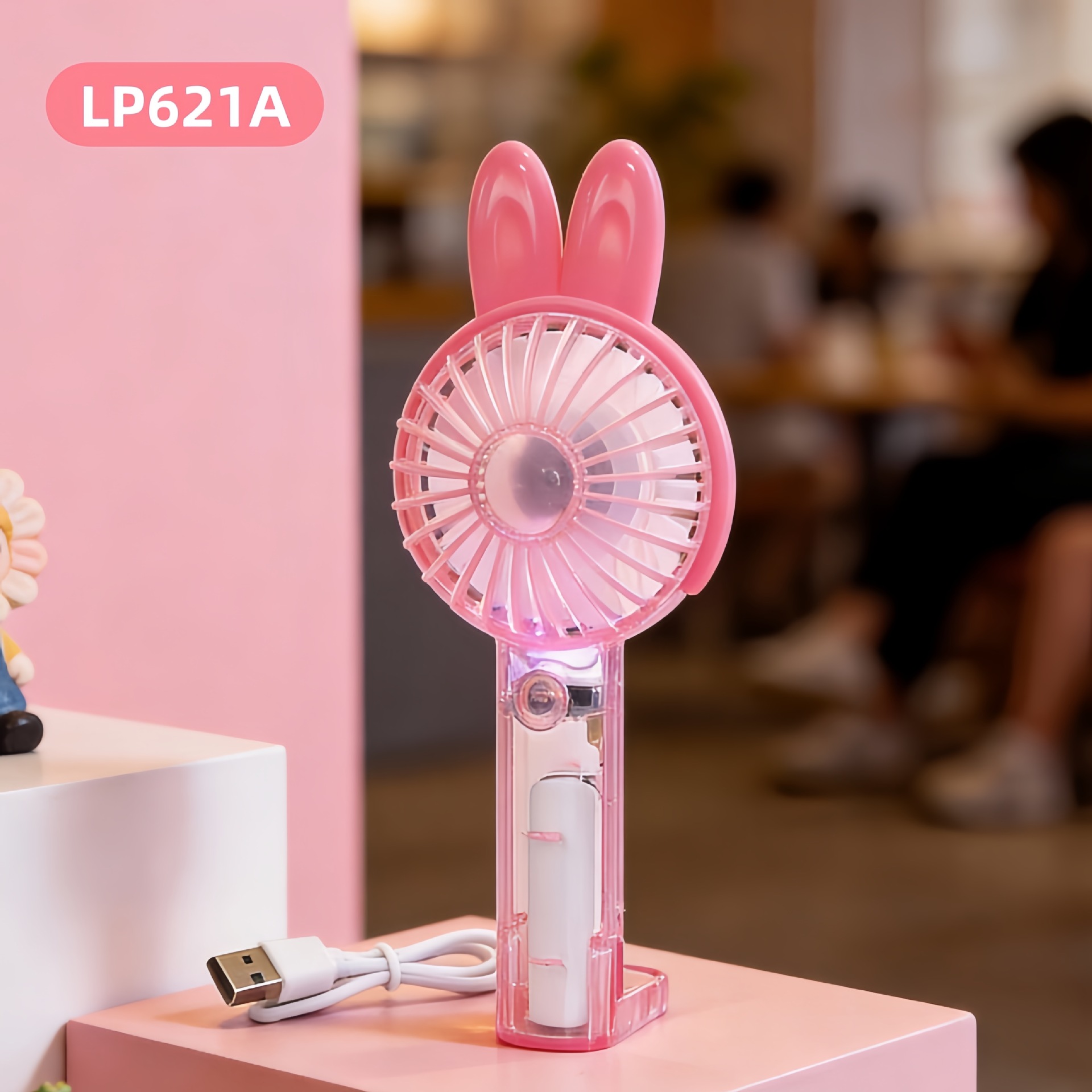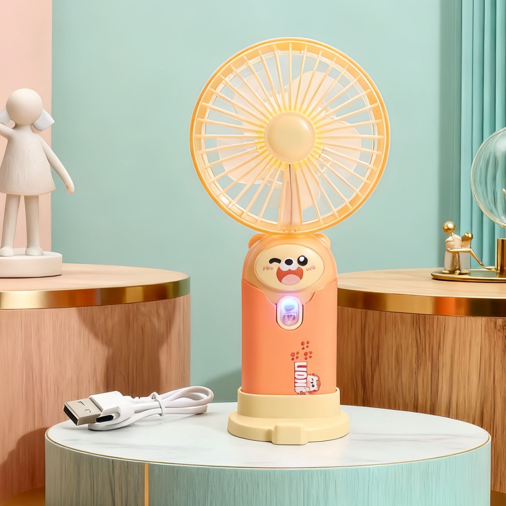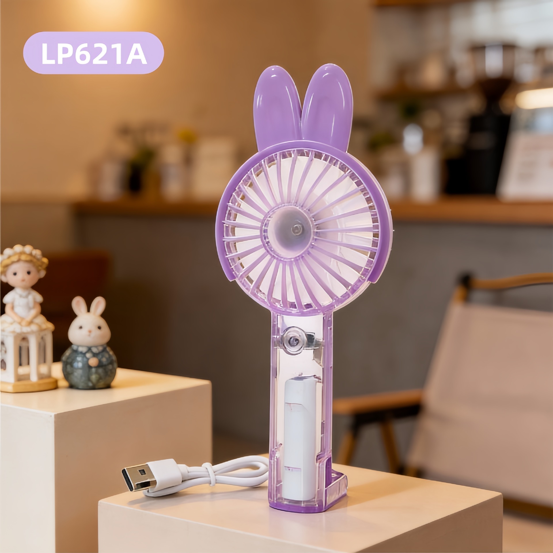 学生手持卡通随身口袋便携小风扇 印花手柄卡通耳朵礼品充电风扇