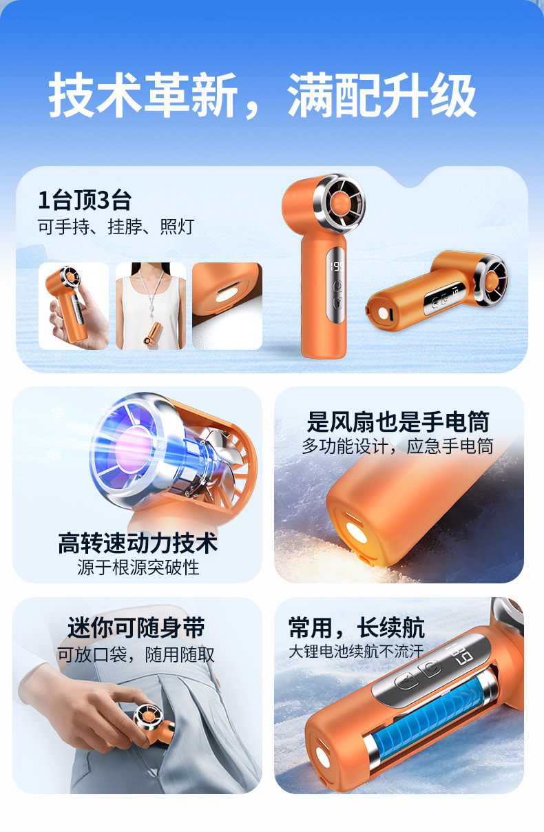 2026跨境爆款高速制冷冰敷风扇充电数显迷你便携usb手持小风扇