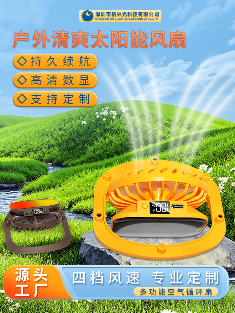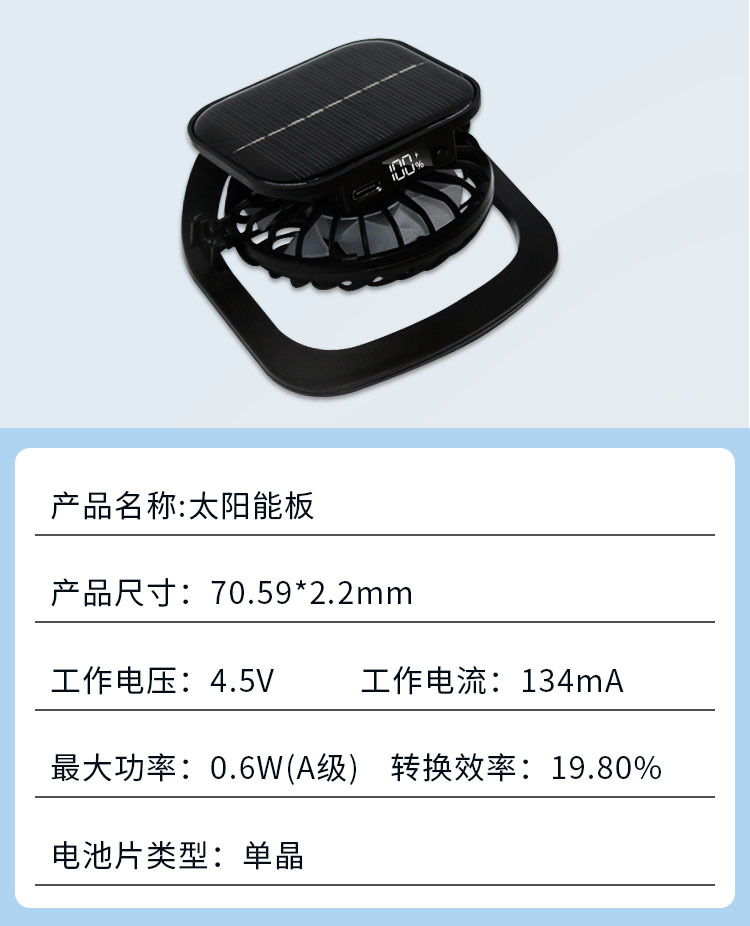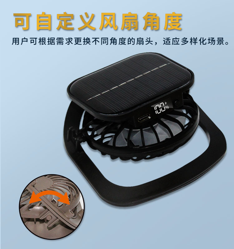 26年新款太阳能充电风扇太阳能数显风扇USB充电风扇太阳能小风扇