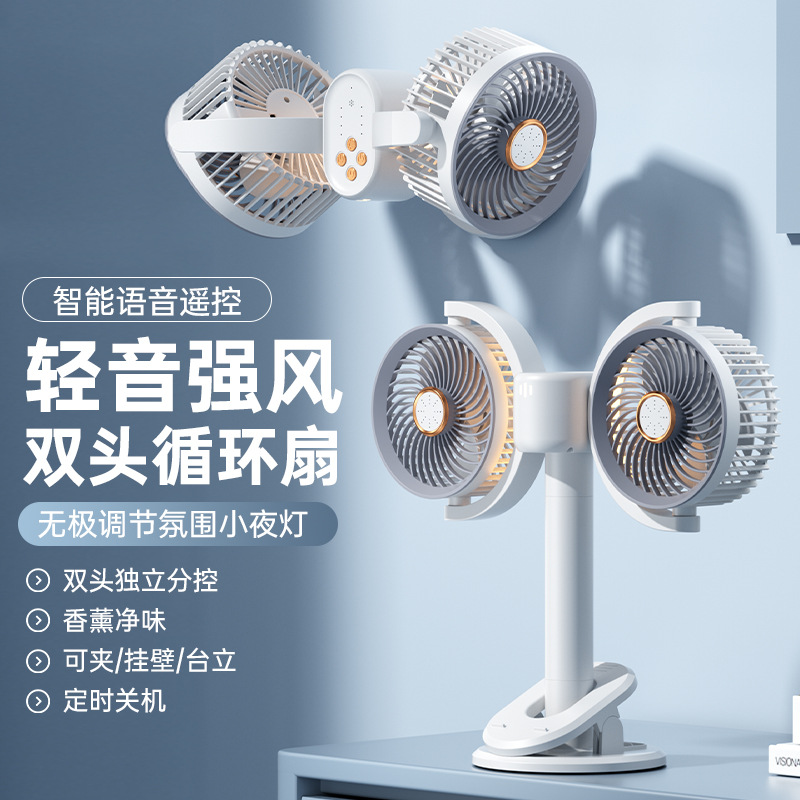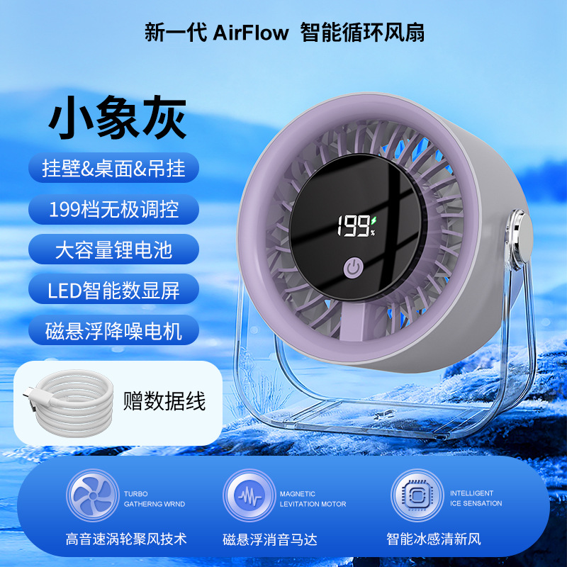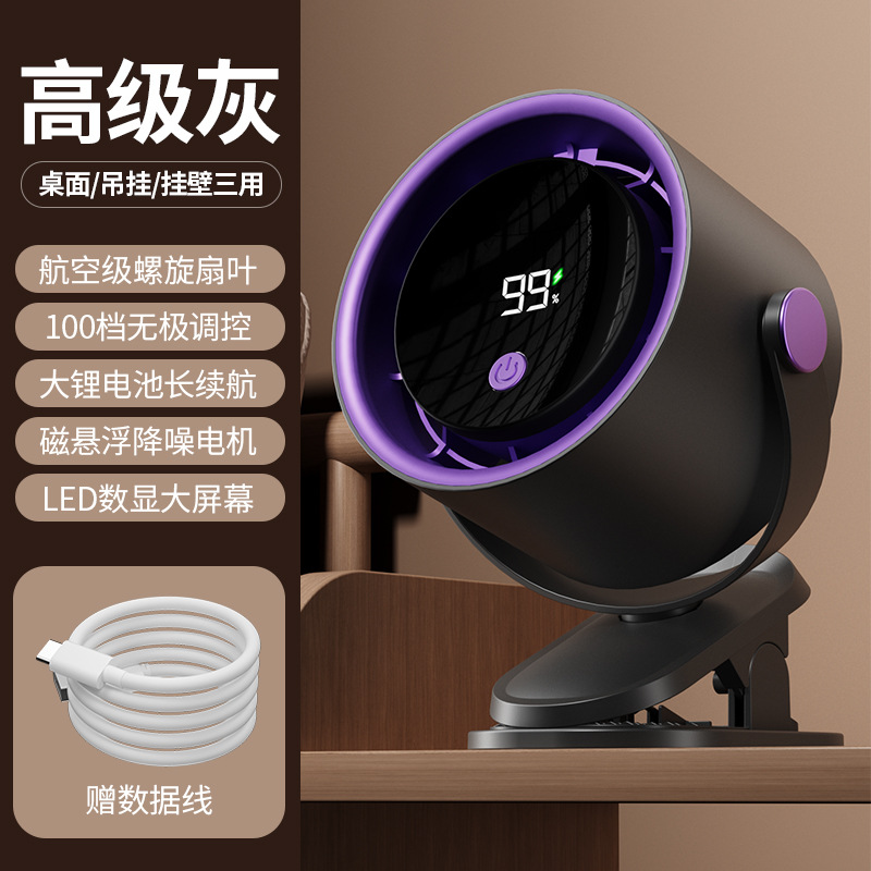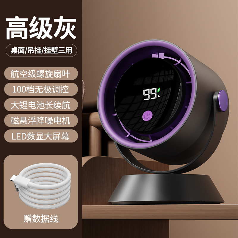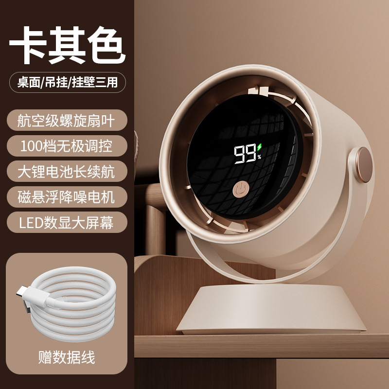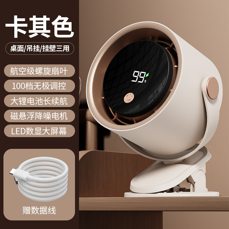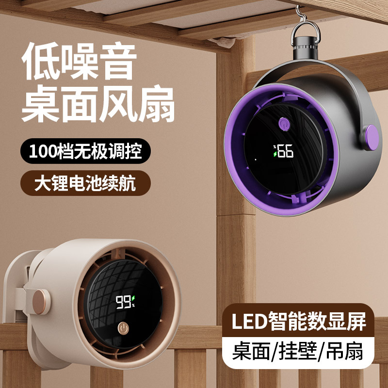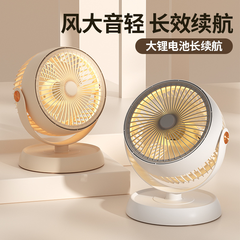 新款桌面风扇宿舍挂壁照明夜灯电风扇充电桌面台式循环扇数显制冷