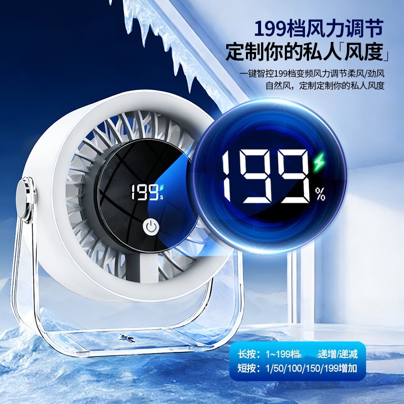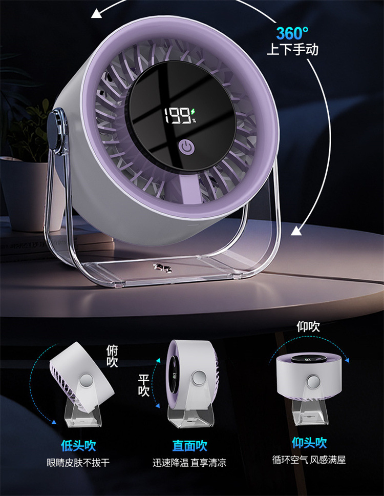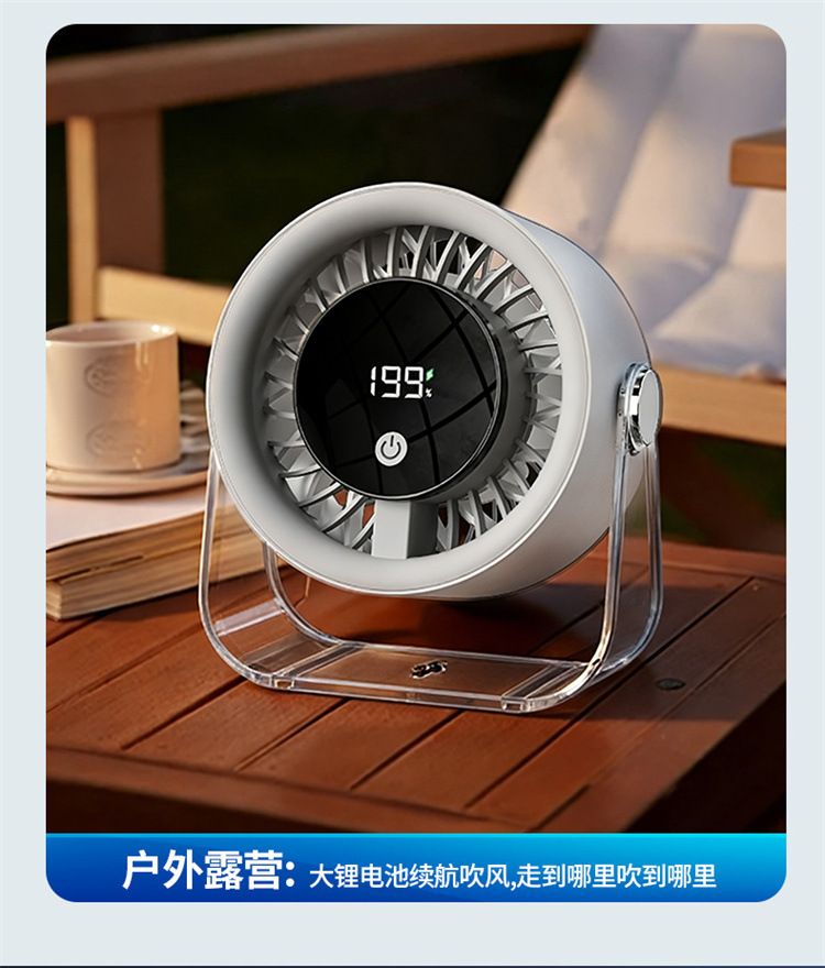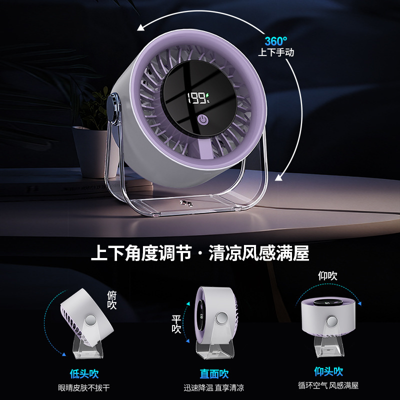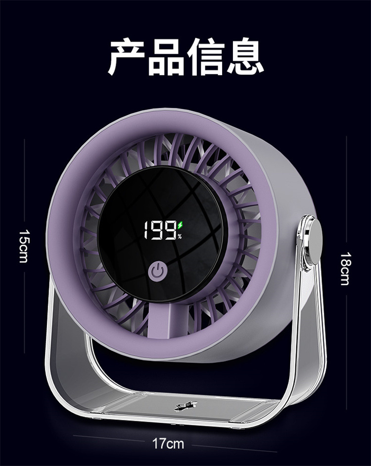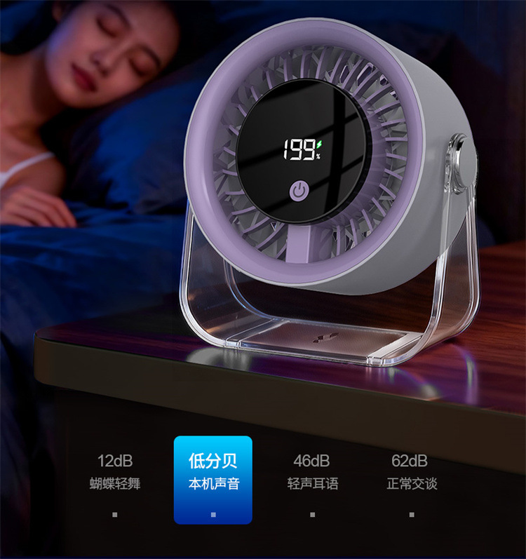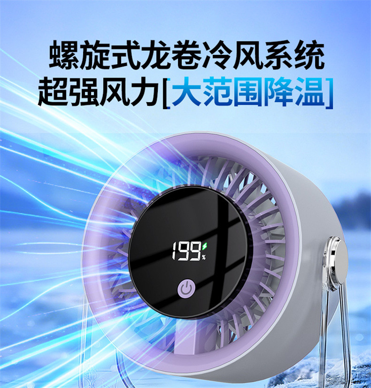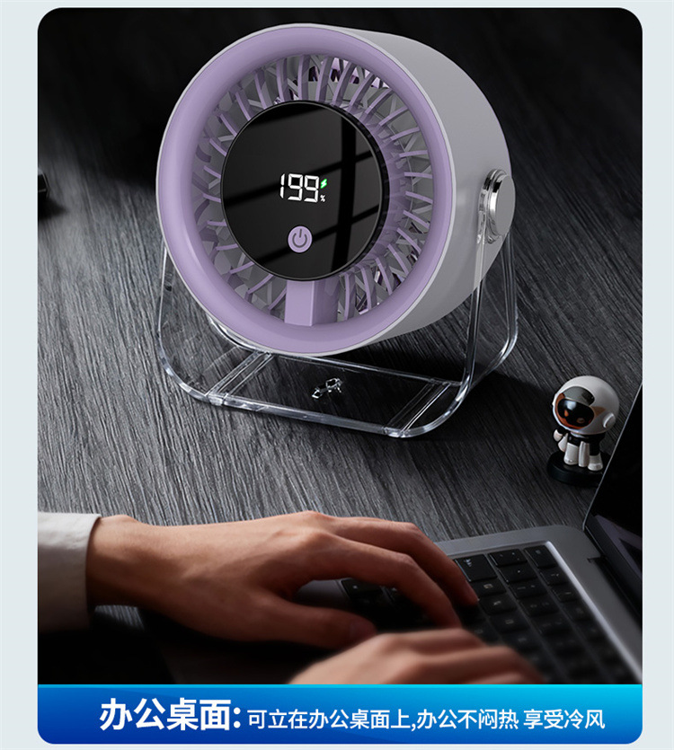 跨境桌面台式小风扇USB充电数显风扇办公室挂壁无线小型循环风扇