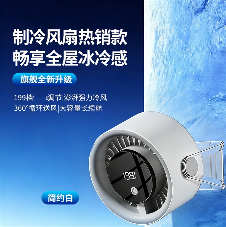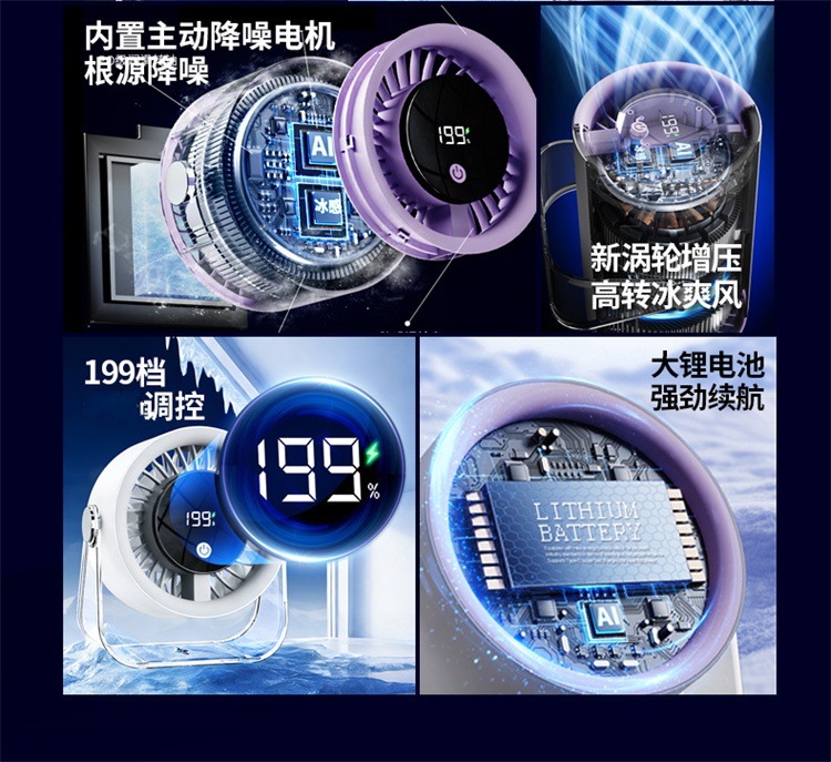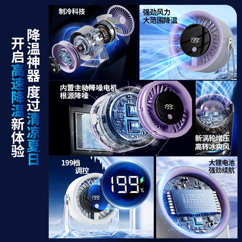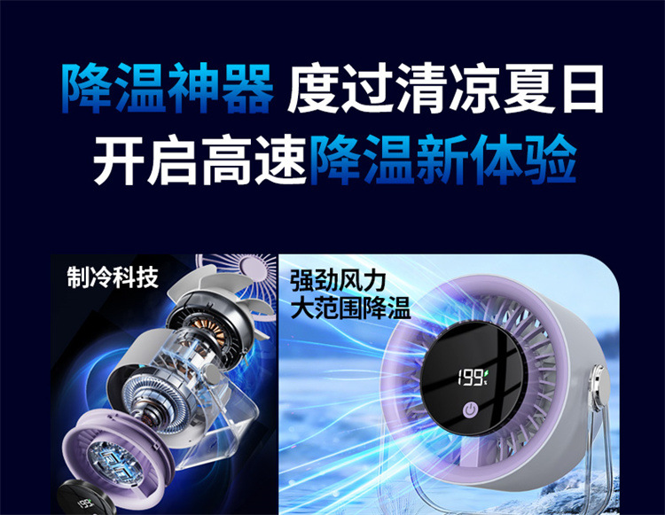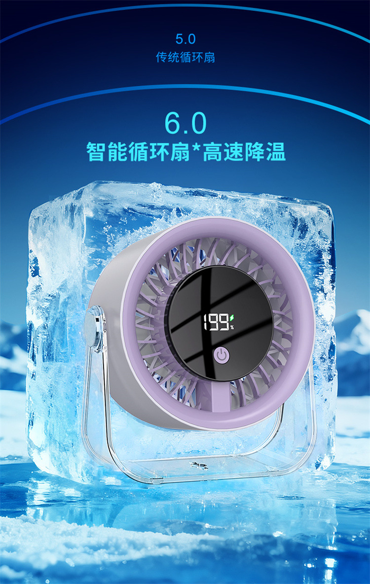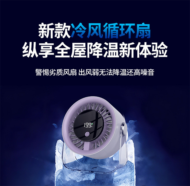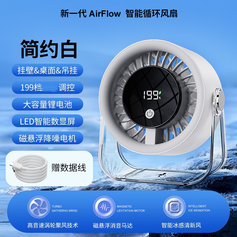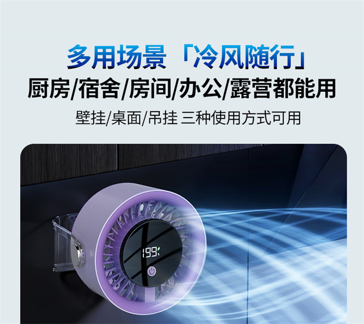 跨境桌面台式小风扇USB充电数显风扇办公室挂壁无线小型循环风扇