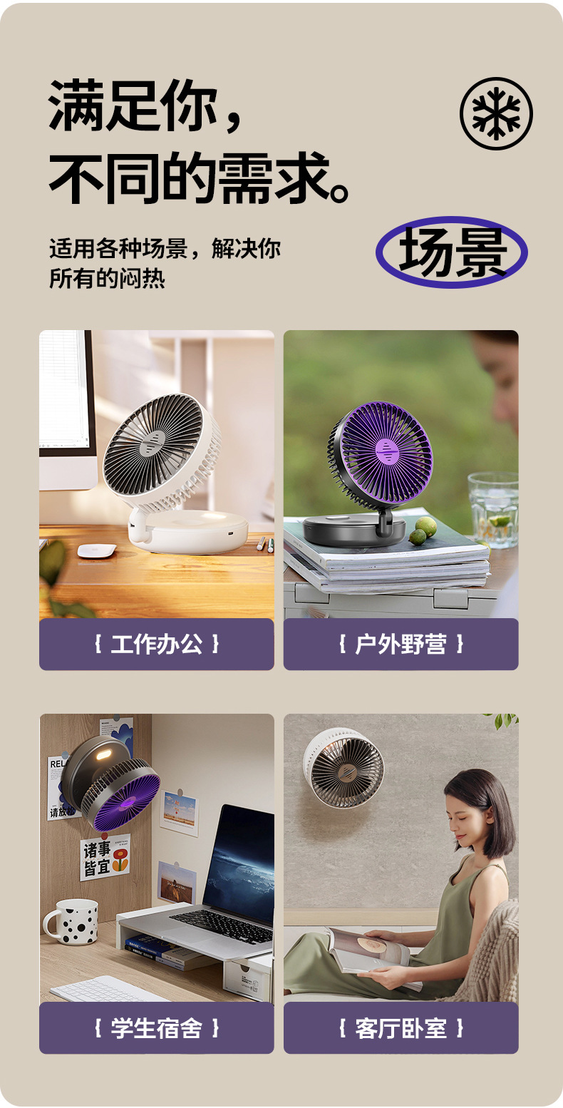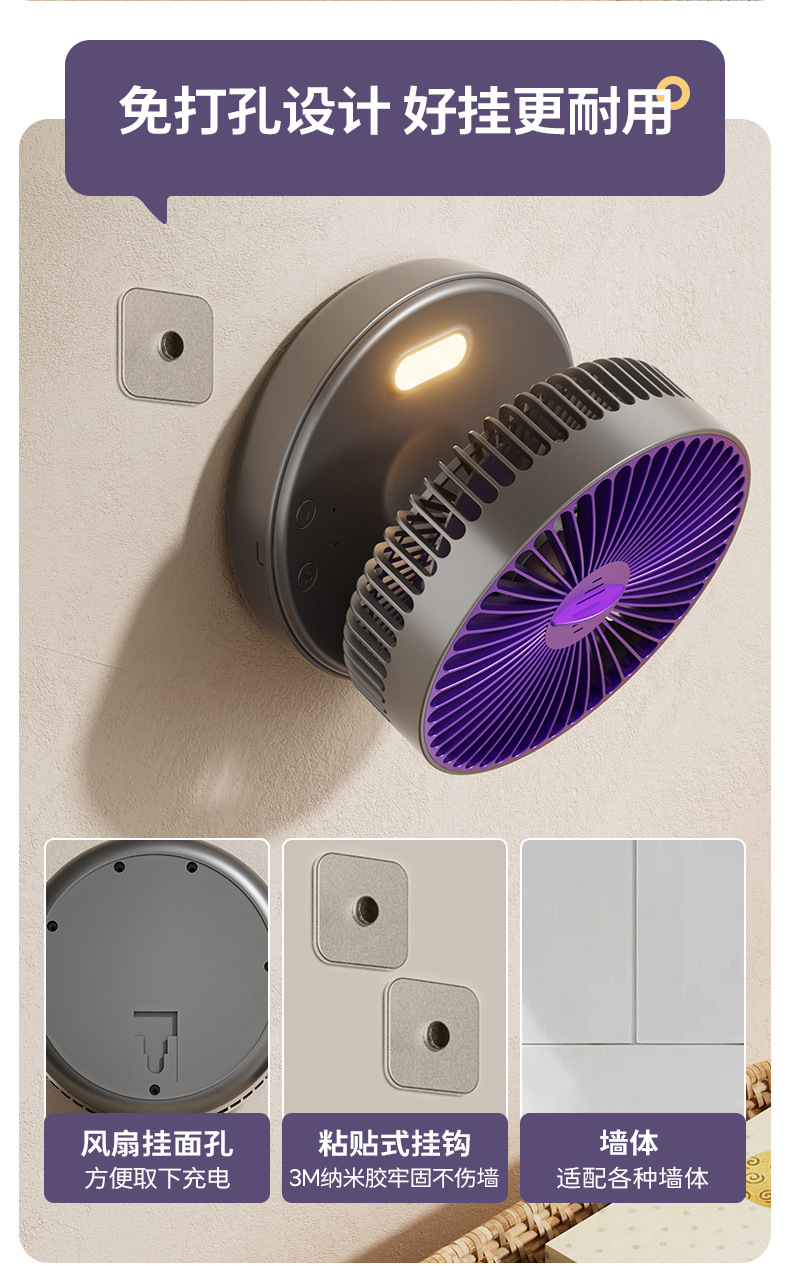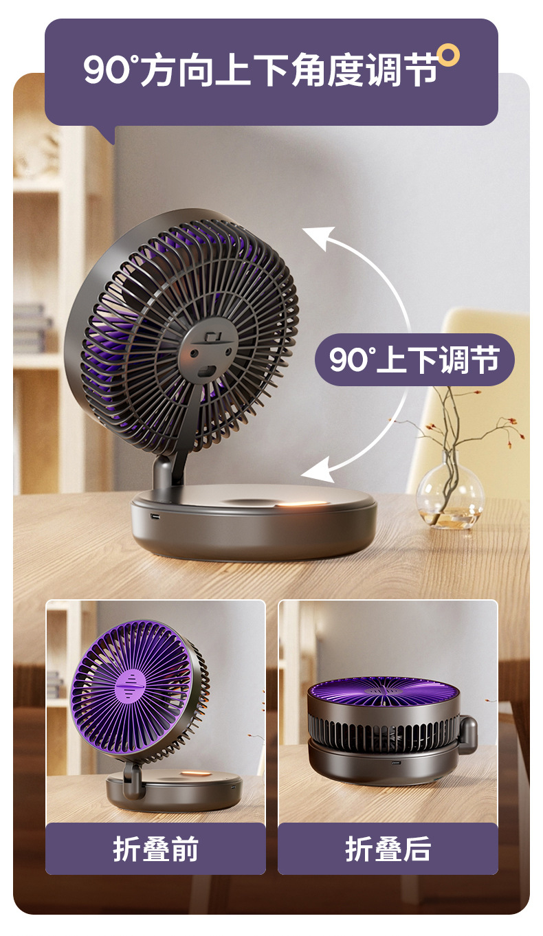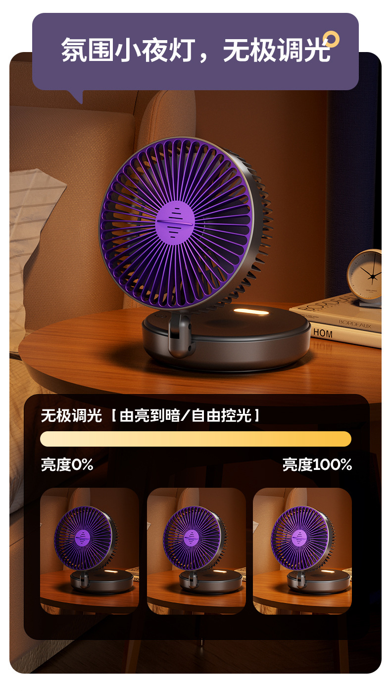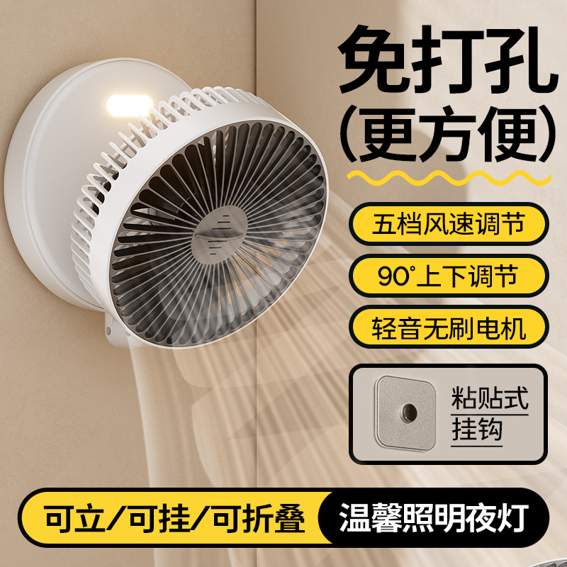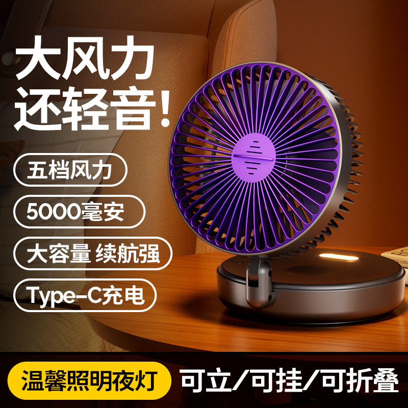 5000毫安折叠夜光风扇挂壁便携静音大风循环扇学生办公室桌面风扇