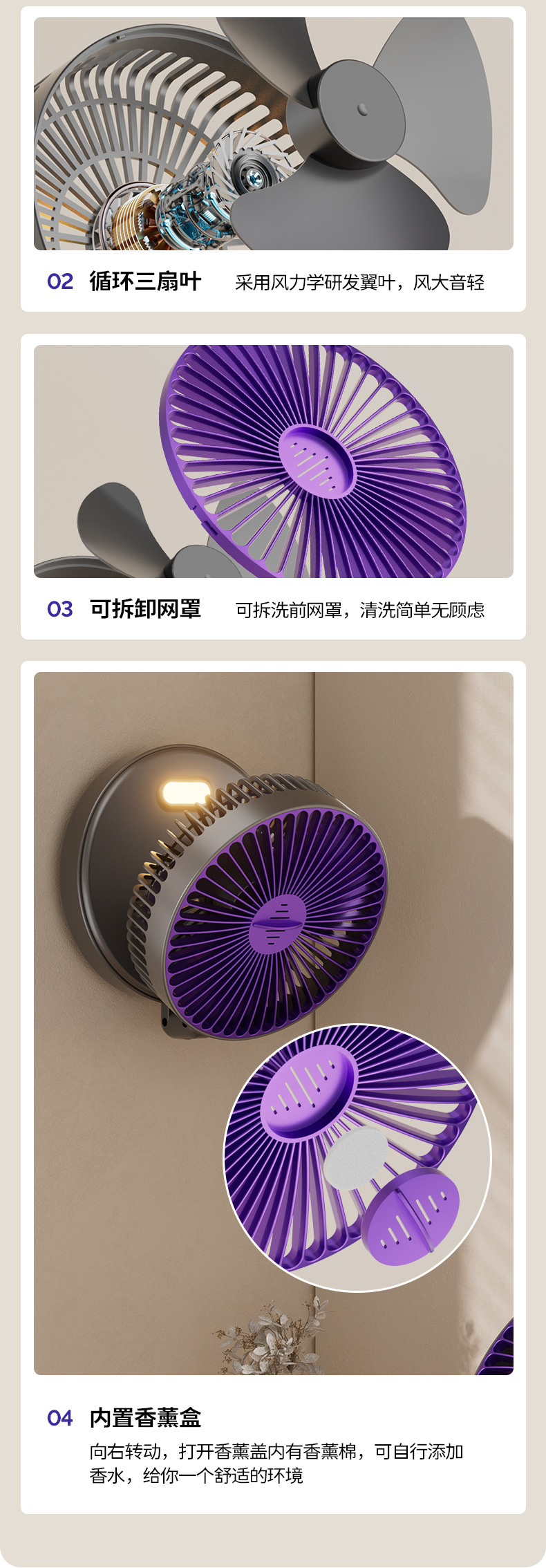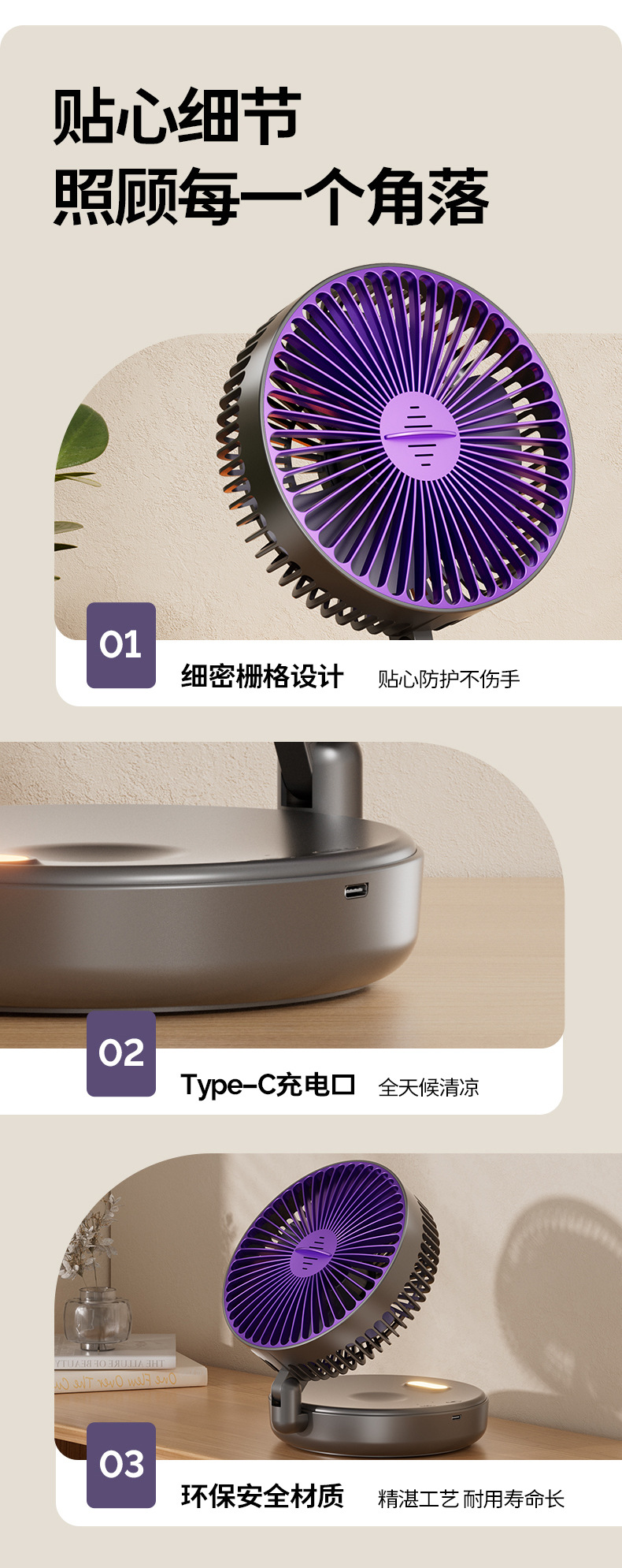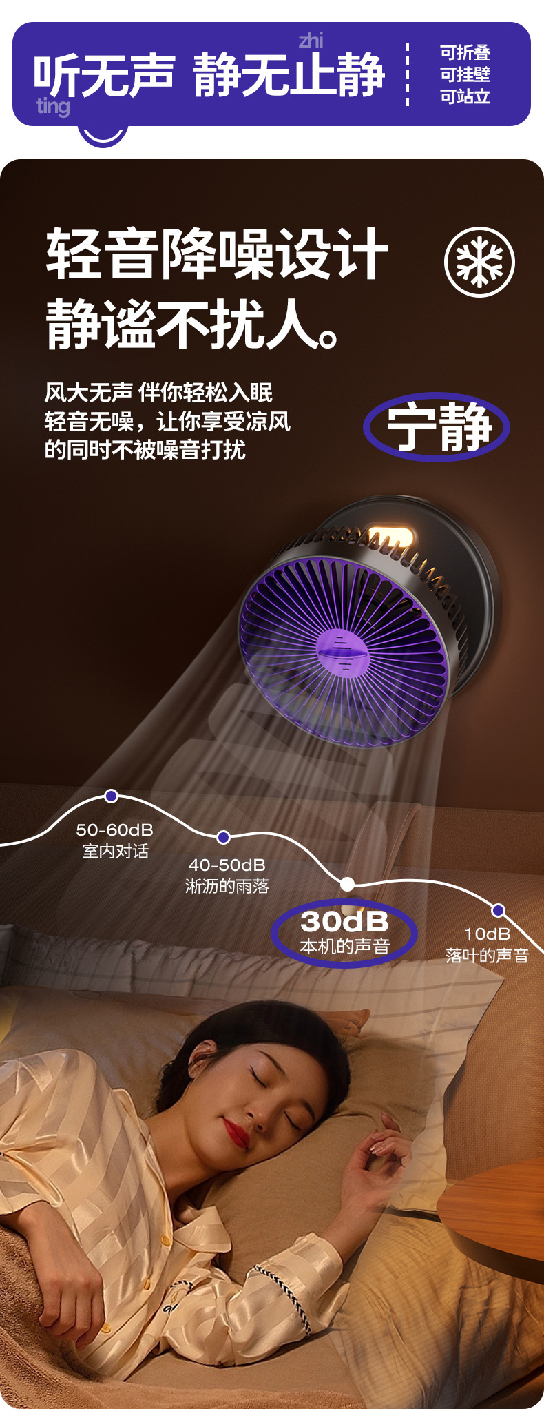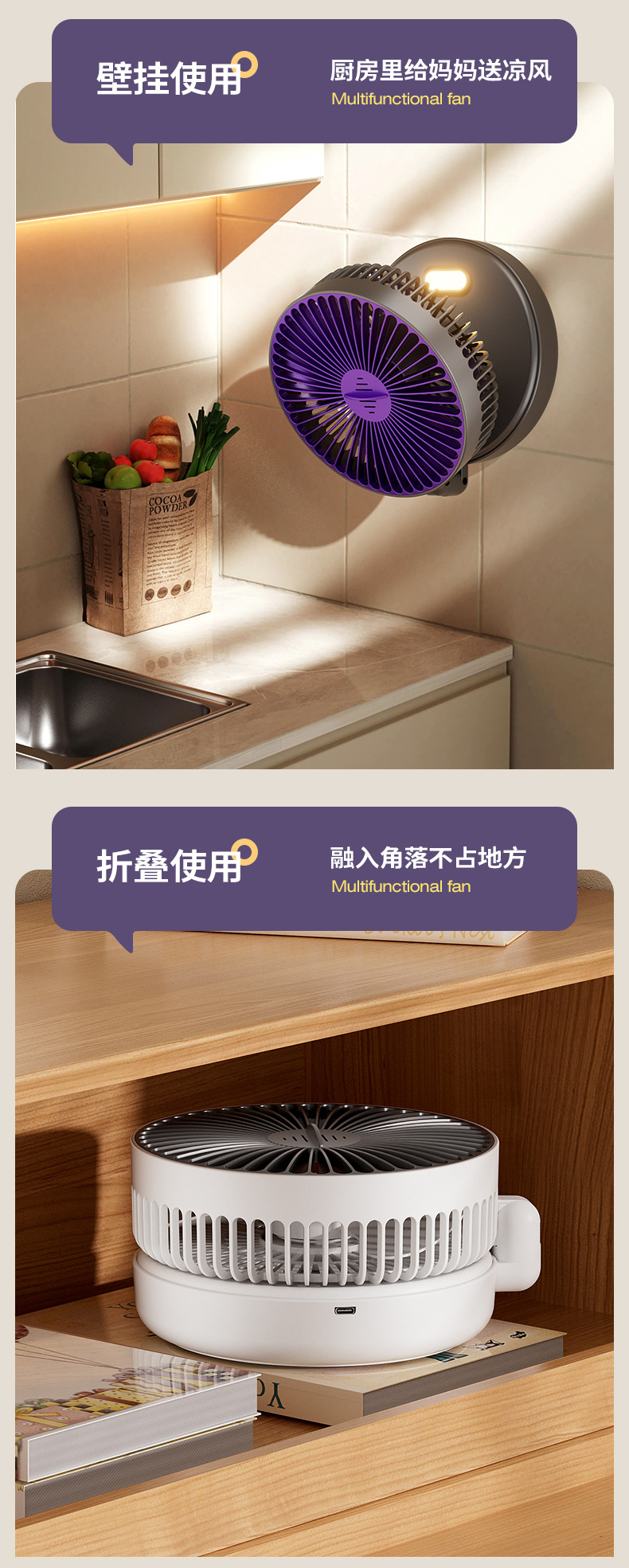 5000毫安折叠夜光风扇挂壁便携静音大风循环扇学生办公室桌面风扇
