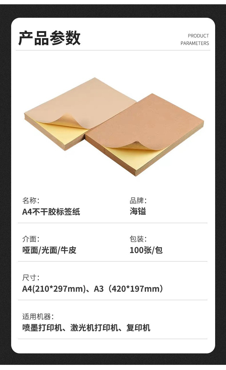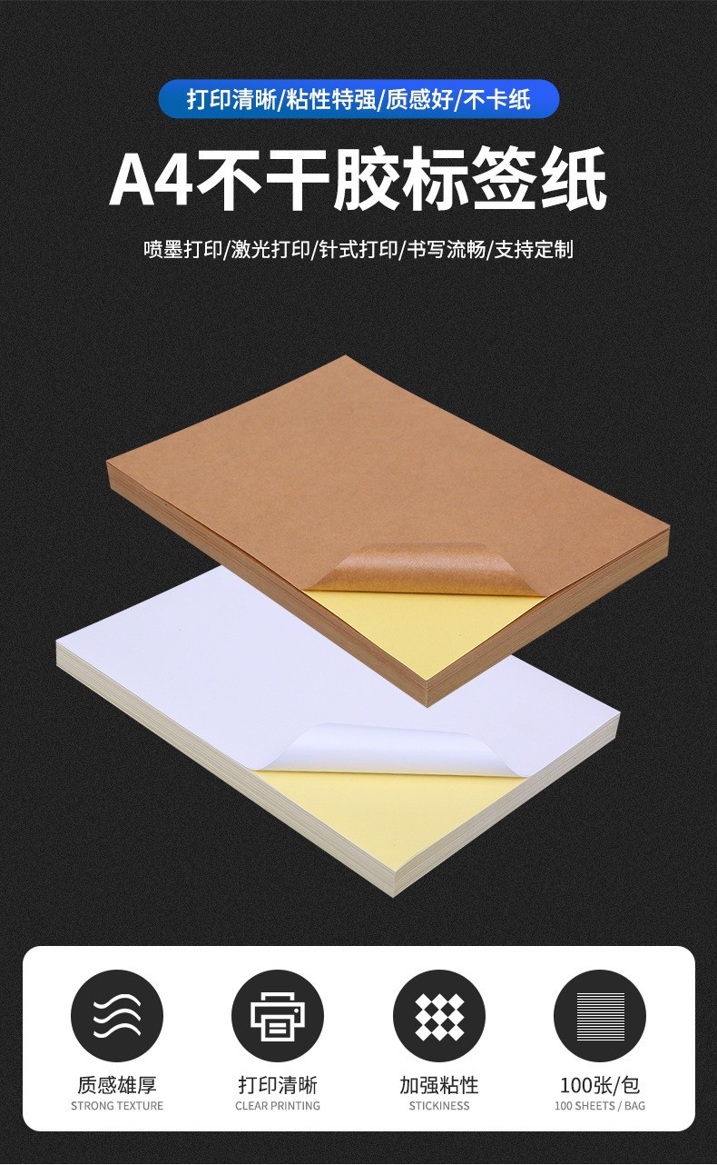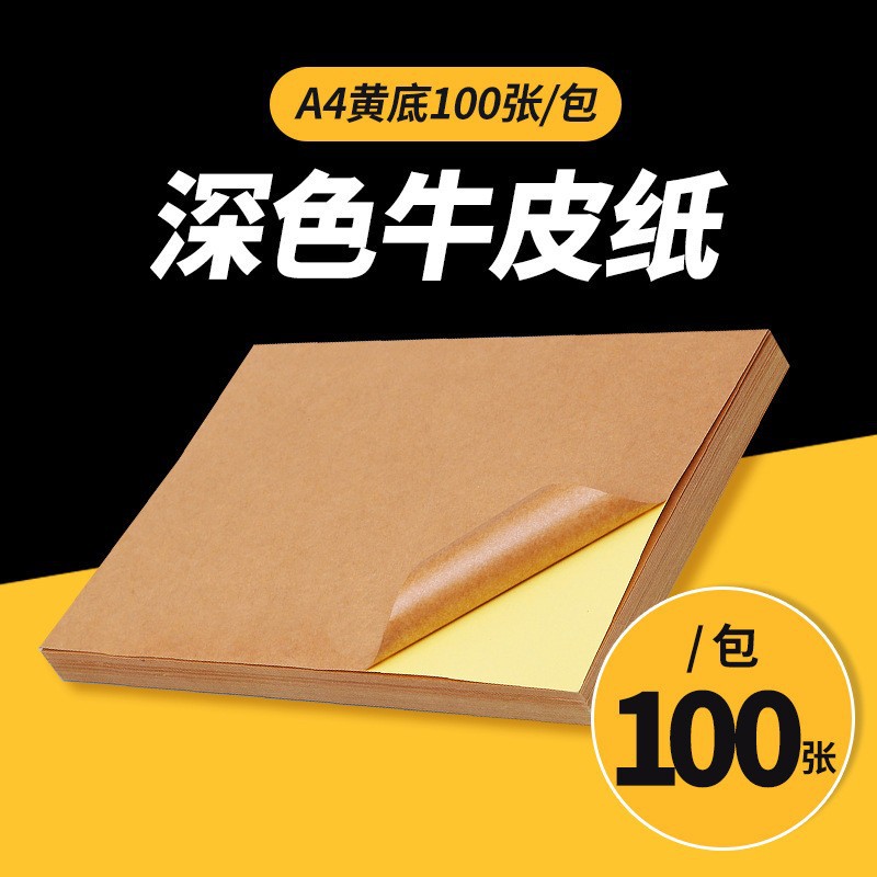 A4深色牛皮纸标签打印纸不干胶贴纸哑面背胶强粘不干胶打印纸批发