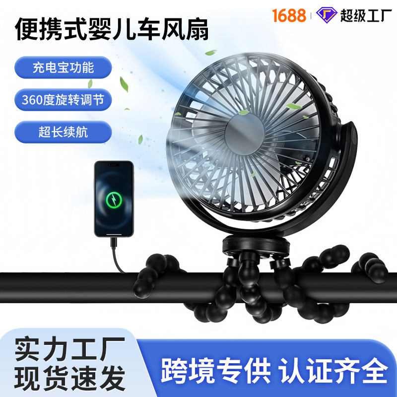 跨境八爪鱼风扇便携式 静音手持小风扇usb充电户外迷你婴儿车风扇