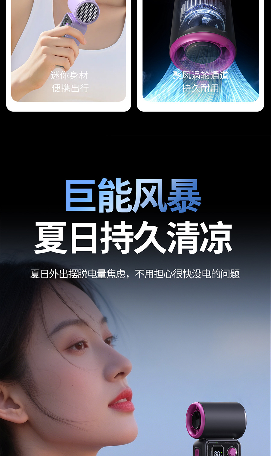 新款迷你冰敷制冷手持风扇usb暴力风扇高速小型数显手持小风扇