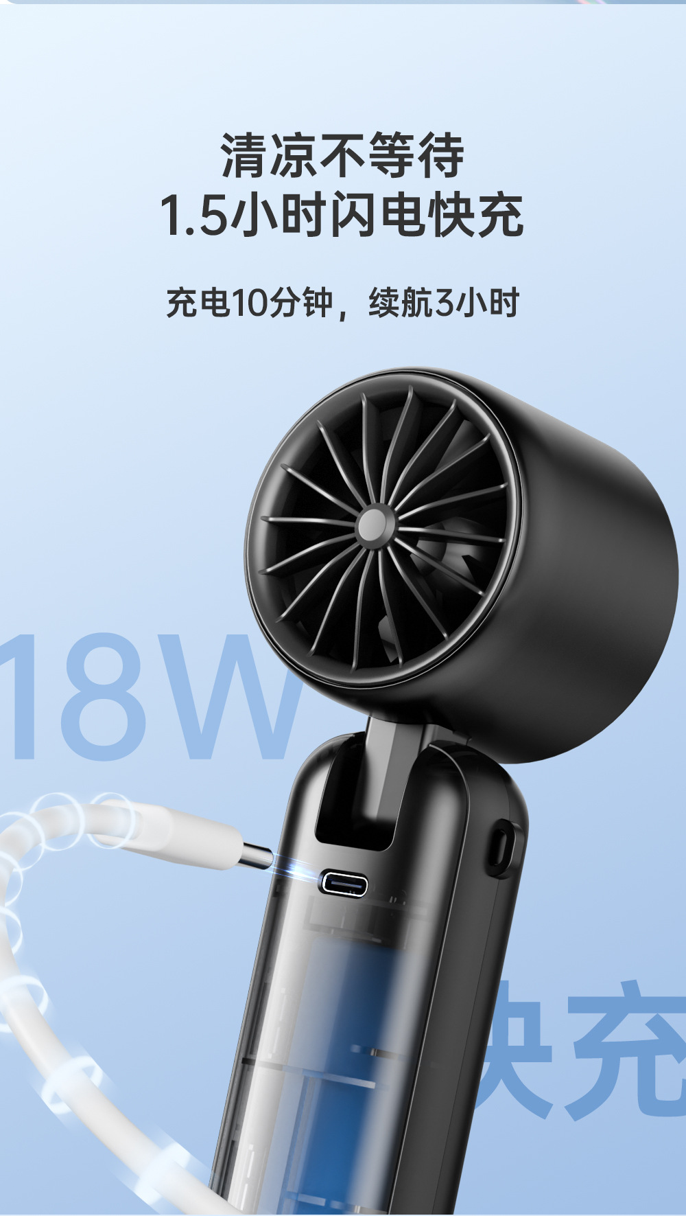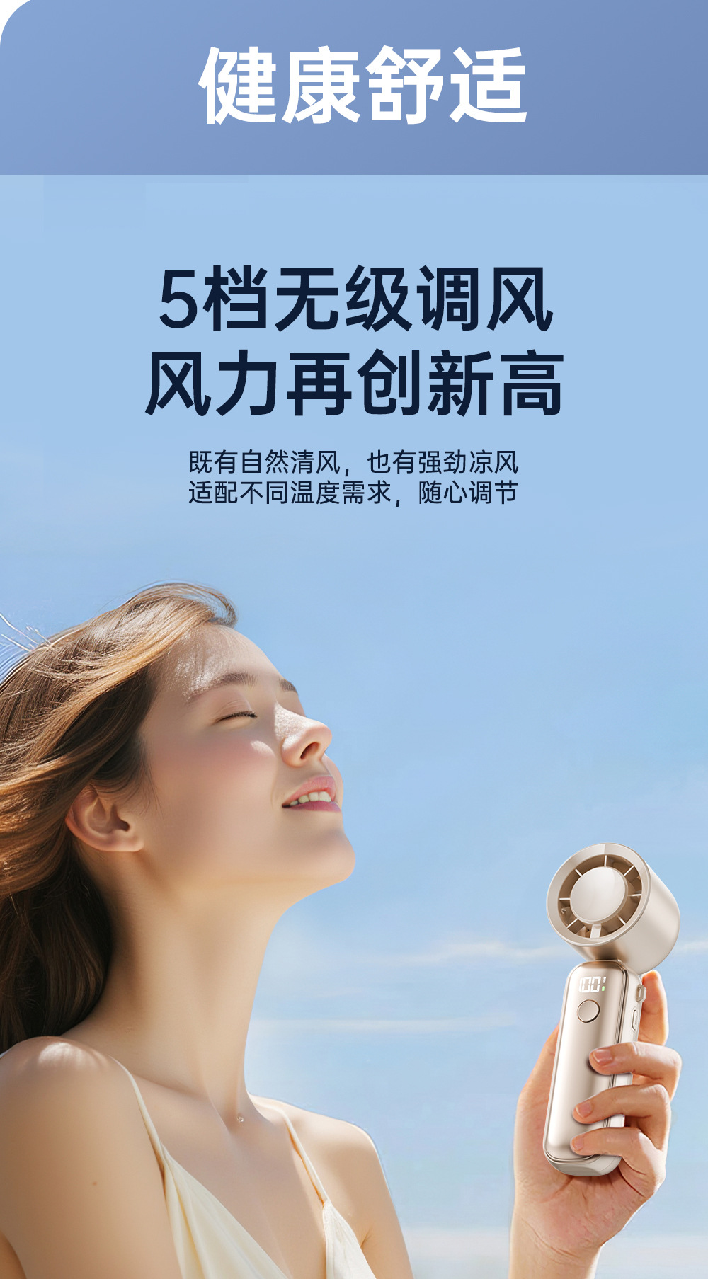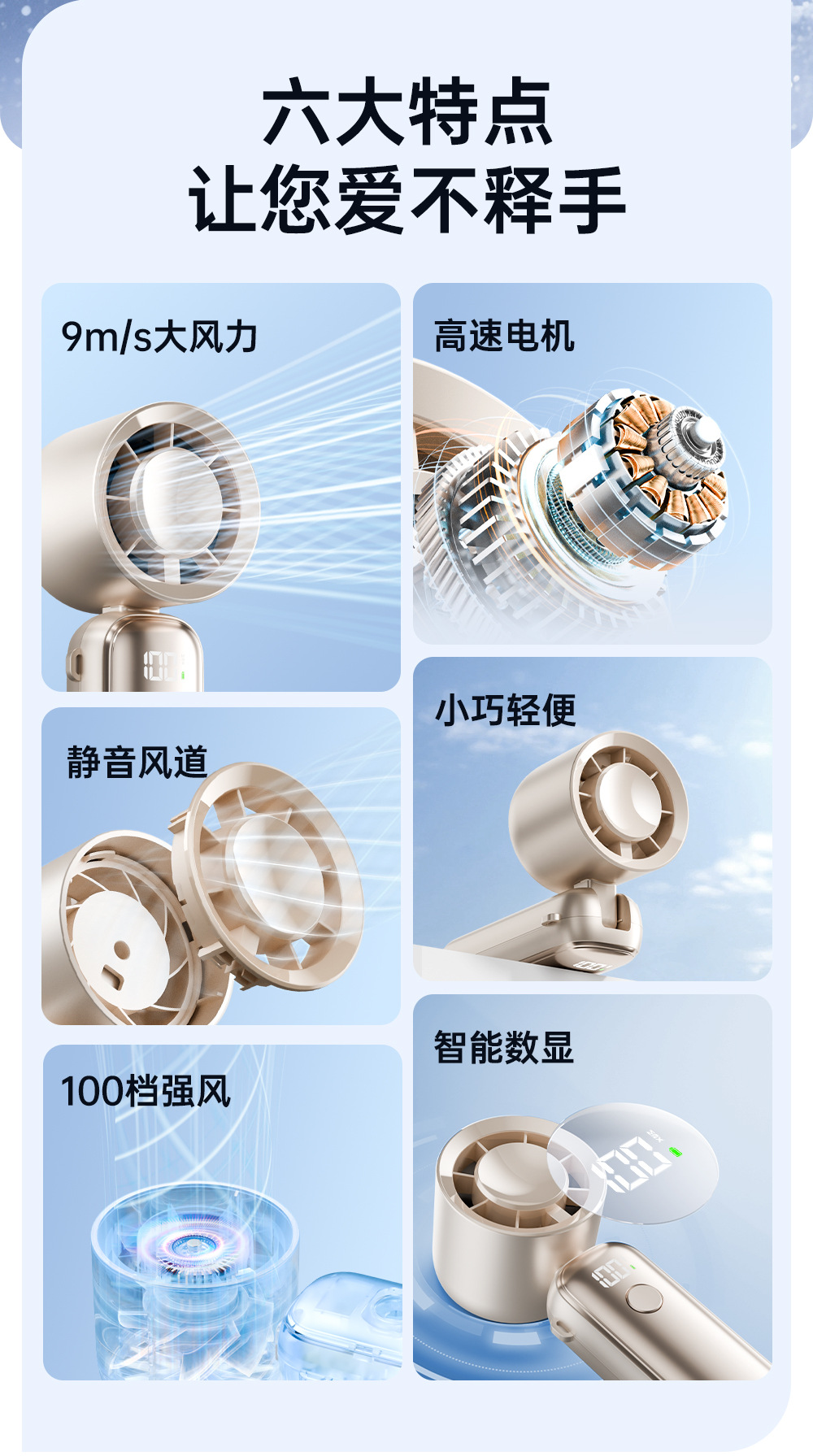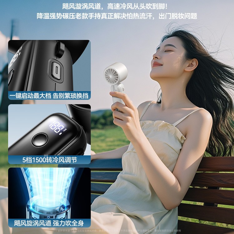 手持高速涡轮风扇充电款数显小风扇百档户外便携2026新款手持风扇