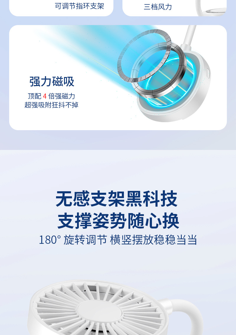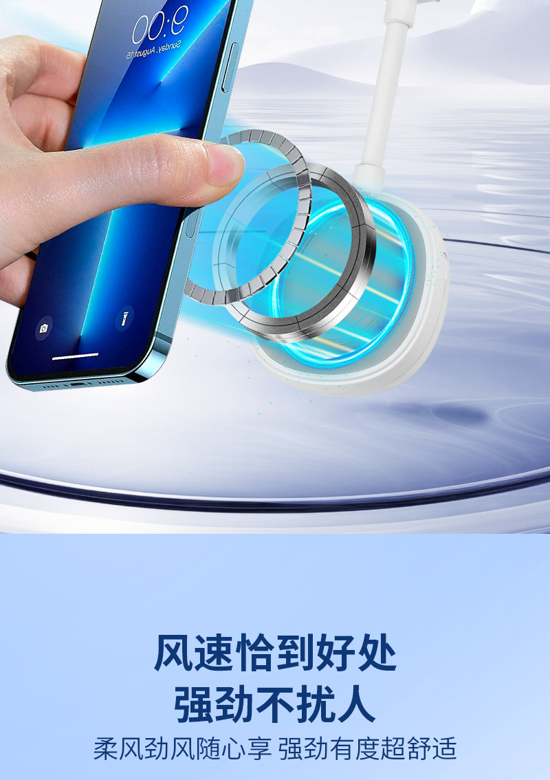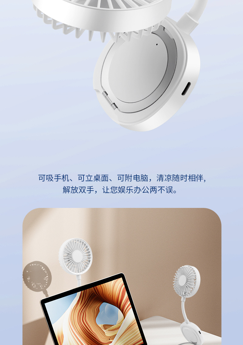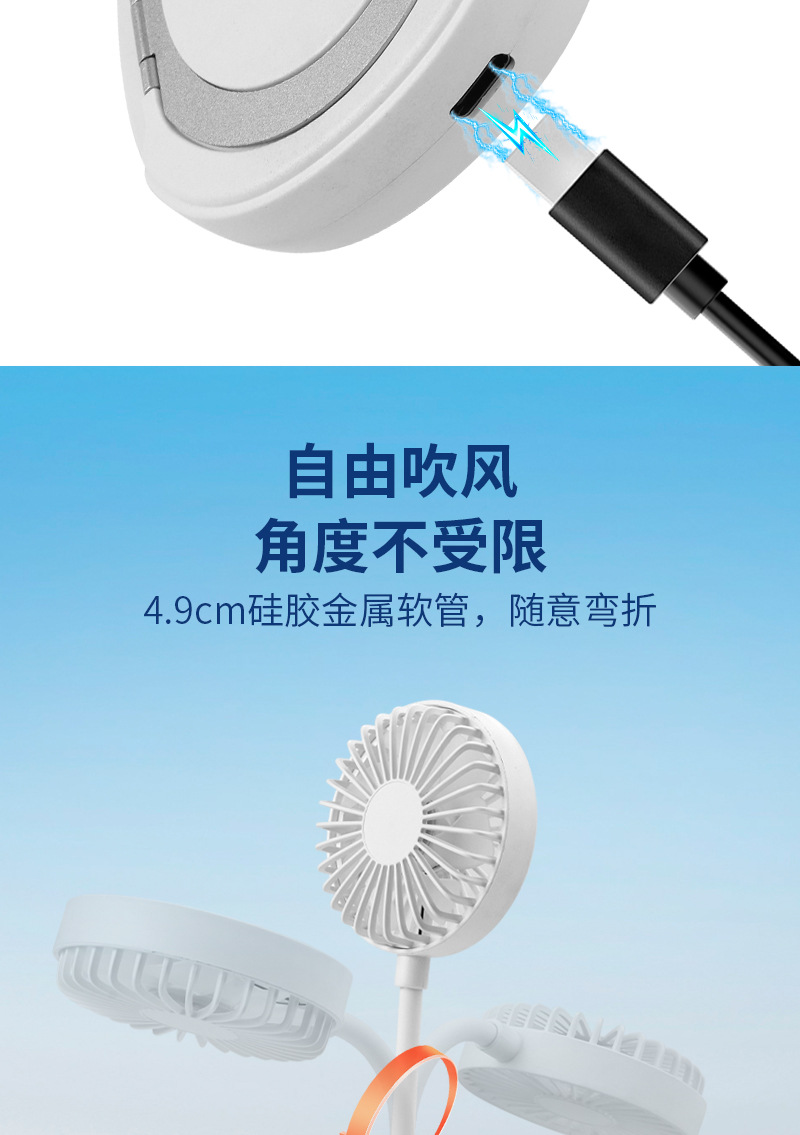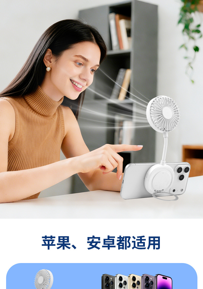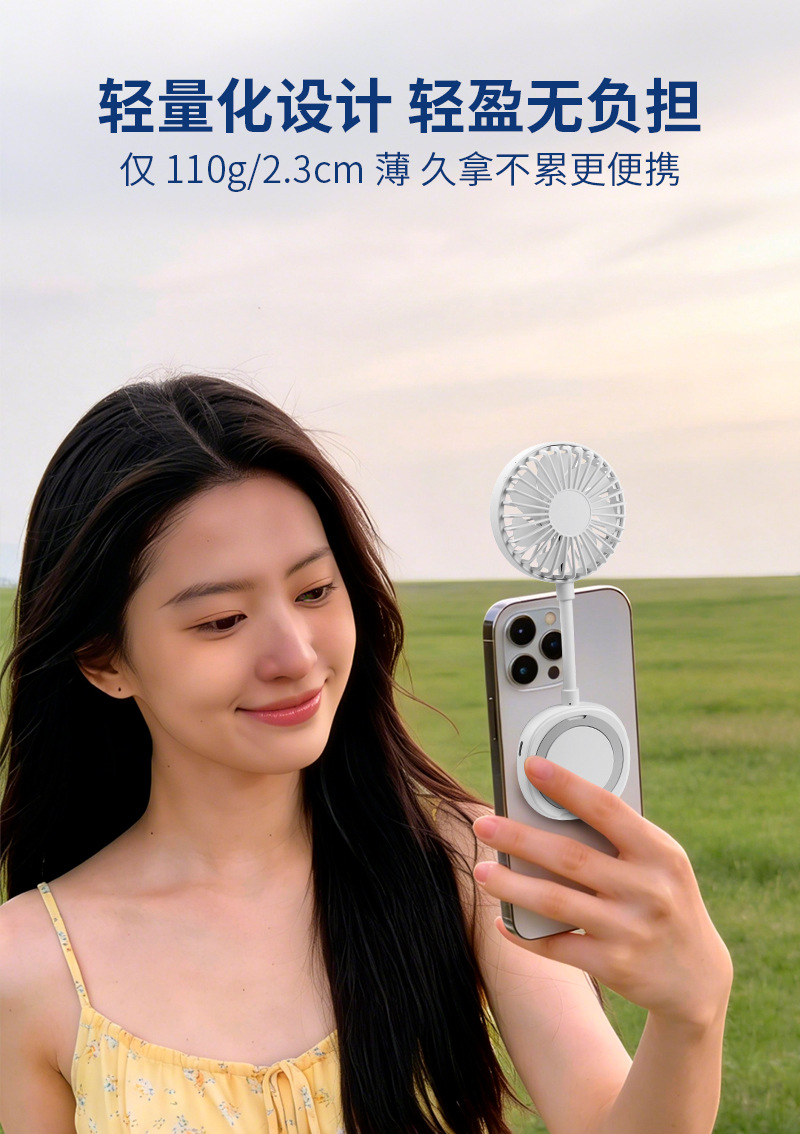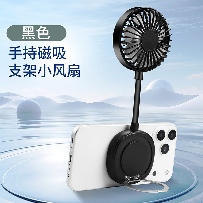 跨境新款磁吸小风扇户外便携手持学生迷你桌面风扇便携式手机支架
