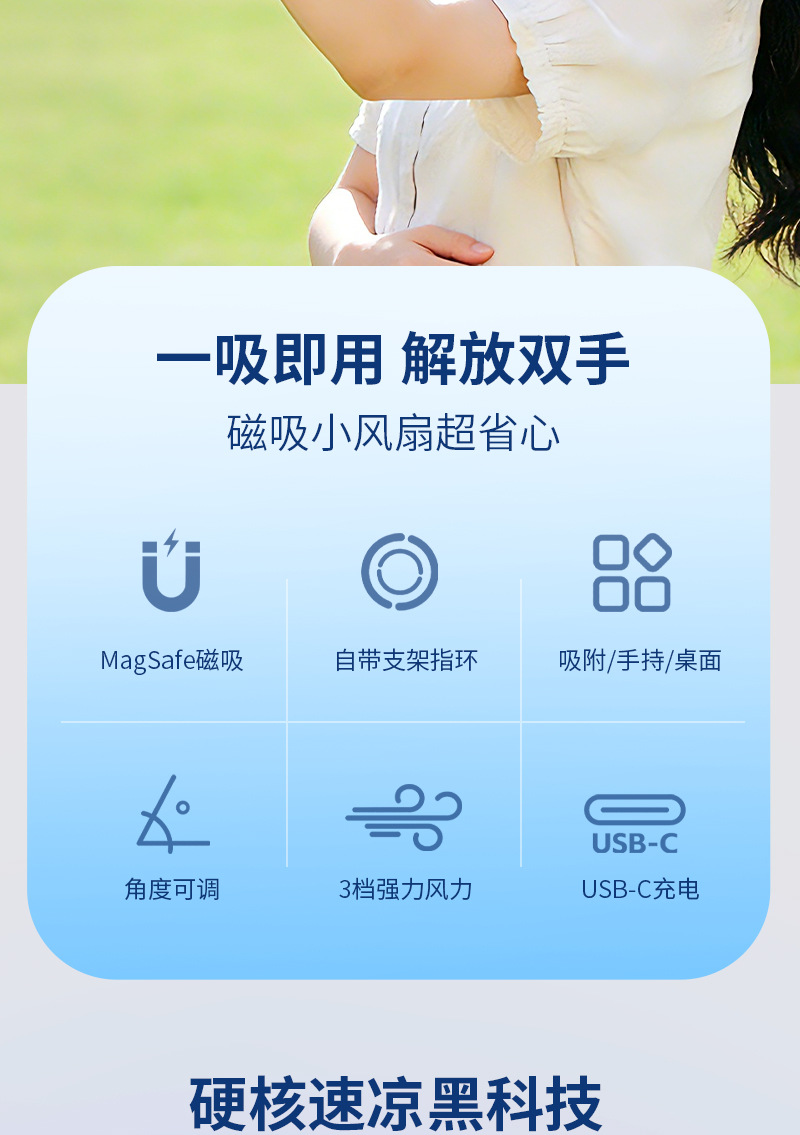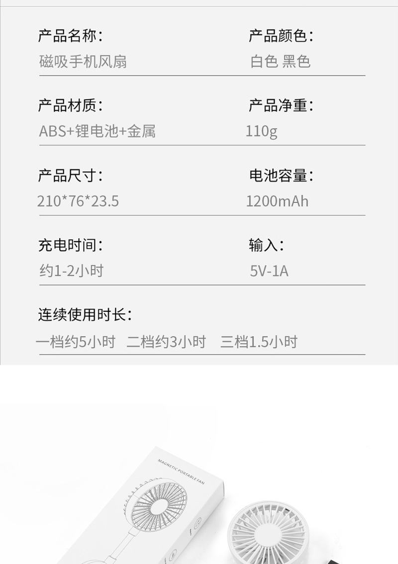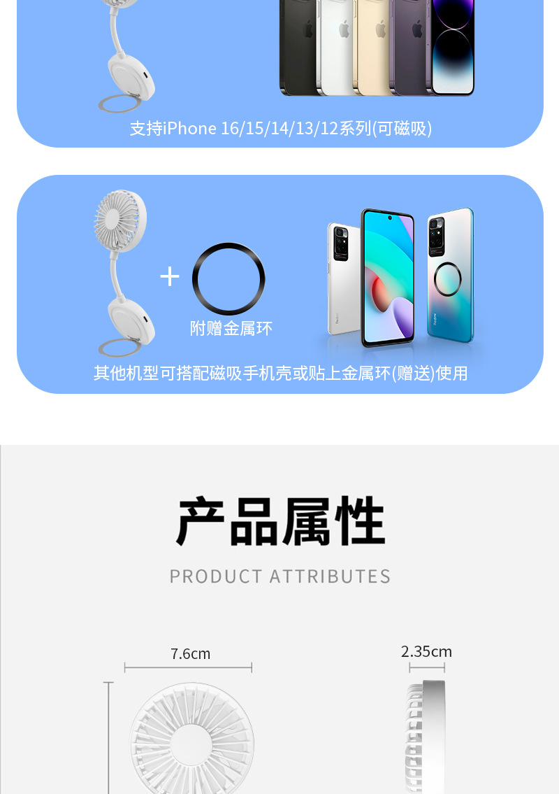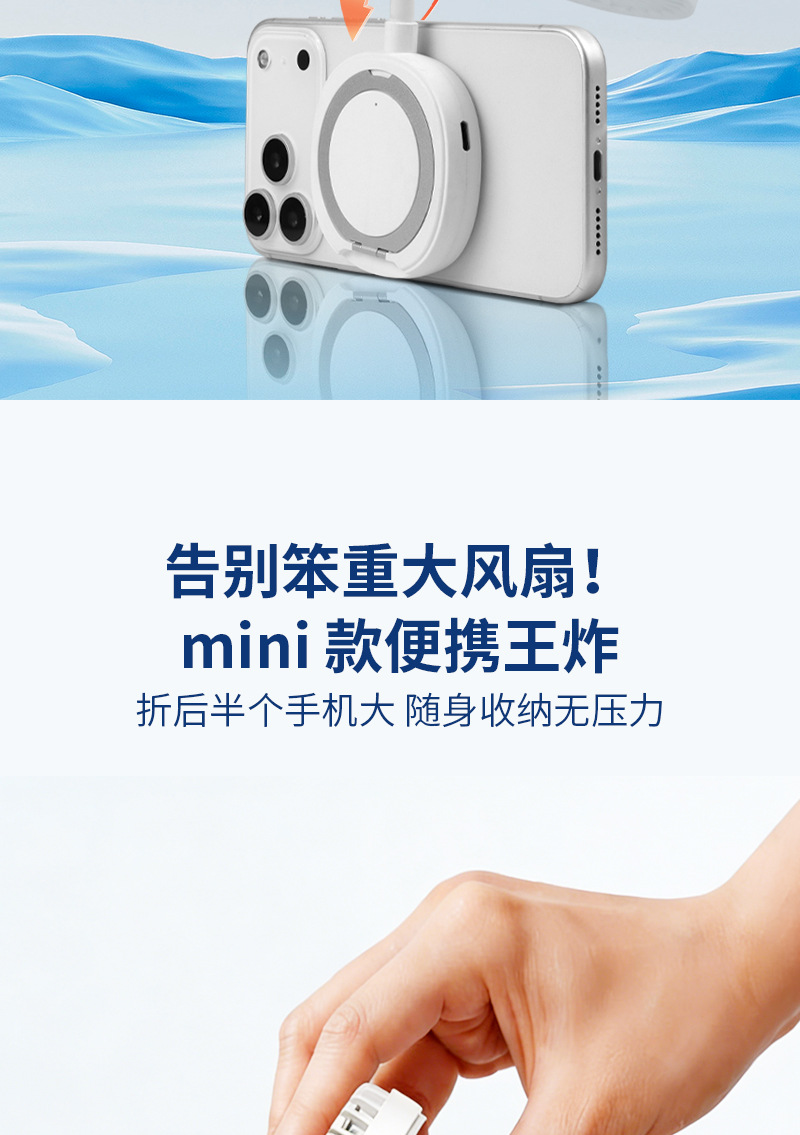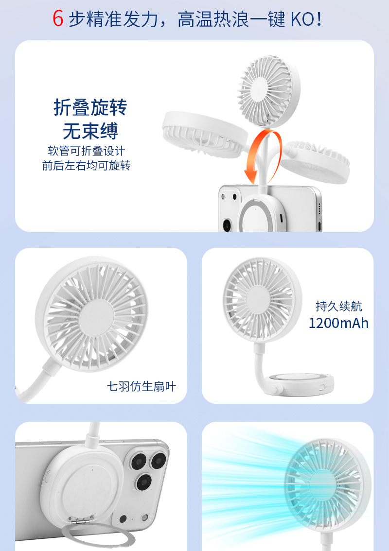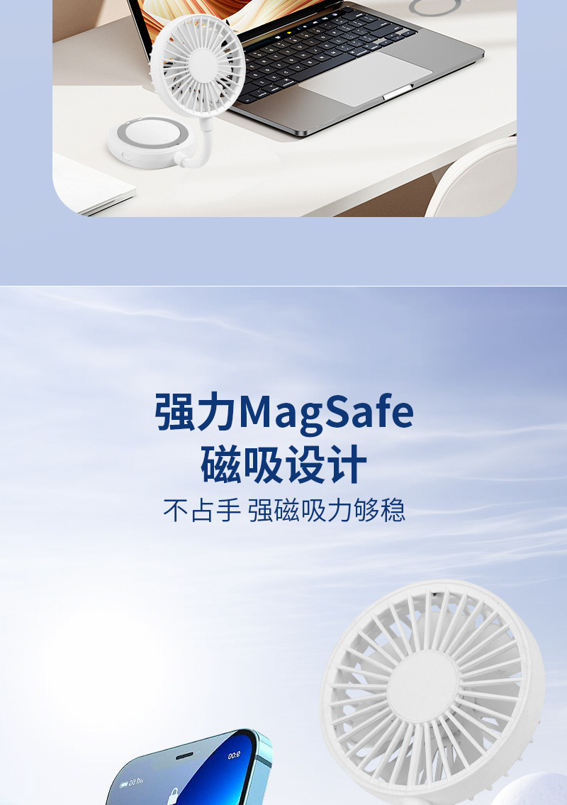 跨境新款磁吸小风扇户外便携手持学生迷你桌面风扇便携式手机支架