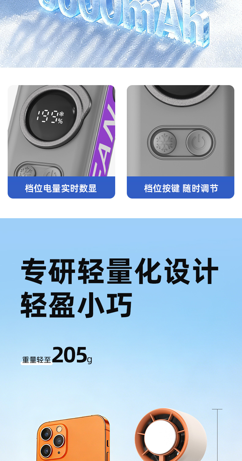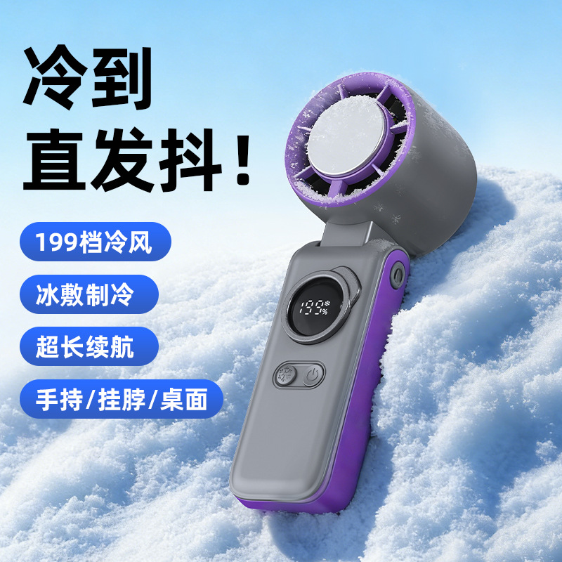 跨境新款手持风扇迷你半导体冰敷制冷高速涡轮风扇大风力便携挂脖