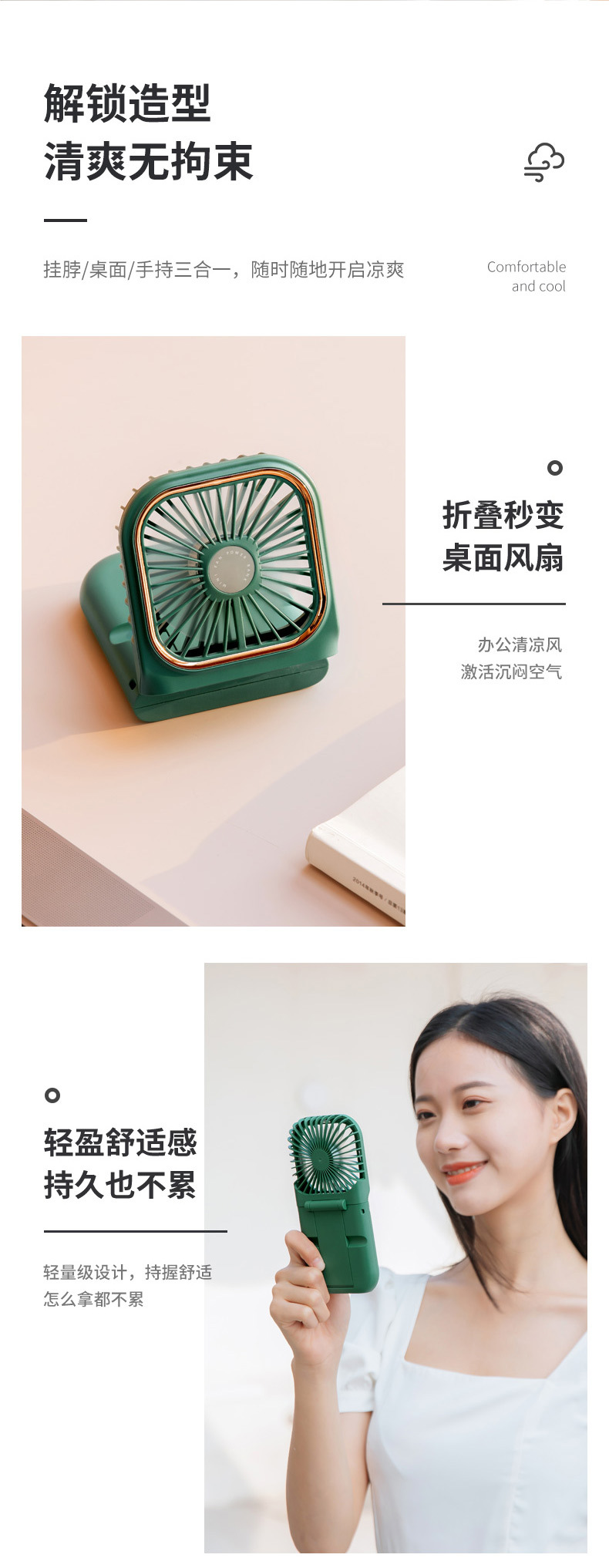 跨境专供USB充电手持小风扇可折叠挂脖风扇便携式桌面支架小风扇