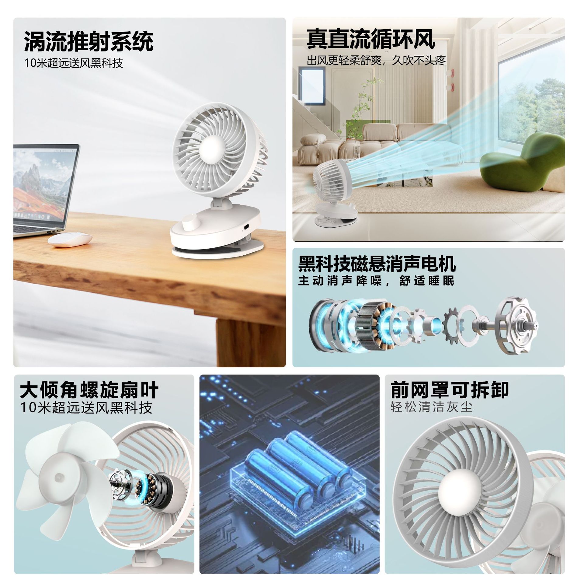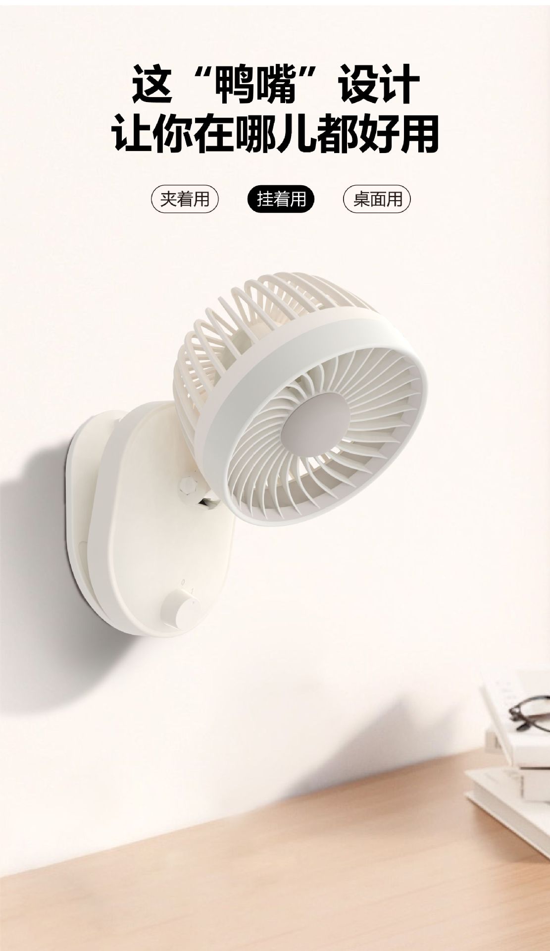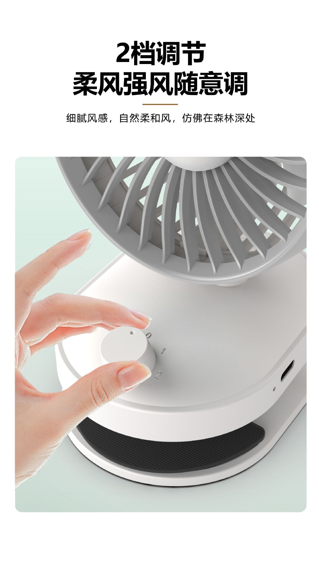 新款便携强风桌面小风扇可摇头USB充电壁挂学生宿舍带香薰电风扇