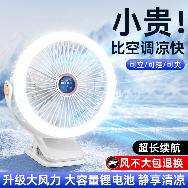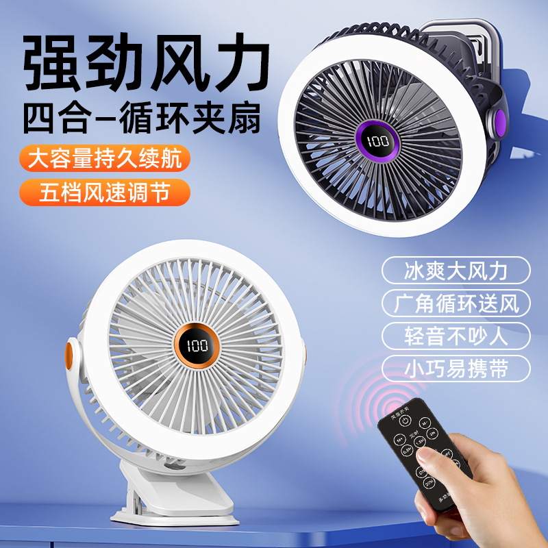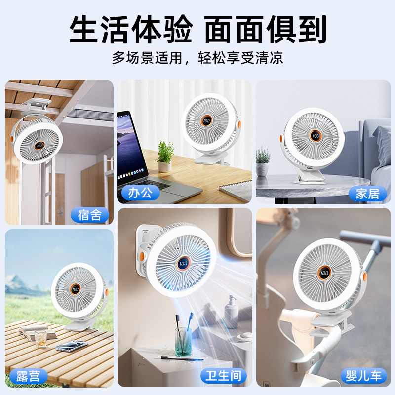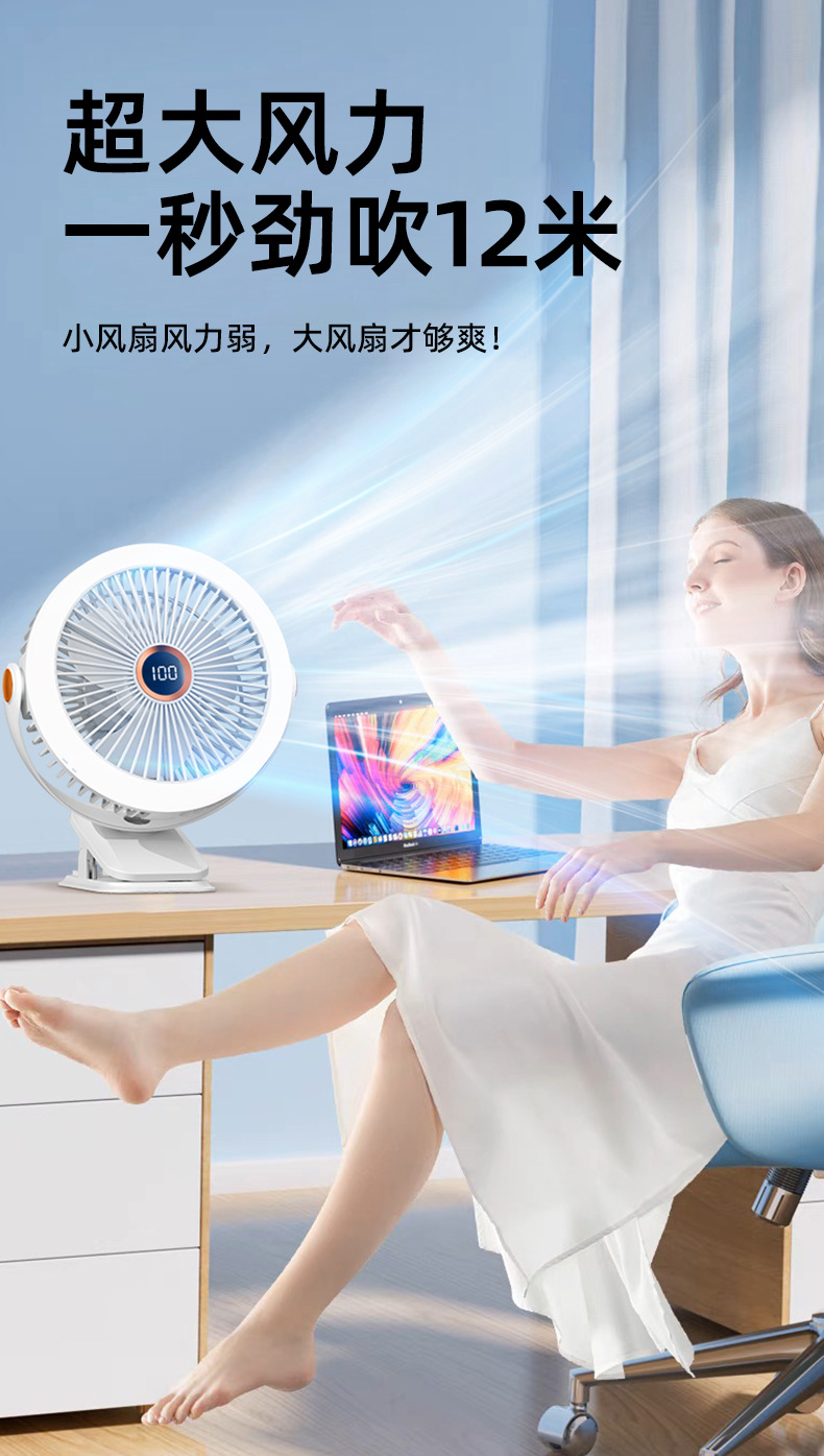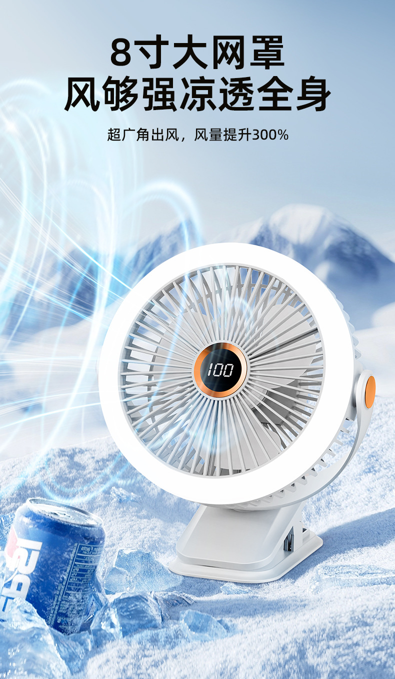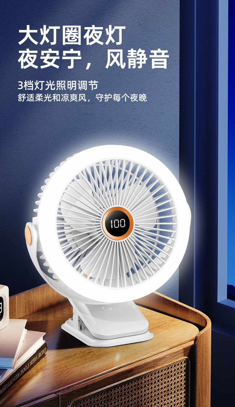 8寸usb夹子风扇大风力静音迷你便携式可跨境家用桌面带灯小电风扇