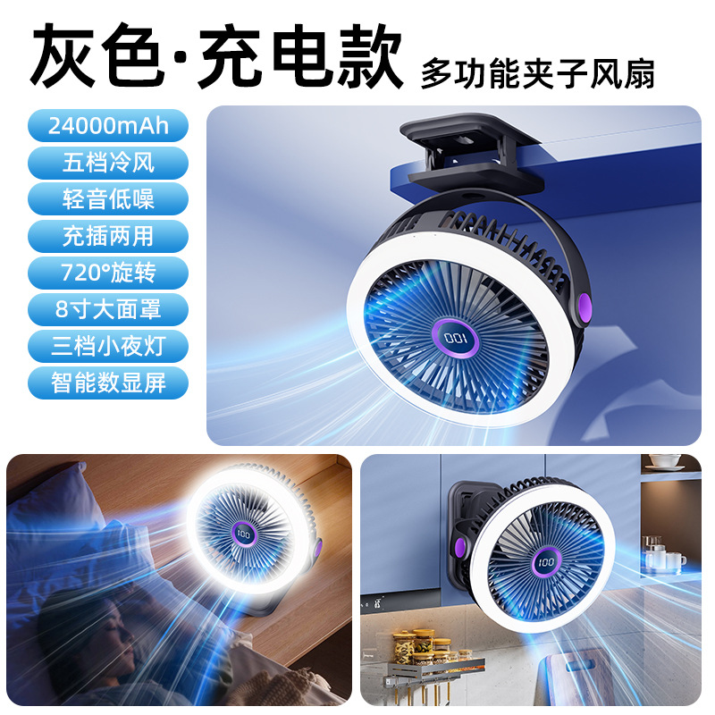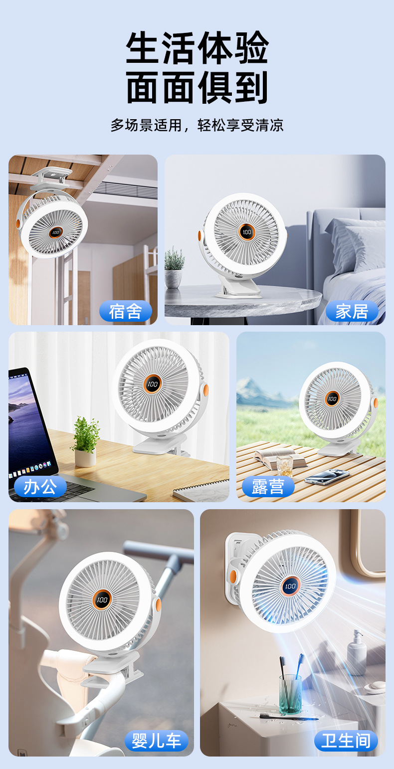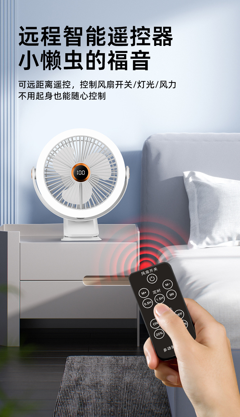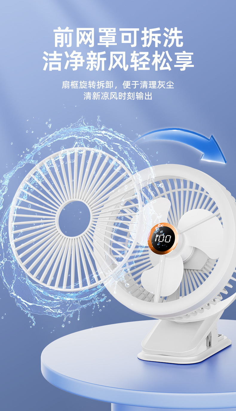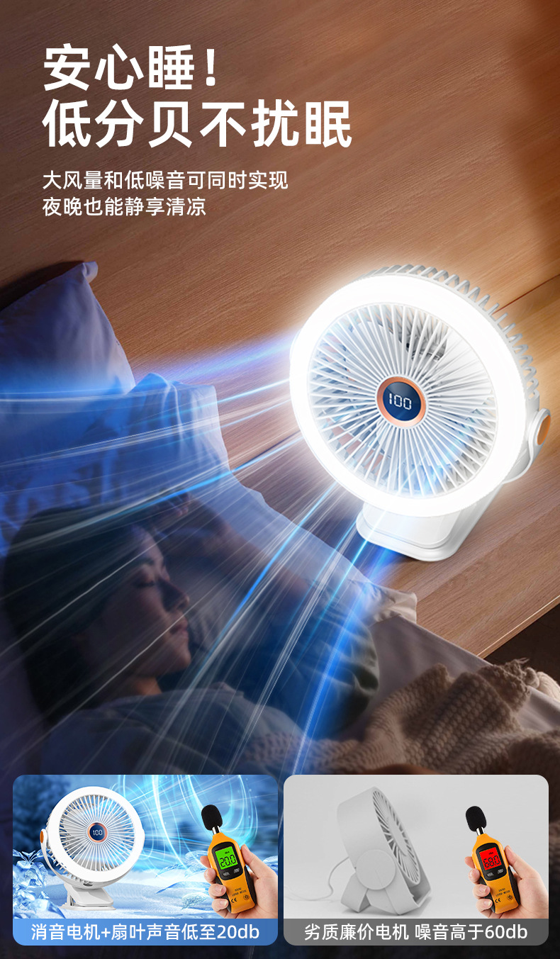 8寸usb夹子风扇大风力静音迷你便携式可跨境家用桌面带灯小电风扇
