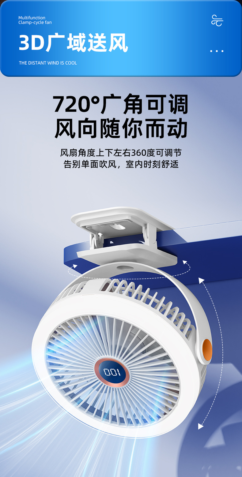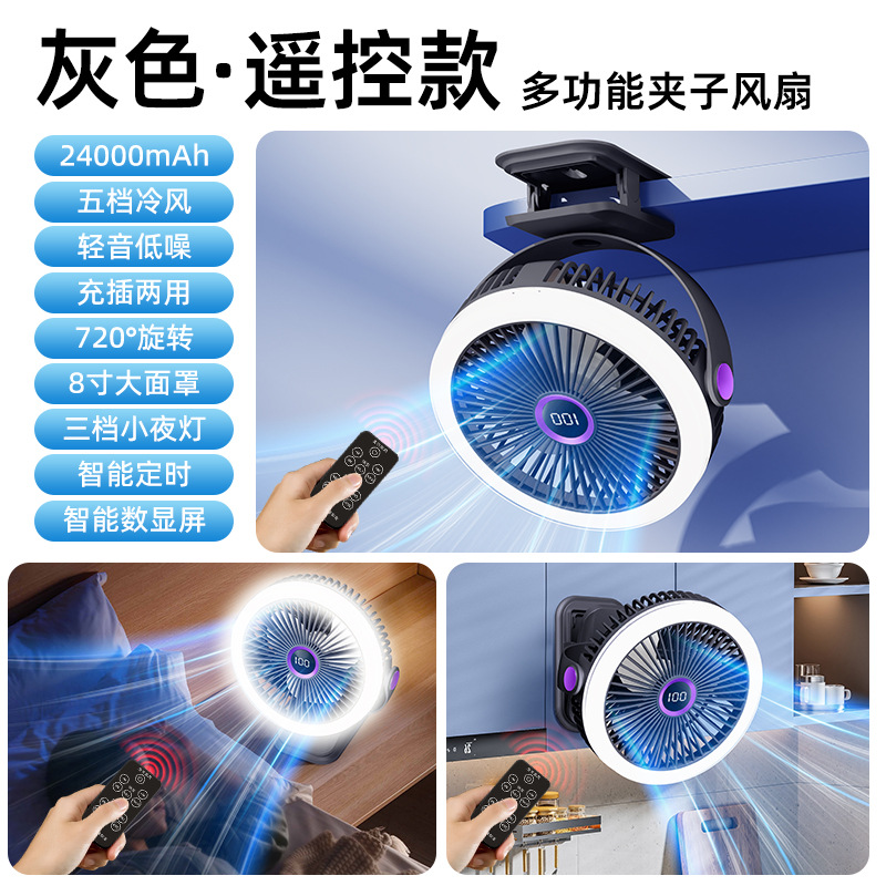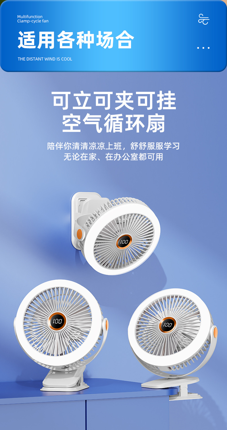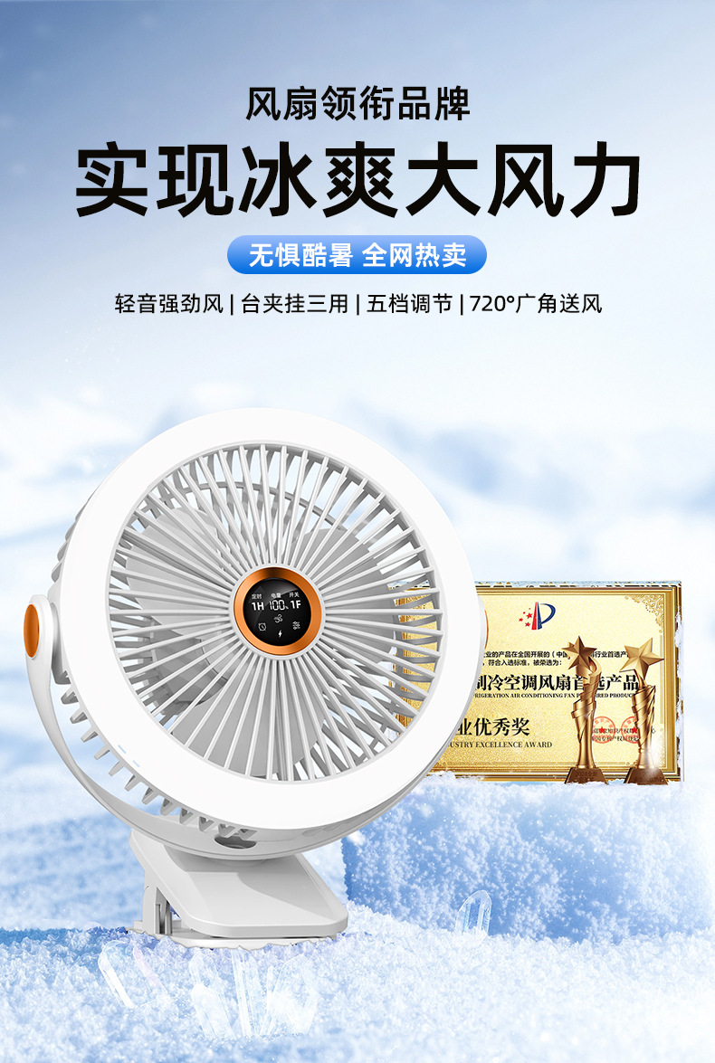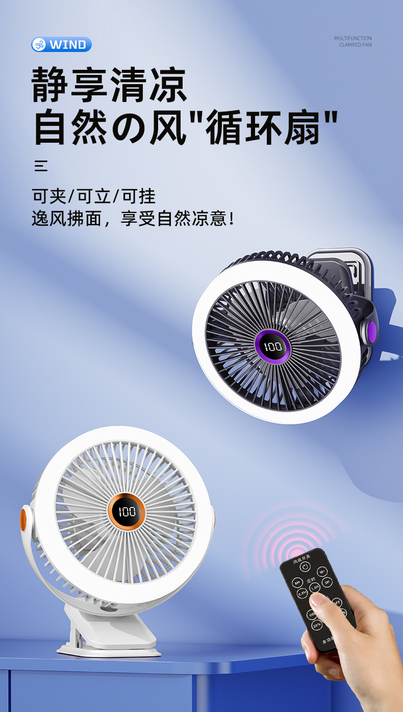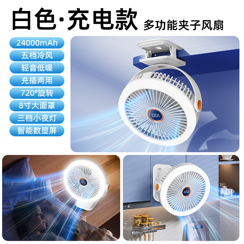 8寸usb夹子风扇大风力静音迷你便携式可跨境家用桌面带灯小电风扇