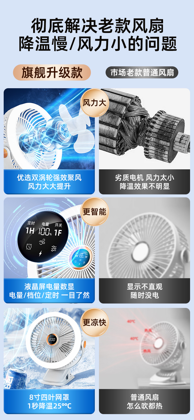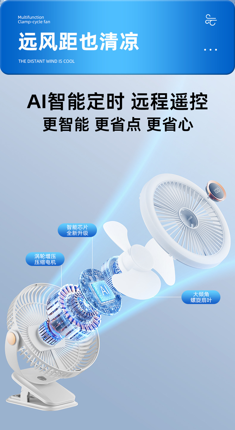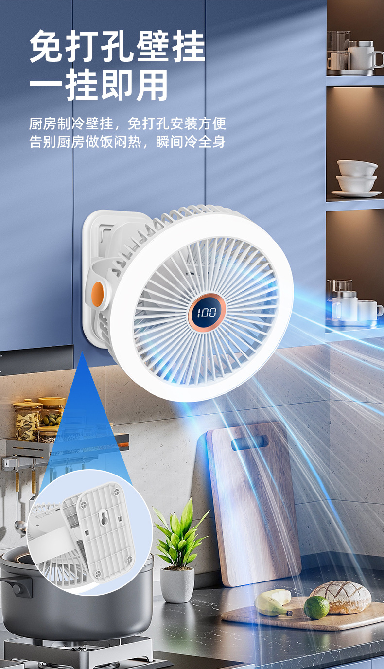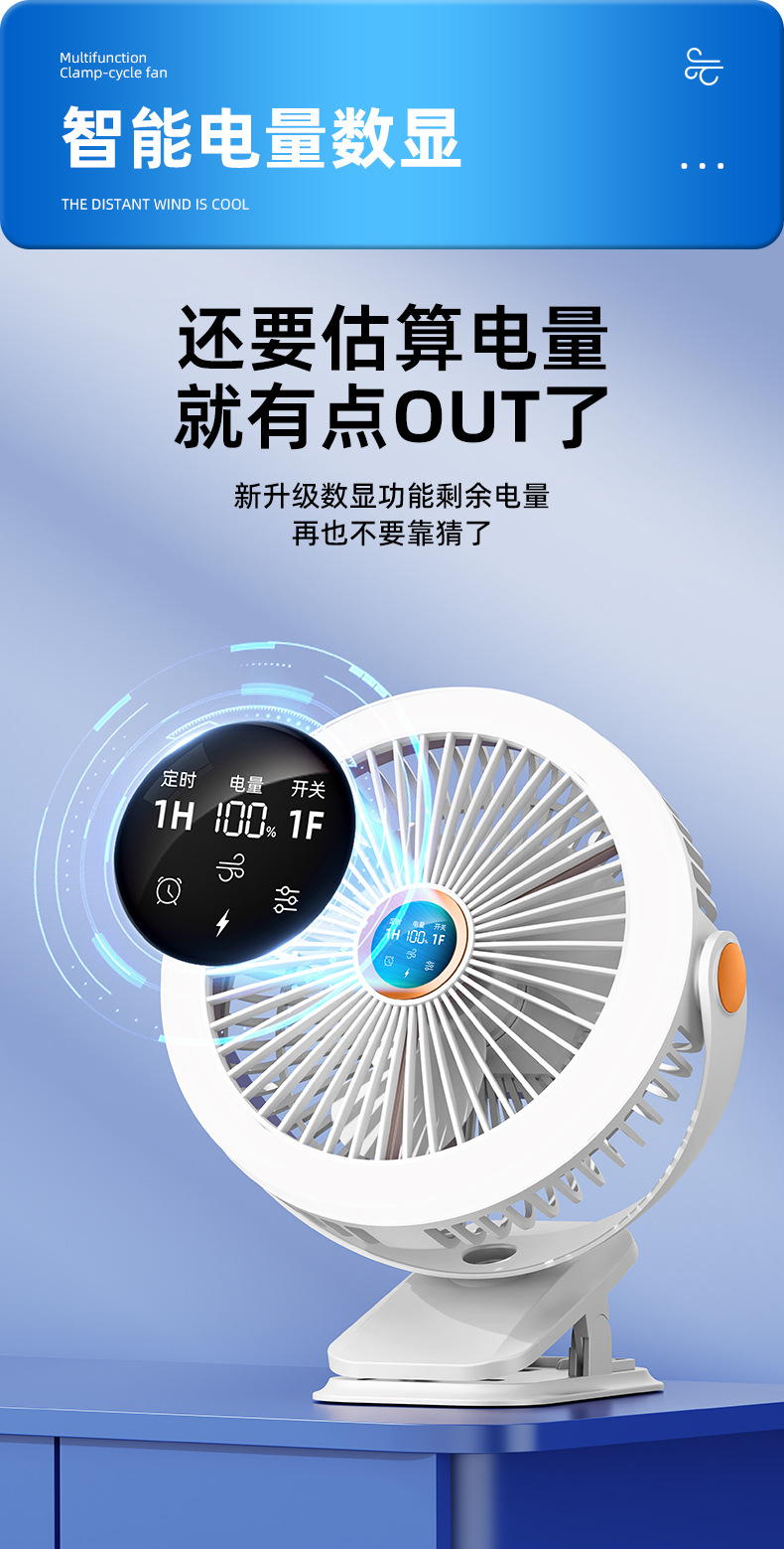 8寸usb夹子风扇大风力静音迷你便携式可跨境家用桌面带灯小电风扇