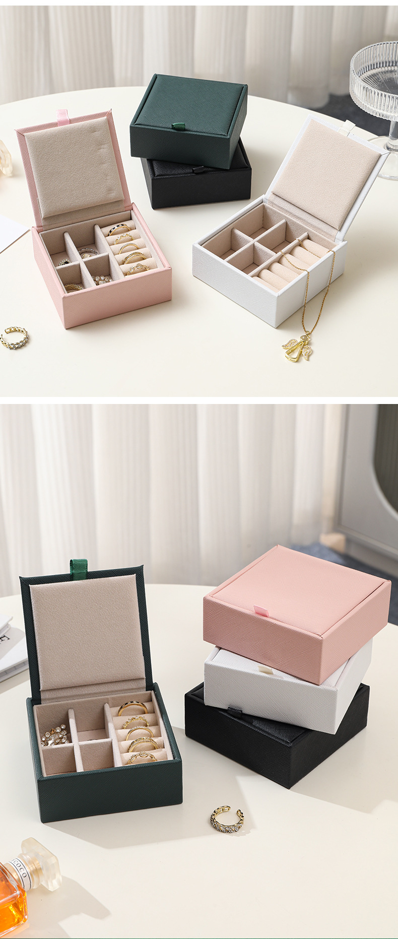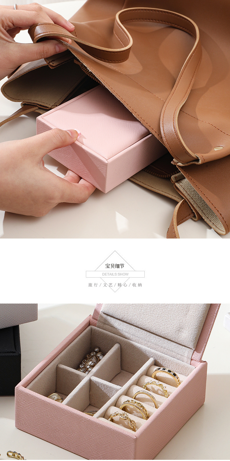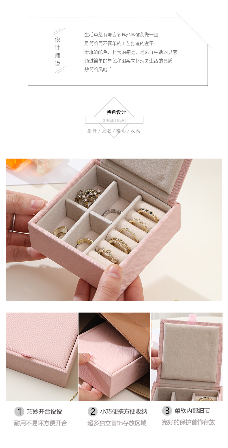 简约便携多功能首饰盒戒指耳钉耳饰收纳盒翻盖旅行精致PU小饰品盒